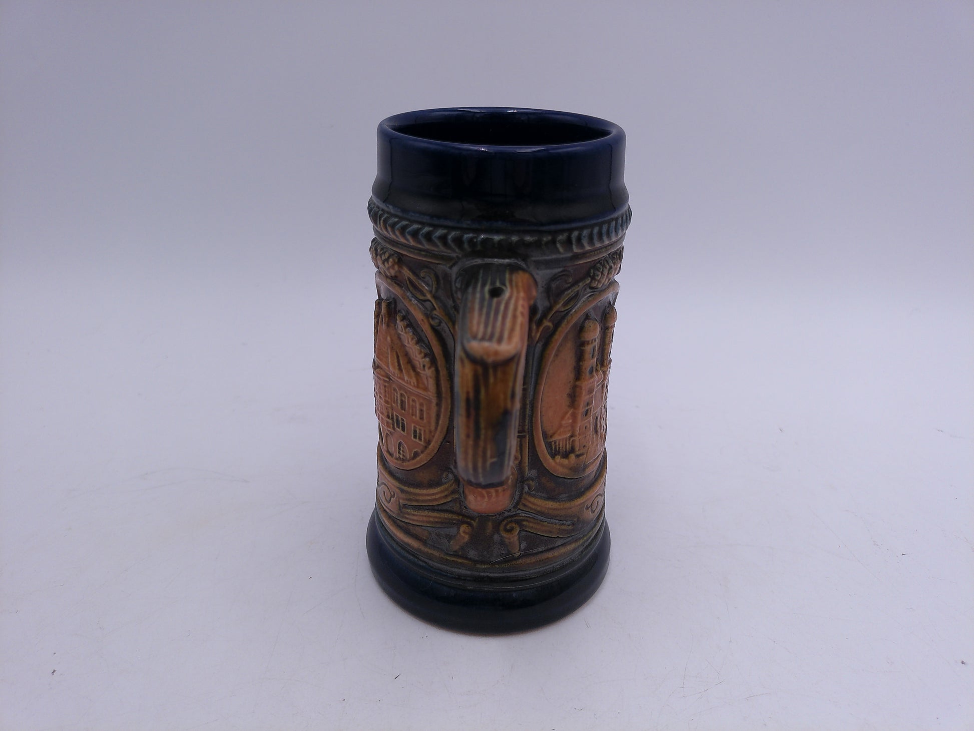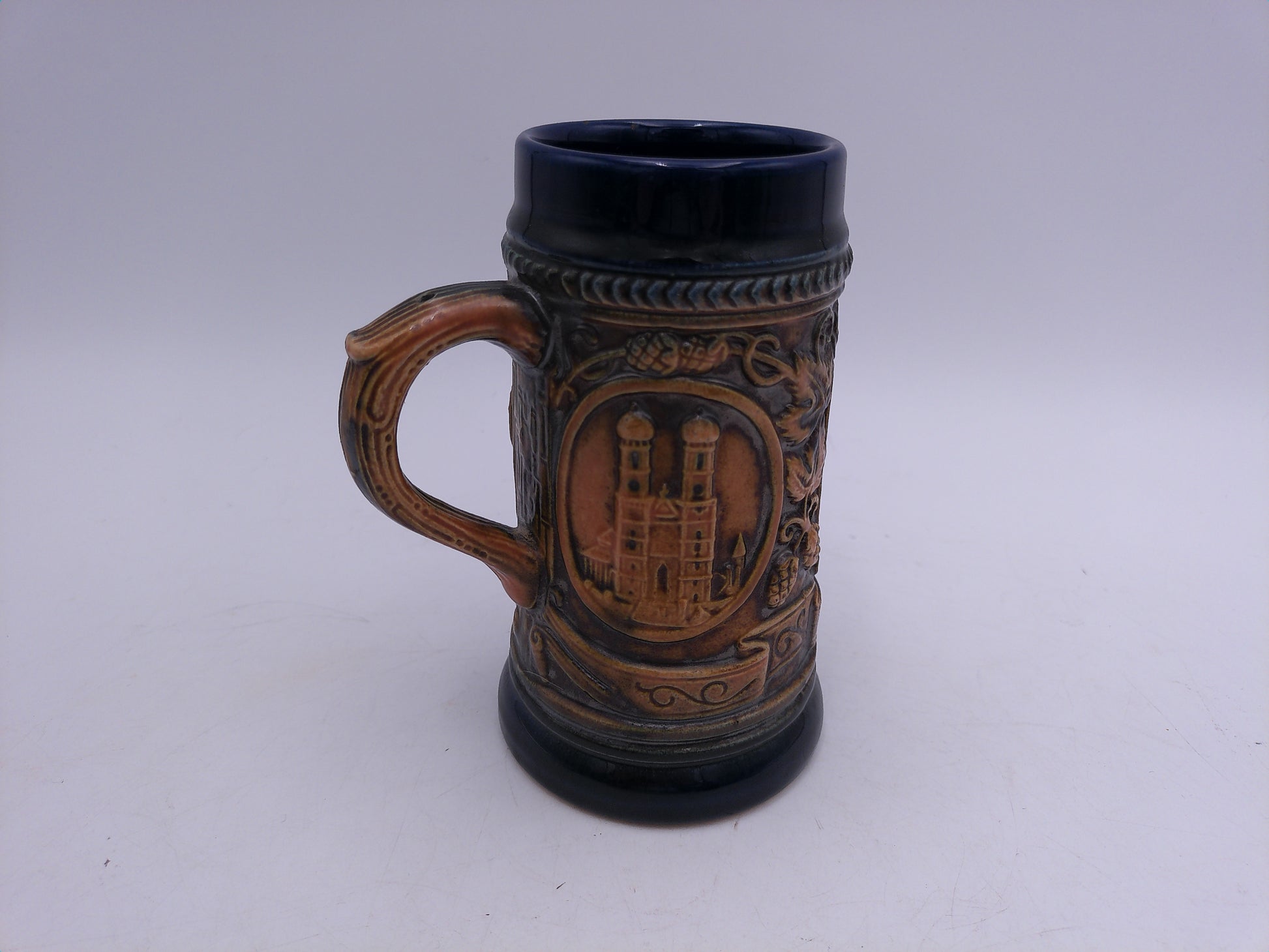 This beer stein is expertly crafted in Munchen, Germany, by GERZ W. Germany. Made with precision and skill, it is a durable and authentic addition to any beer enthusiast's collection. Enjoy your favorite brew in true German style with this traditional beer stein.