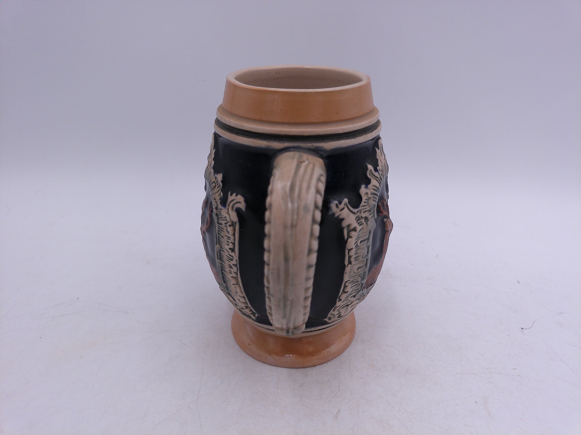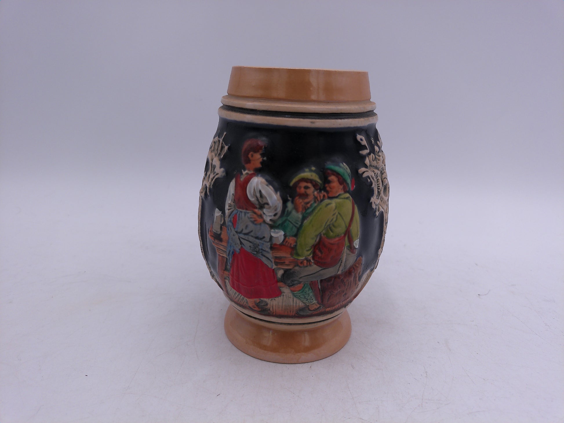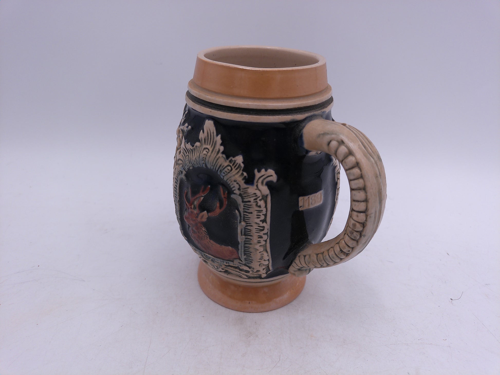 Made in West Germany in the 1950's, this vintage beer stein or mug is the perfect addition to any collection. Crafted with expert precision, this piece exudes traditional and timeless elegance. Whether used for sipping your favorite brew or displayed as a collector's item, this stein or mug is sure to impress with its authentic craftsmanship and vintage charm.
