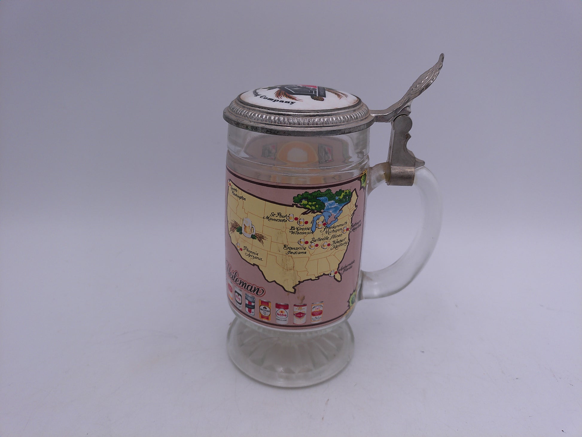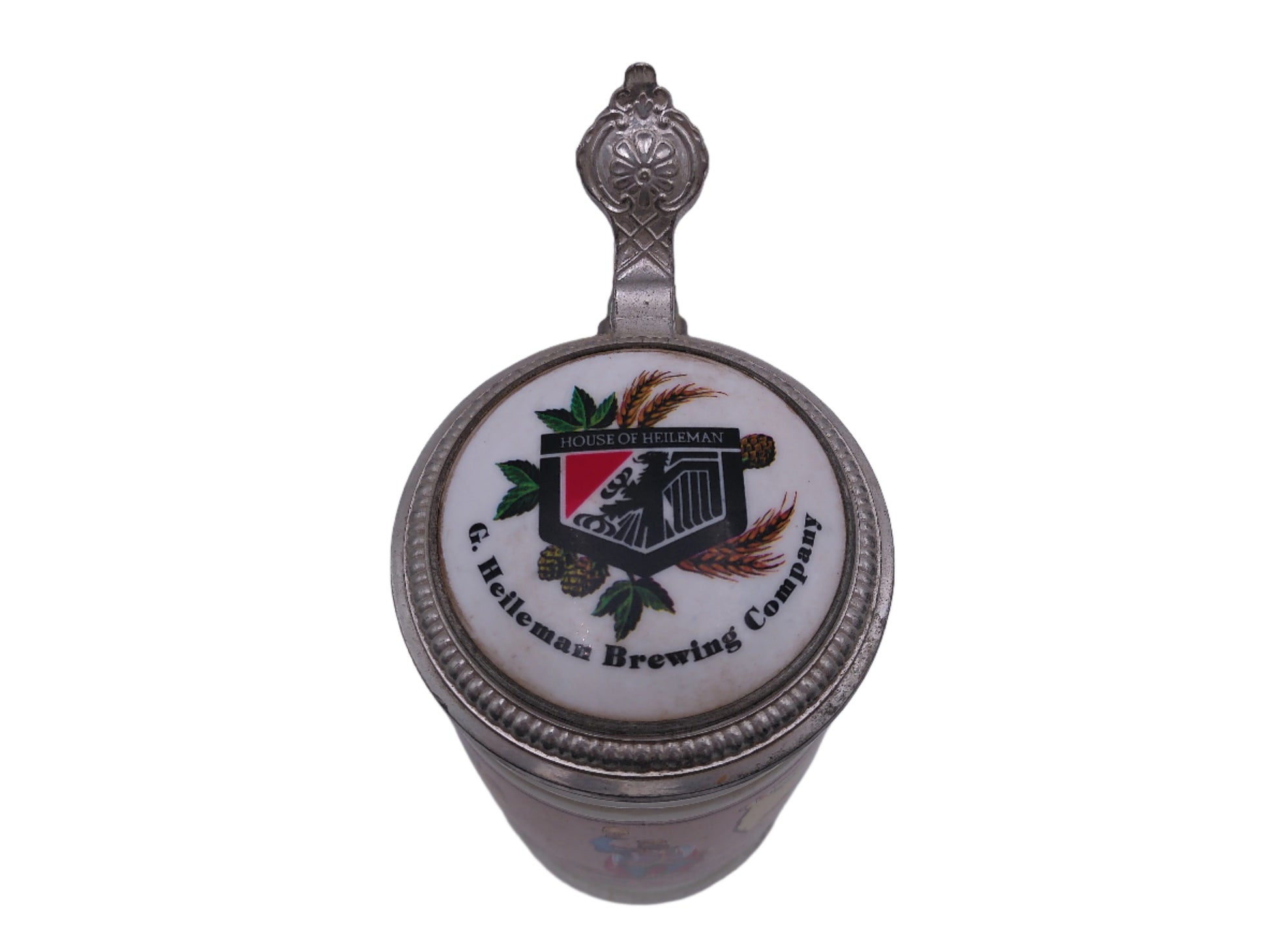Beer Stein Glass Design With Metal Lid Helleman Brewing Company Vintage