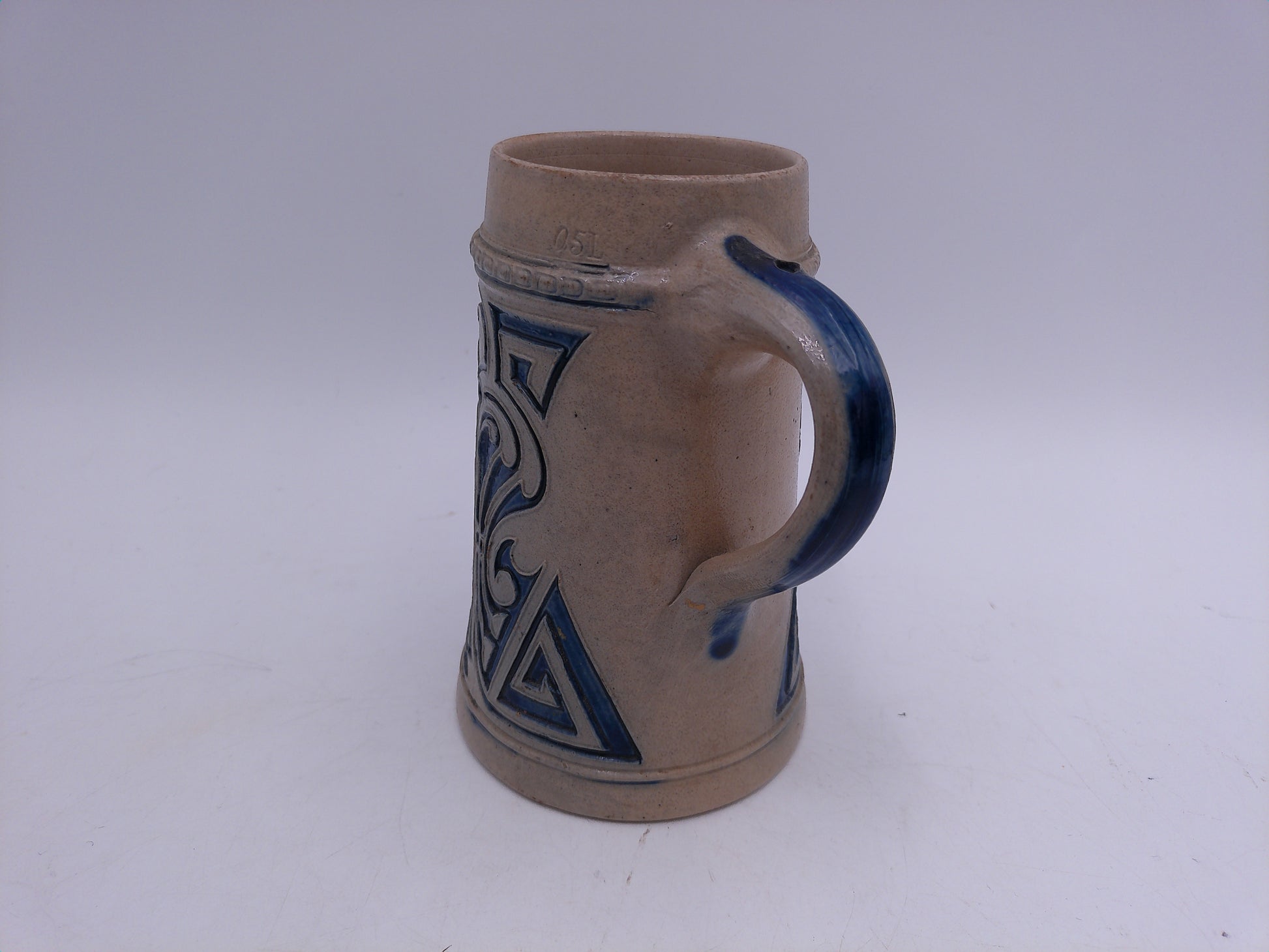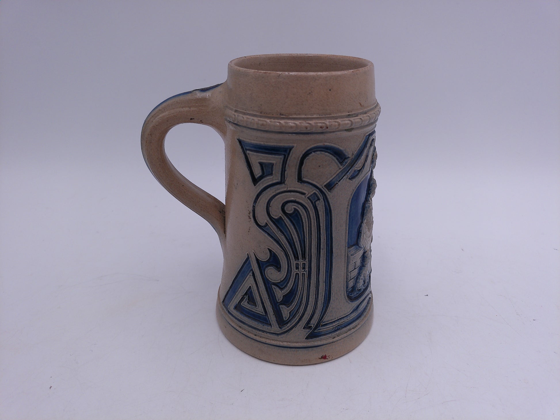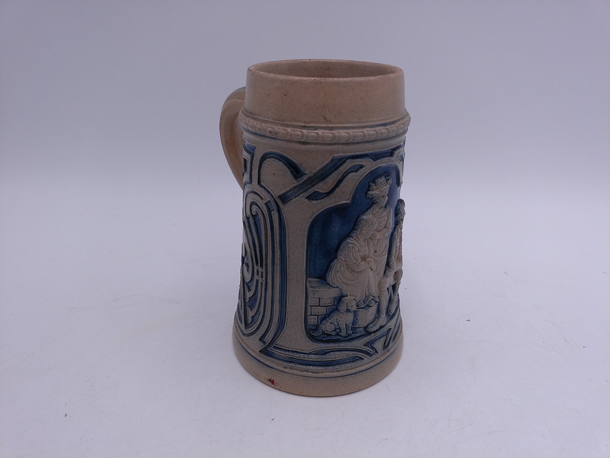 Beer Stein Vintage Salt Glaze Stein Blue Gray Stoneware Tavern Scene 0.5L German