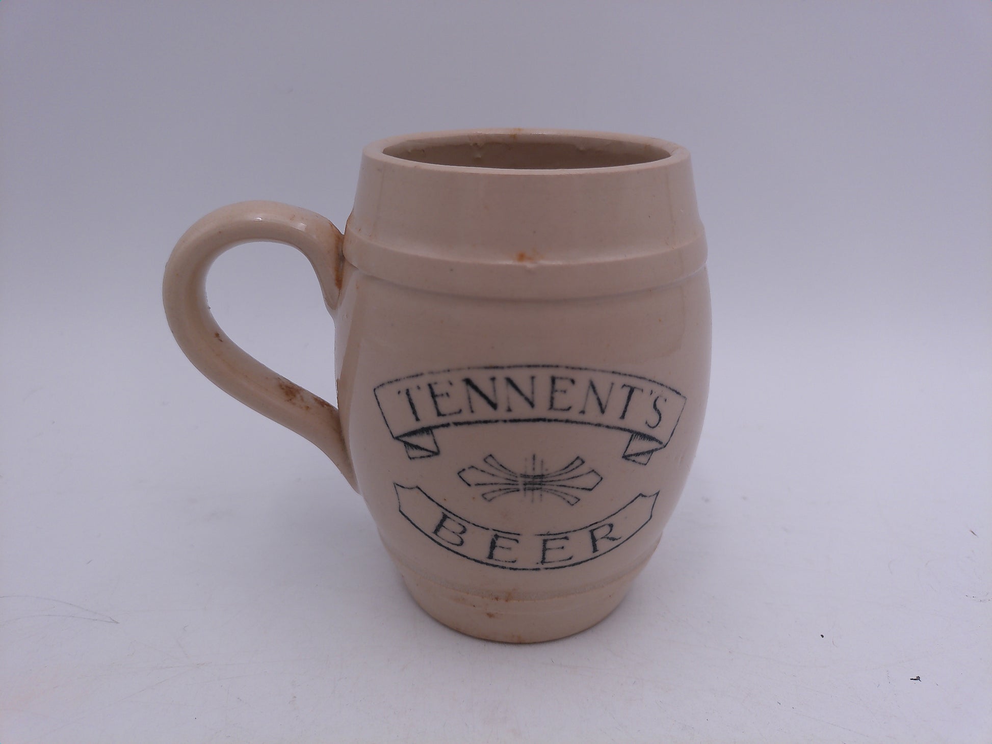 Beer Stein RARE Vintage Possil Pottery Glasgow Scotland Tennant’s Beer Barrel