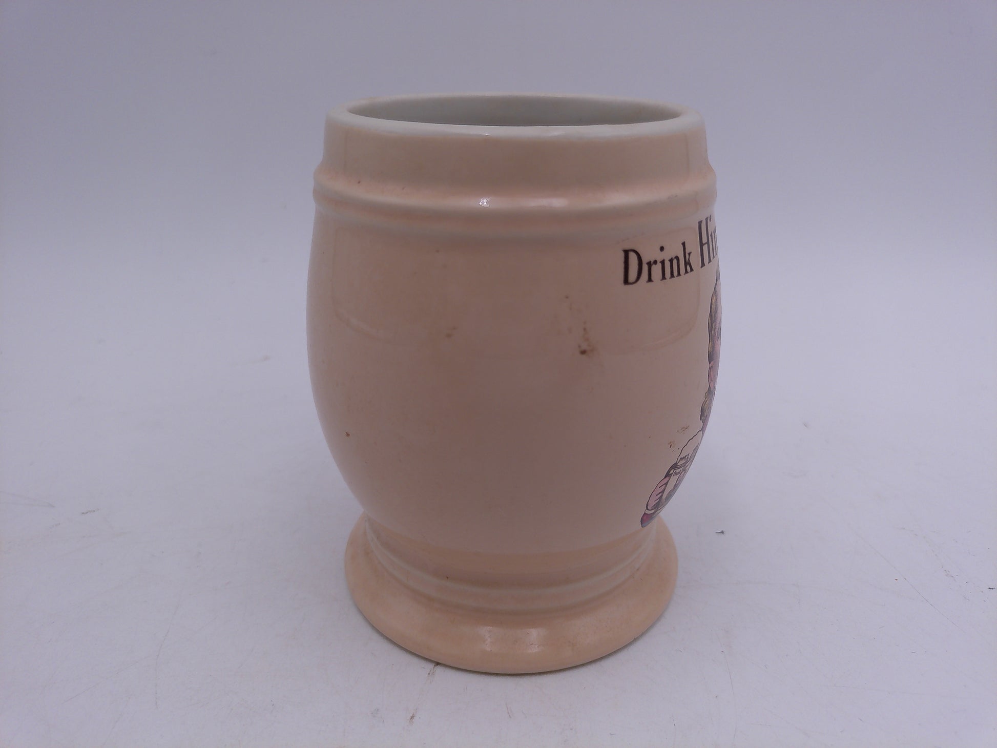 This vintage root beer coffee mug from Mettlach Villeroy & Boch Hires Cup is a unique and collectible piece for both coffee and root beer lovers. The intricate design and sturdy construction make it a perfect addition to any home or office, providing both style and functionality. Cheers to enjoying your favorite beverage in style!