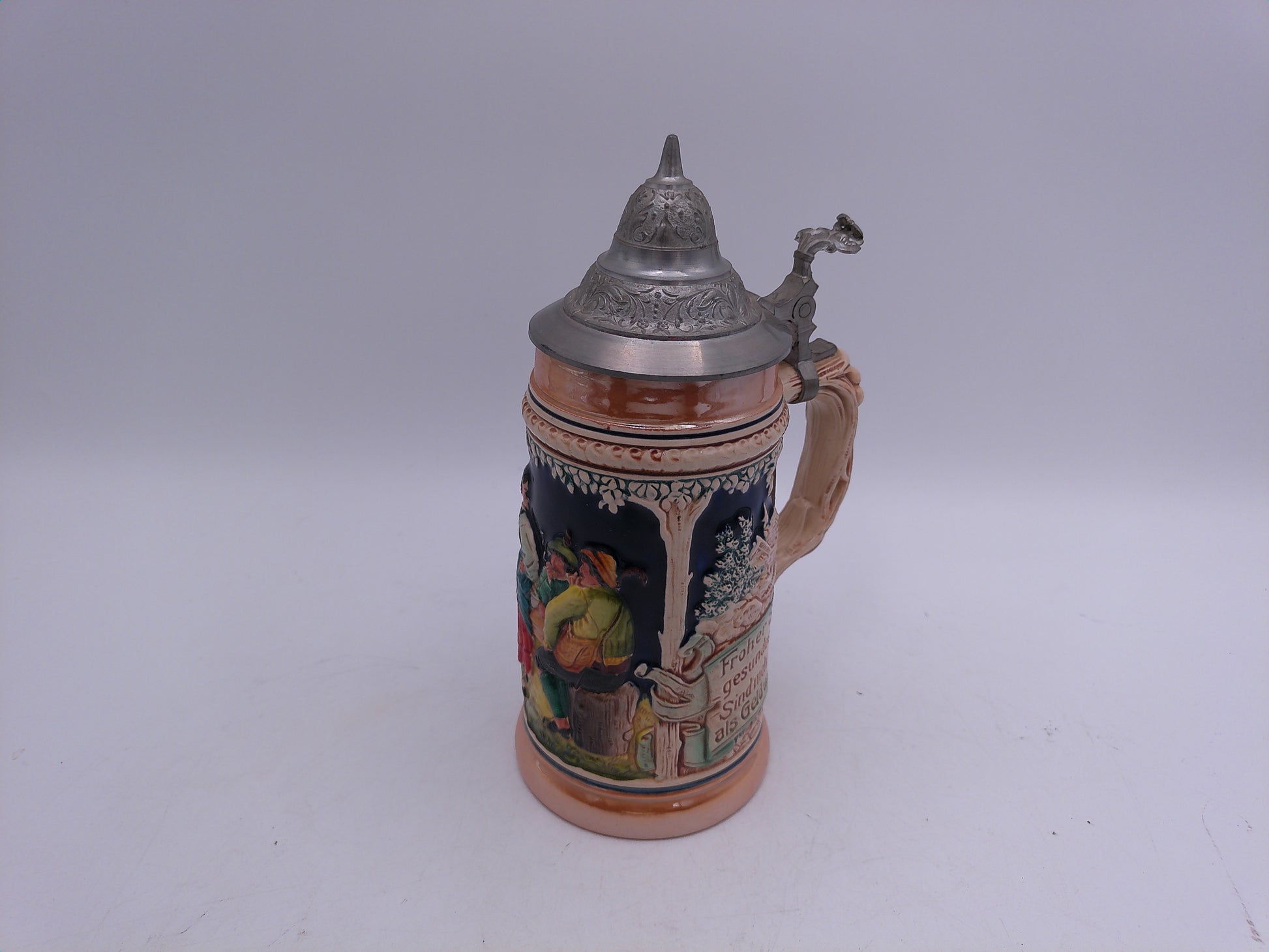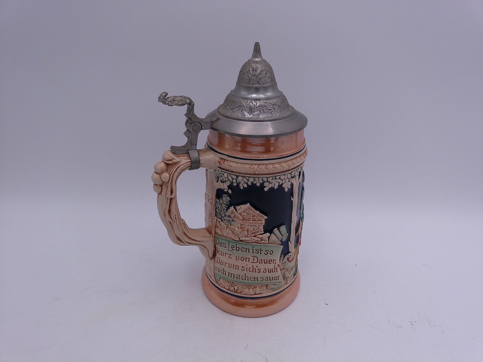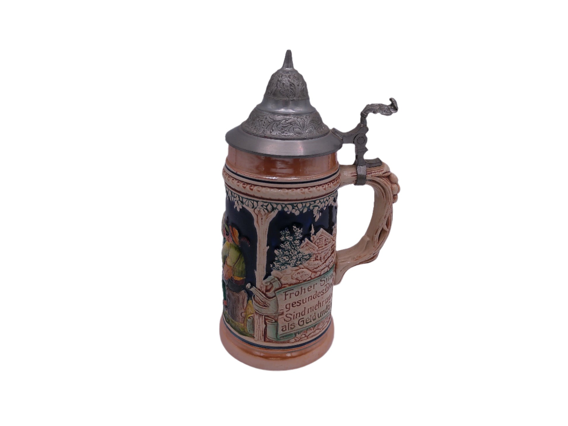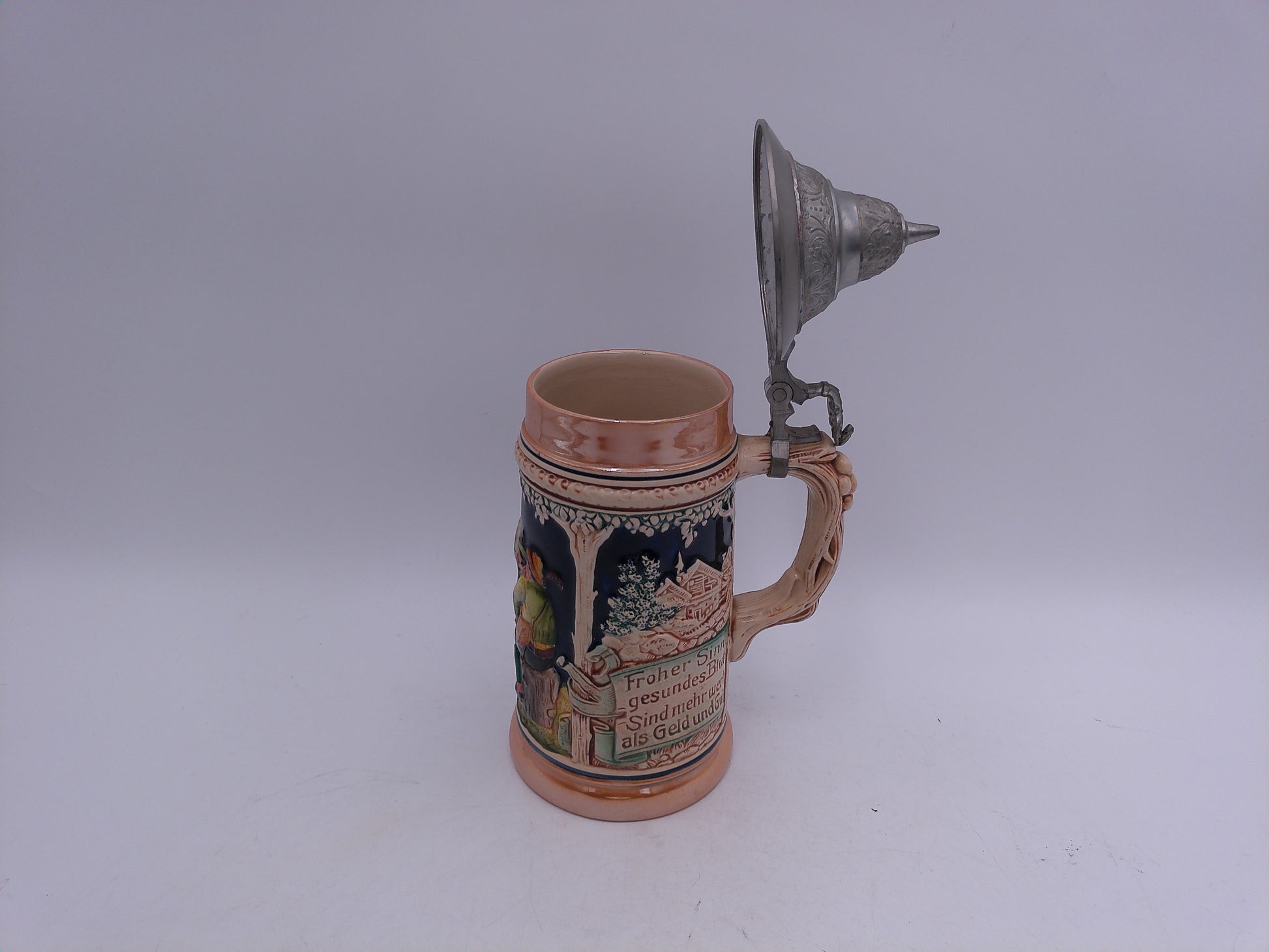 Beer Stein German made Vintage unique pewter lid and decorative handle