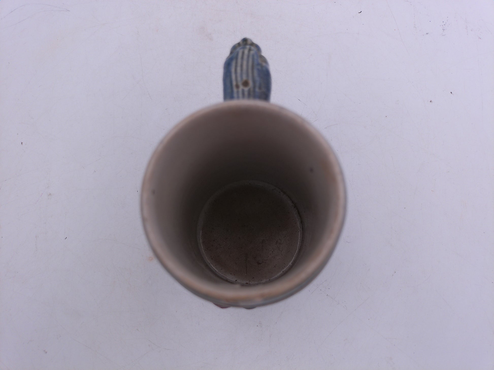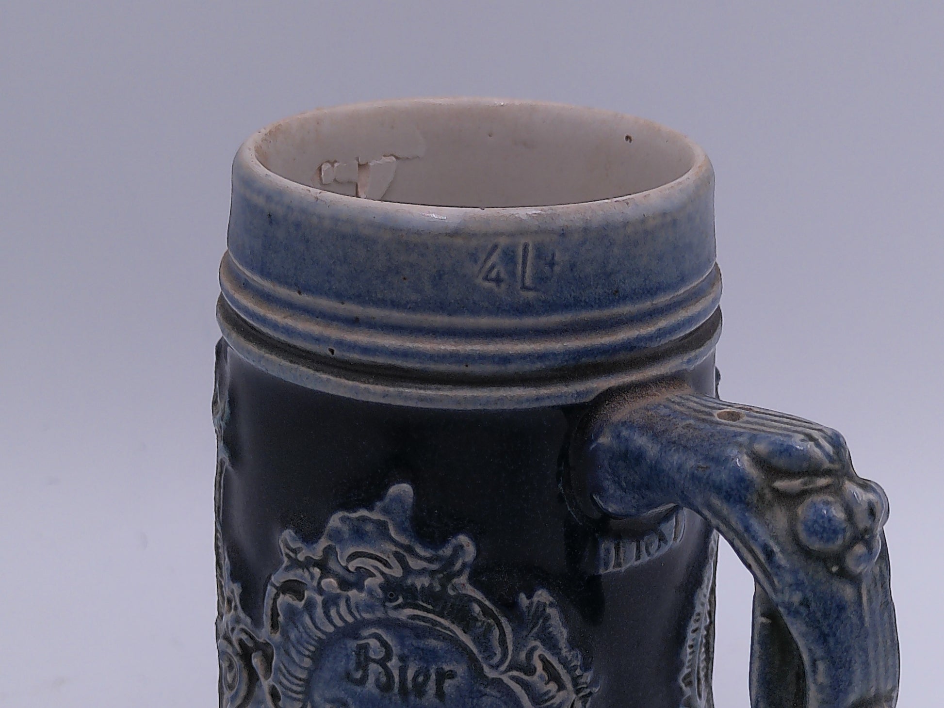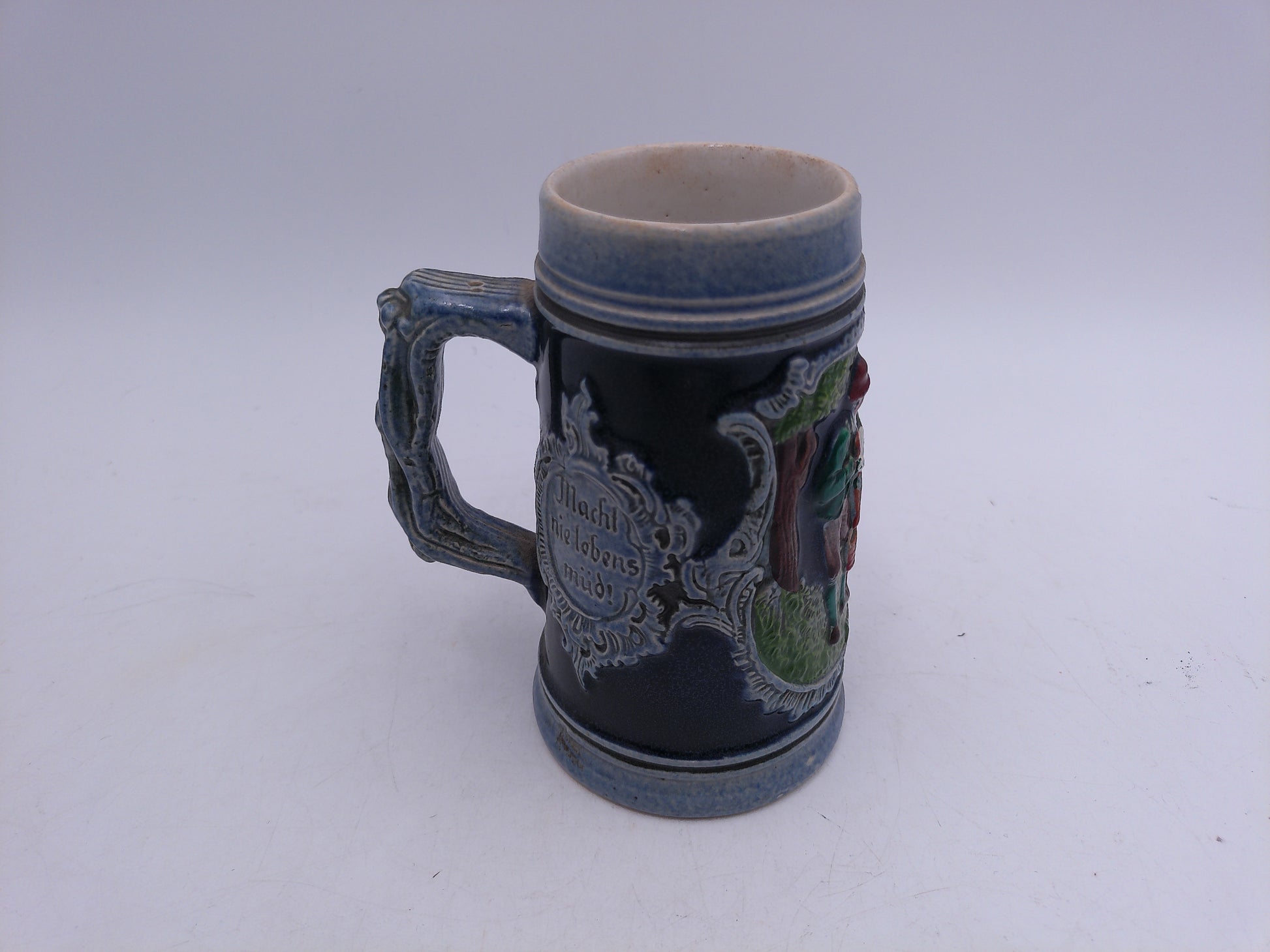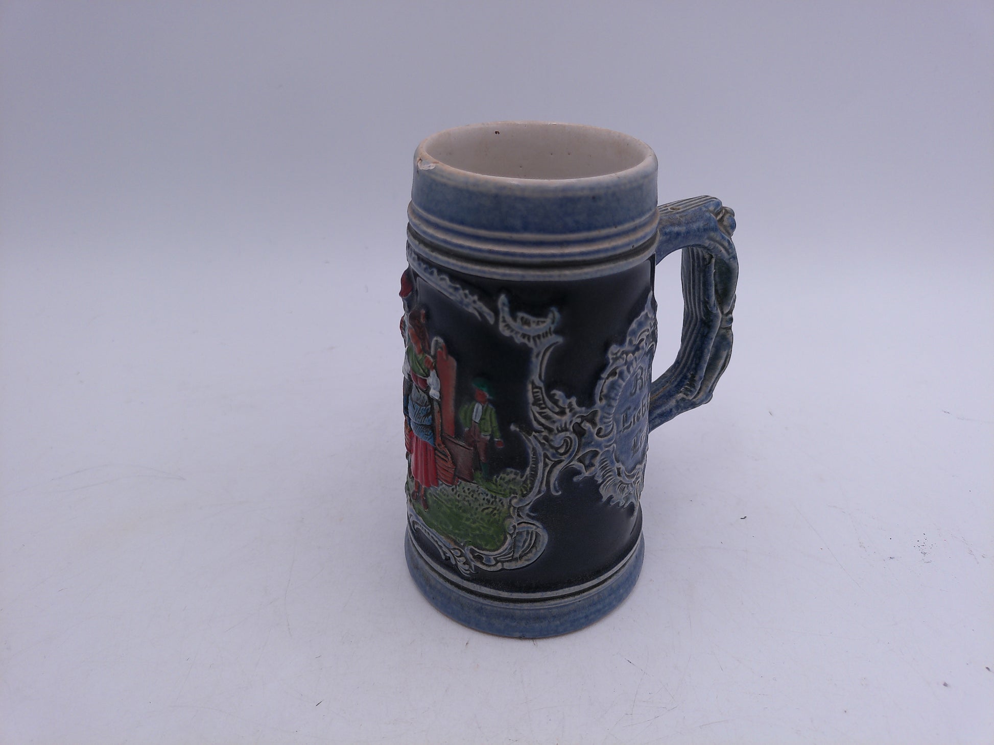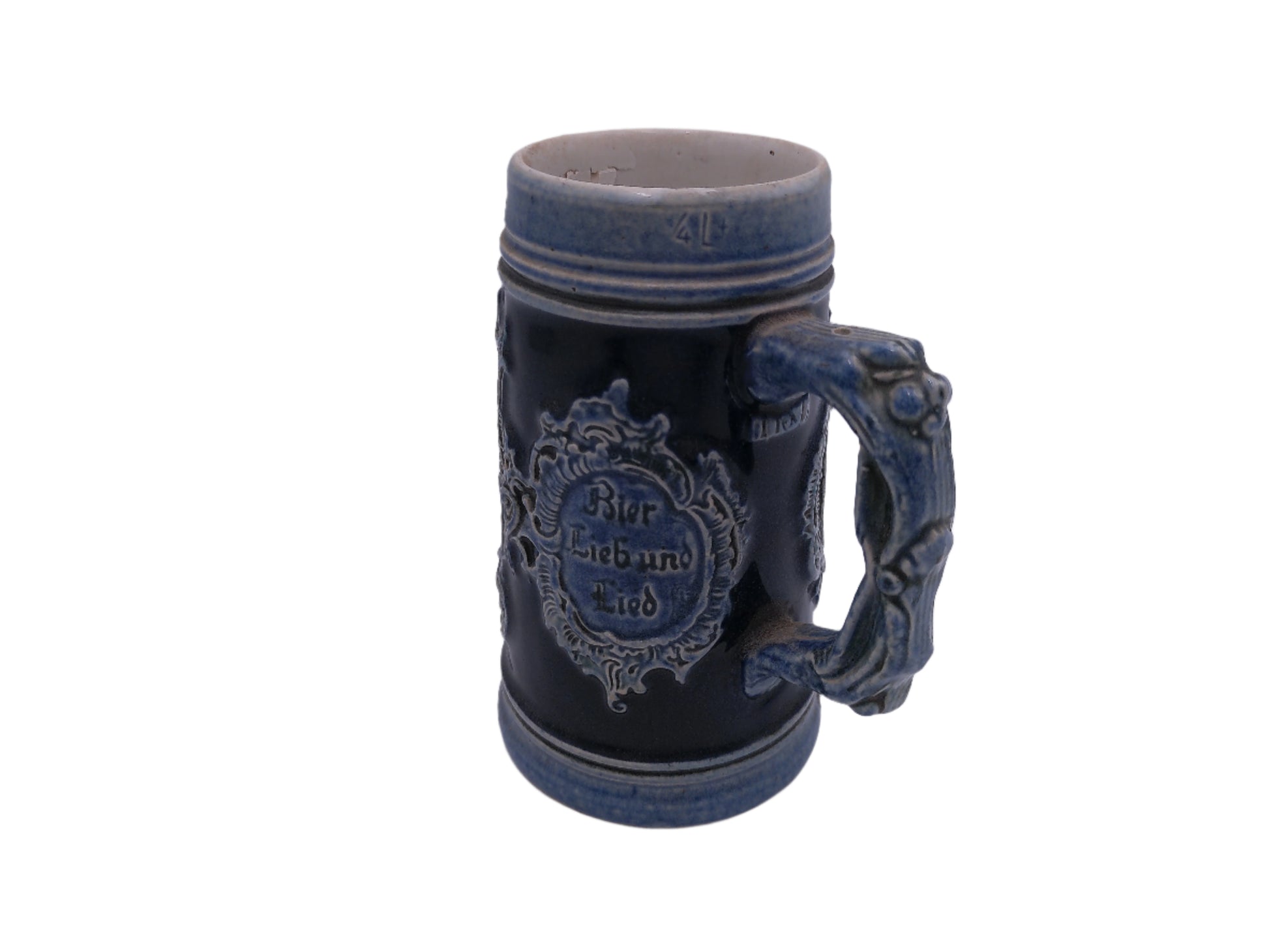 This vintage beer stein was expertly crafted in Germany, its blue color giving it a unique charm. Own a piece of history and elevate your drinking experience with this vintage German beer stein.
