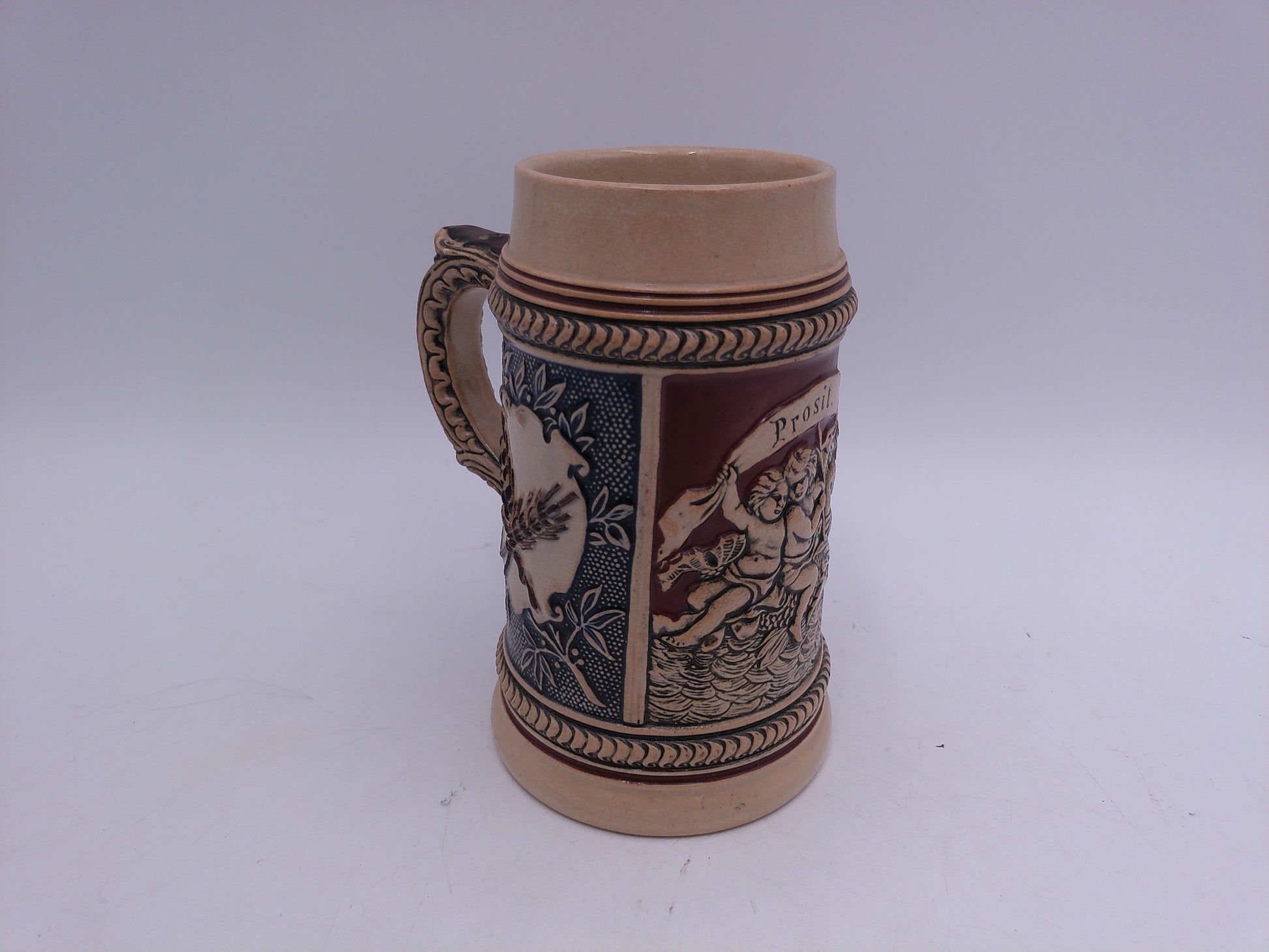 Beer Stein Vintage Prosit Brown and Tan Decorative Handle