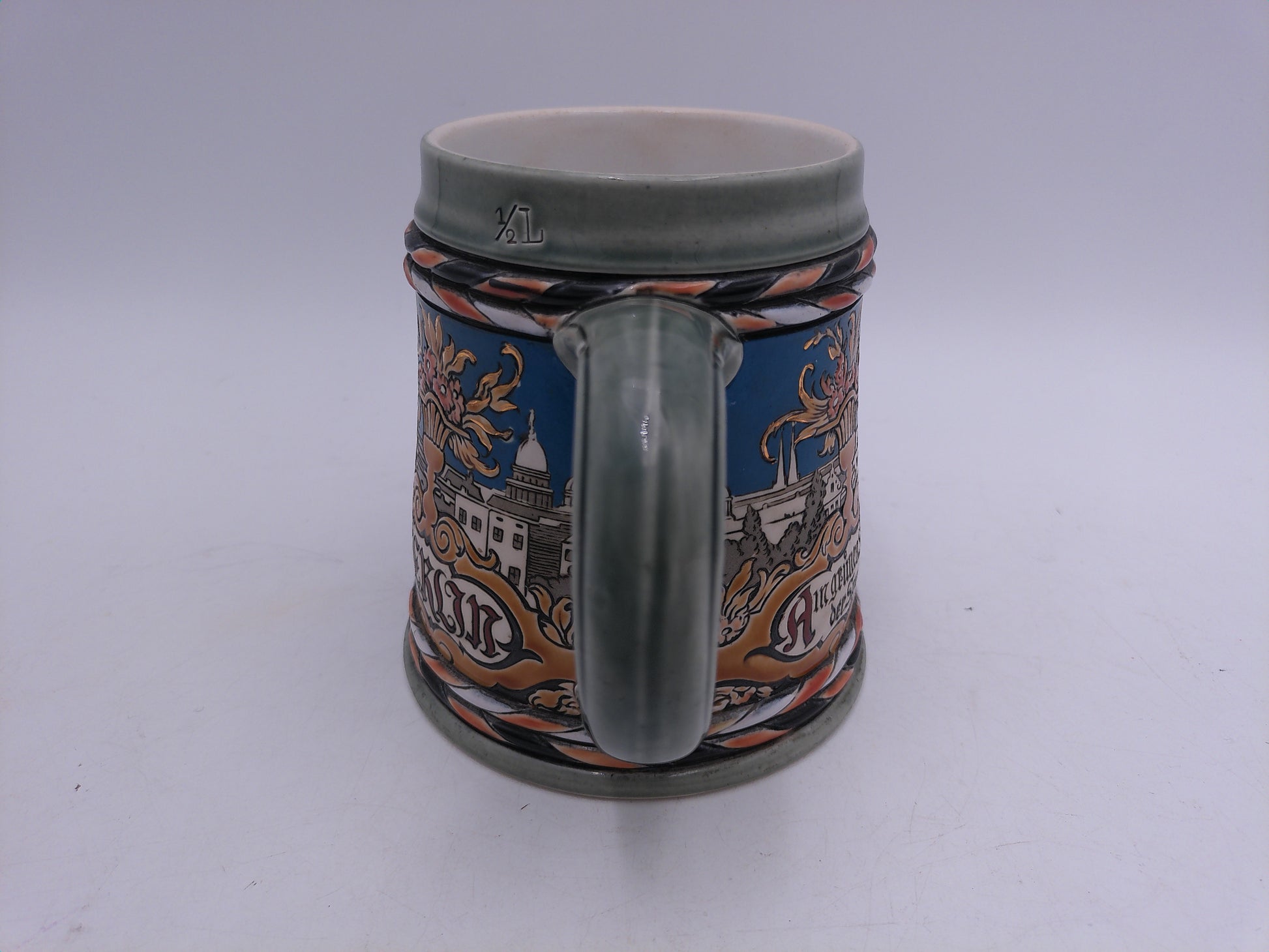 Beer Stein Mettlach .5L Lidded Beer Stein "Shield Of Berlin" #2024 Germany Rare