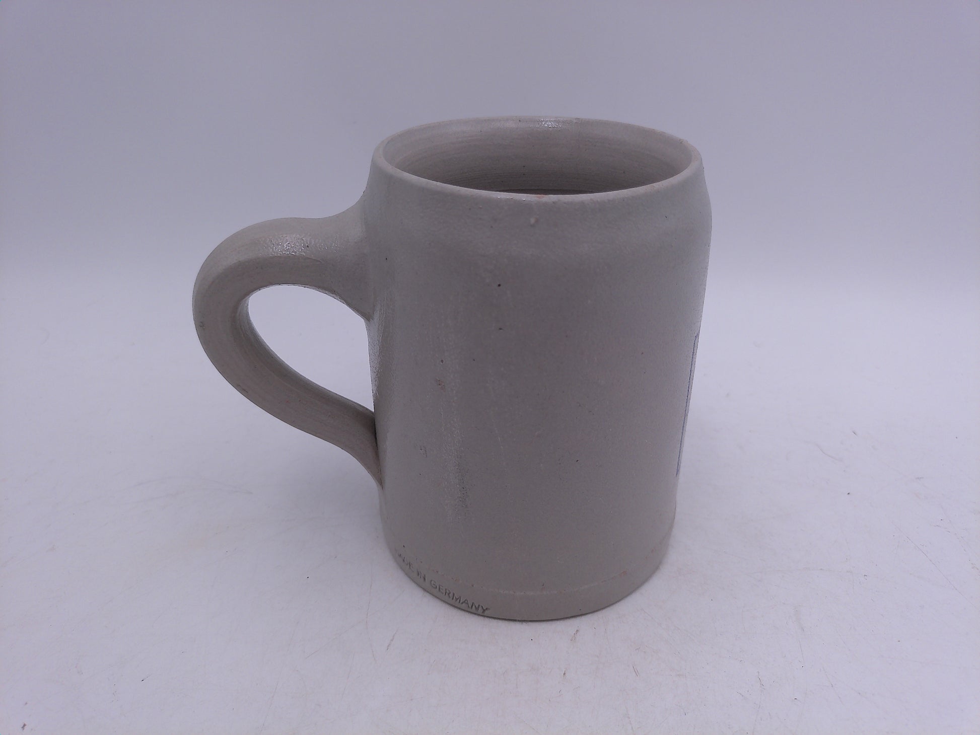 This vintage beer stein from West Germany features a .5 liter capacity and is made of stoneware. Perfect for enjoying a cold brew in style and adding a touch of nostalgia to your collection. Handcrafted by expert artisans of the Würzburger Hofbräu brewery.