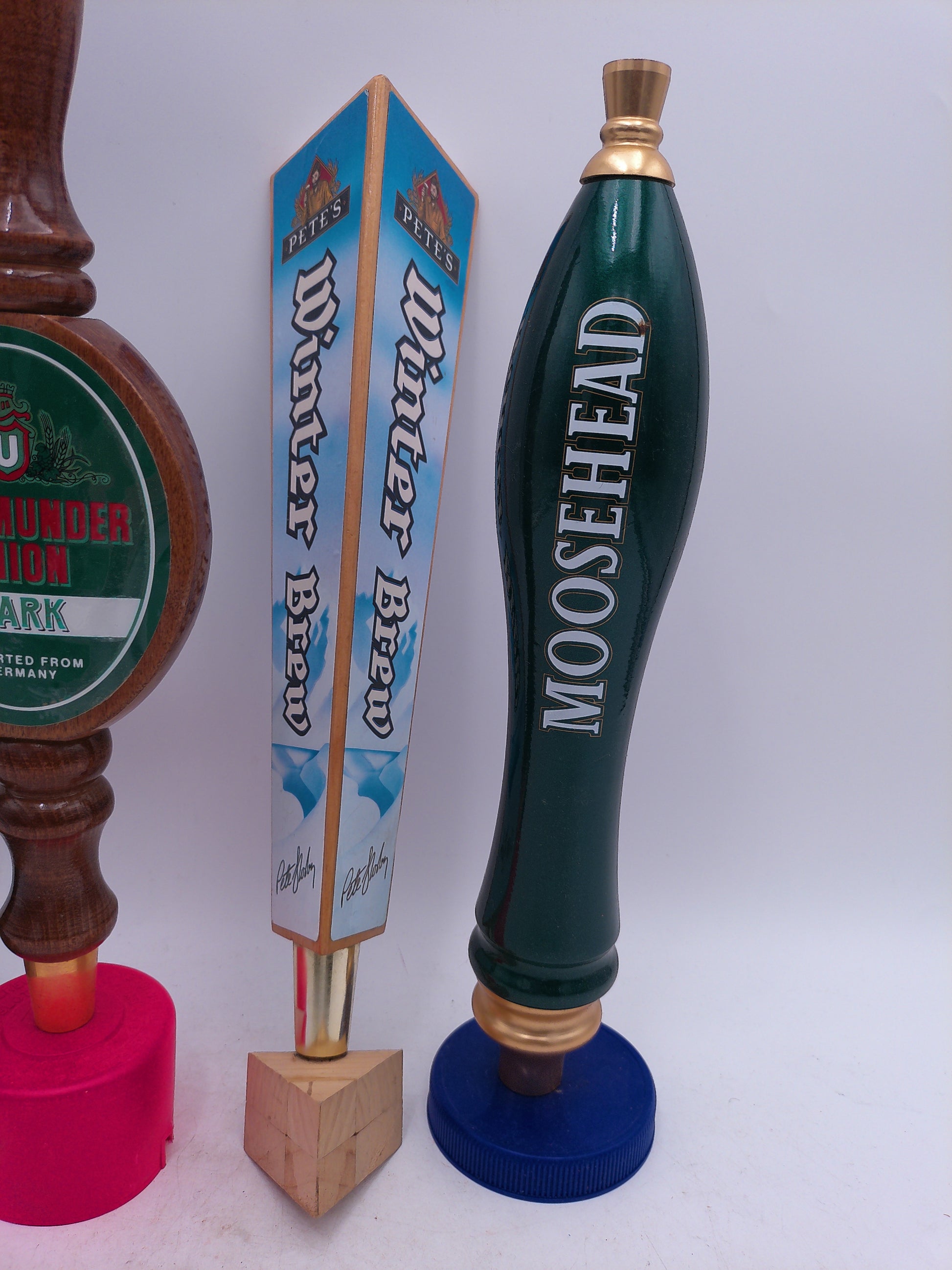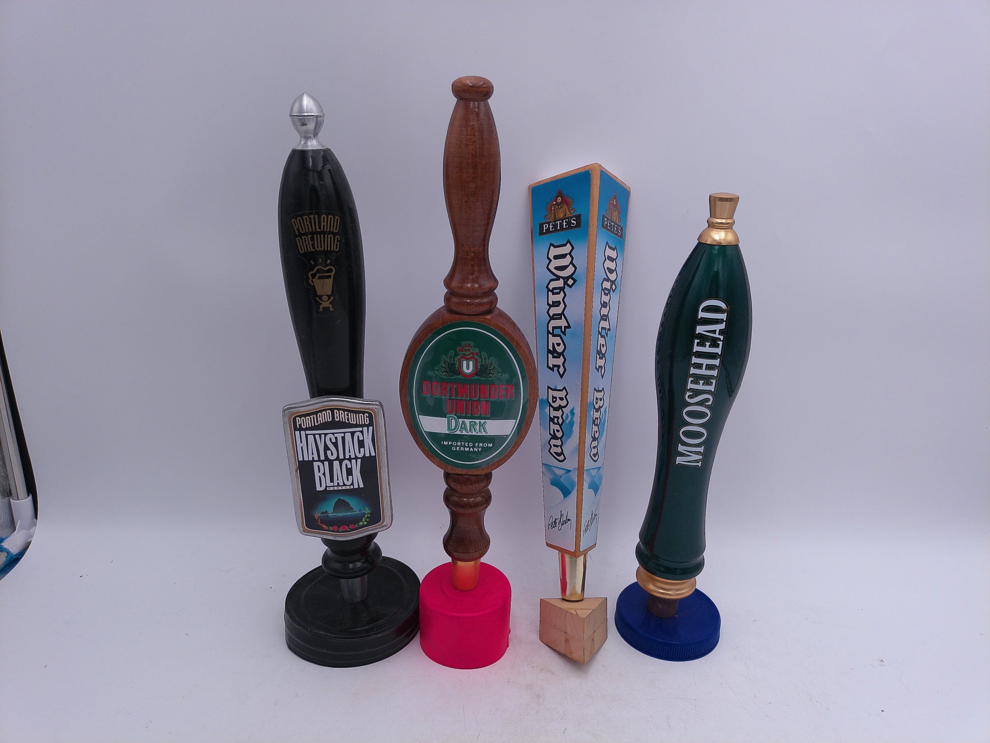 Beer Tap Taps Lot of 4 Haystack Black Winter Brew Moosehead Portmunder Union Dark