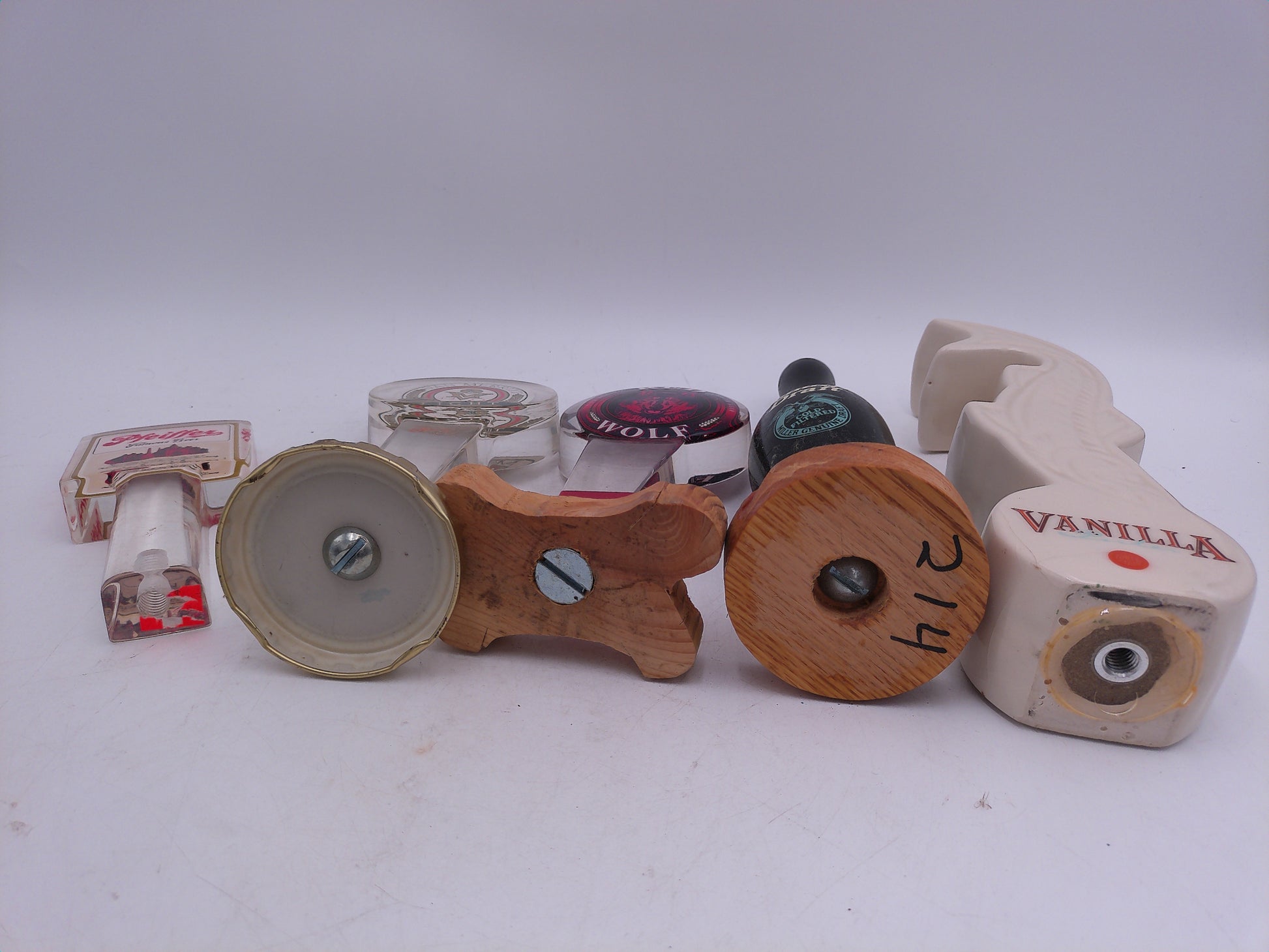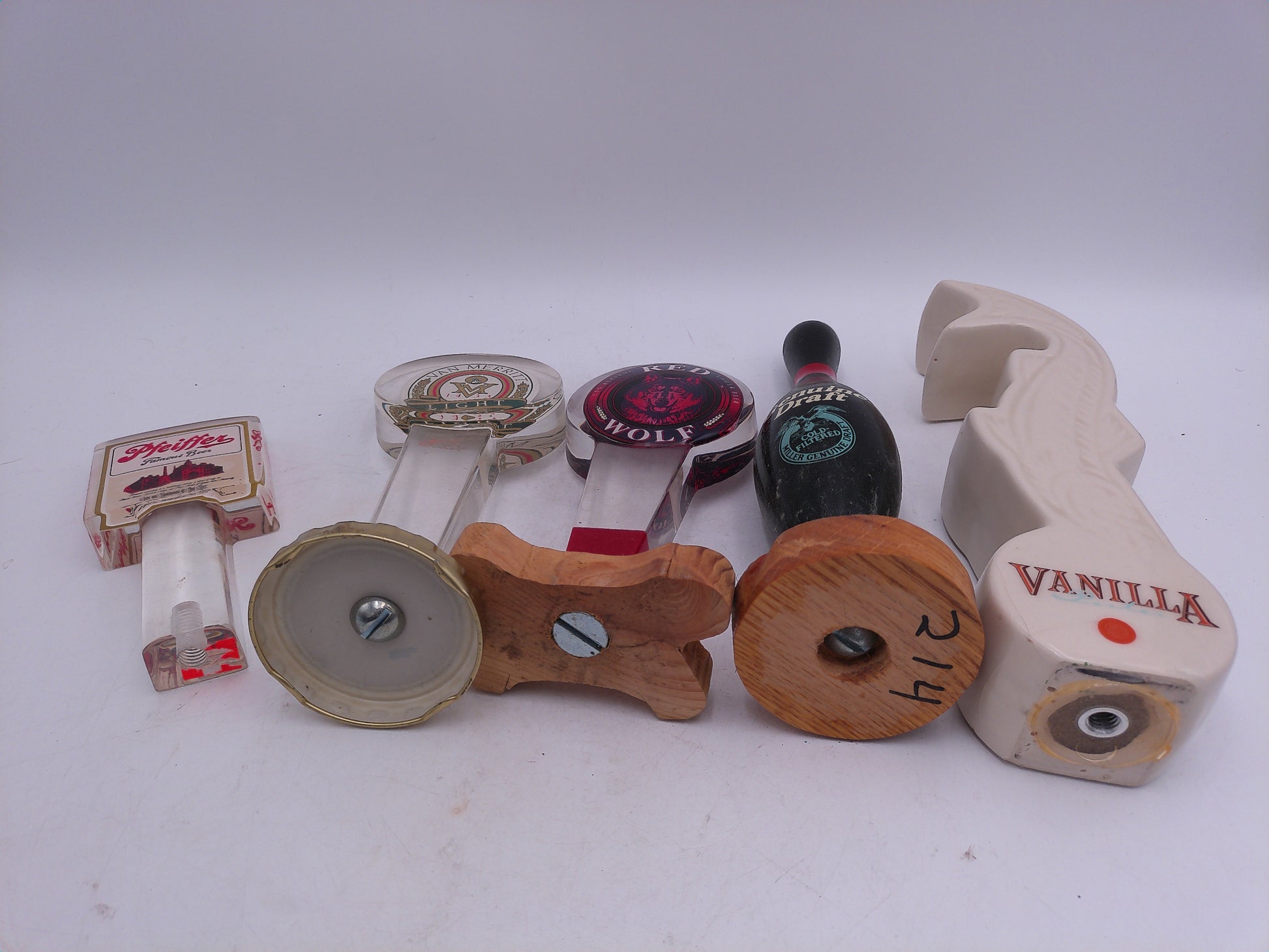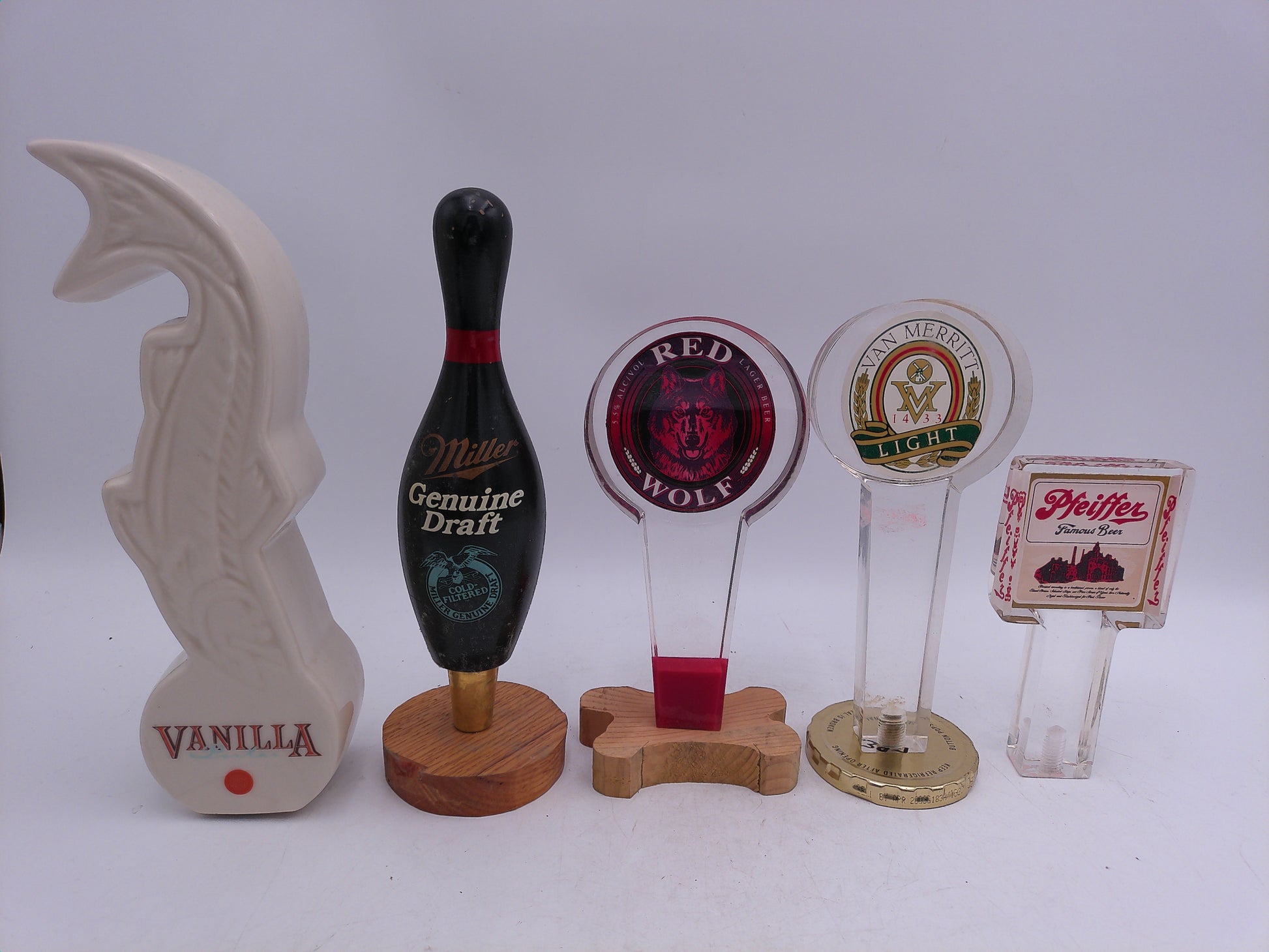 Beer Tap Taps Lot of 5 Red Wolf Vanvilla Miller Genuine Draft Pfeiffer Famous Beer Van Merreit
