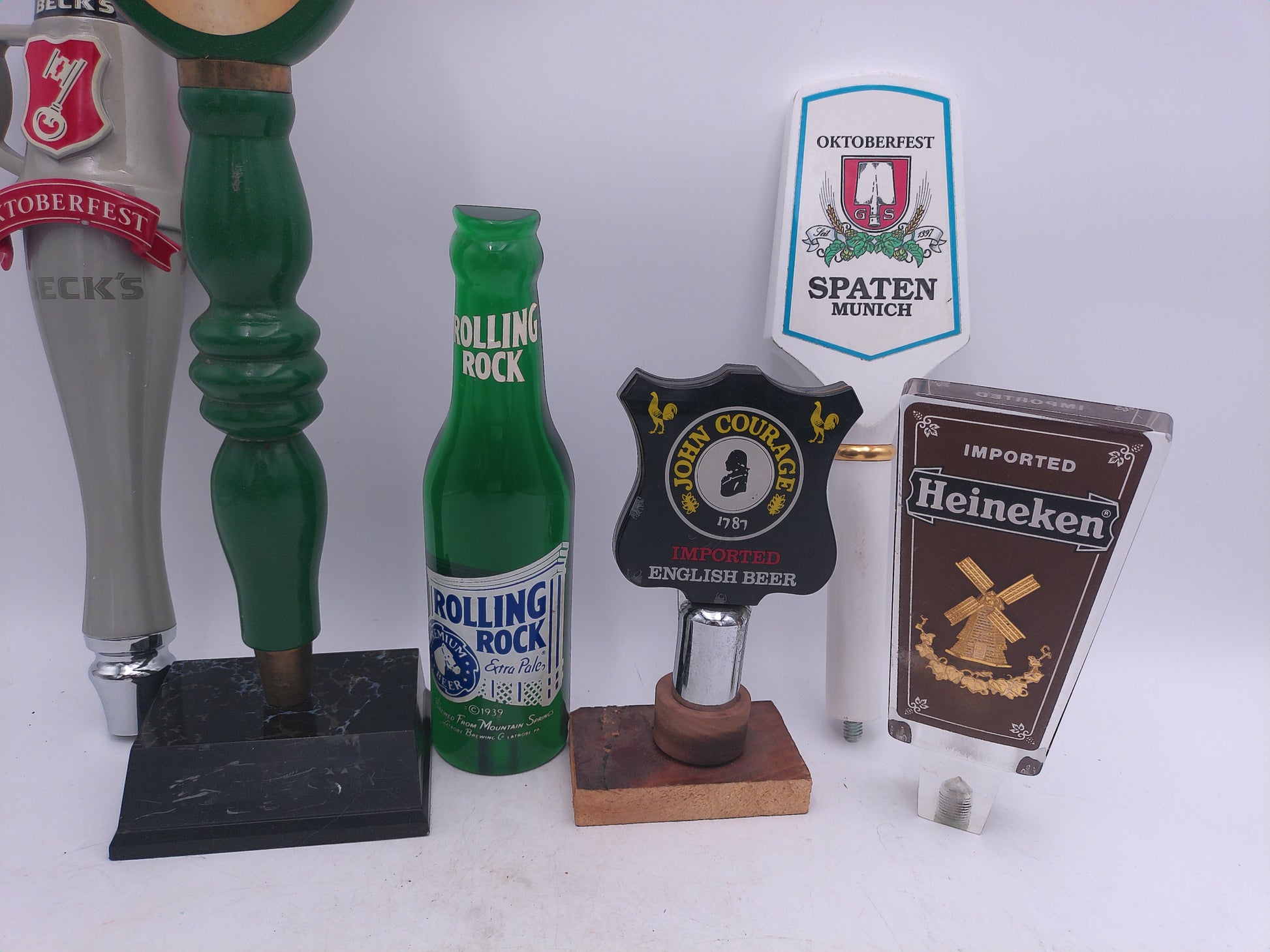 Beer Tap Taps Lot of 6 Heineken Rolling Rock Beck's Par 5 Johns Courage Beer Taps