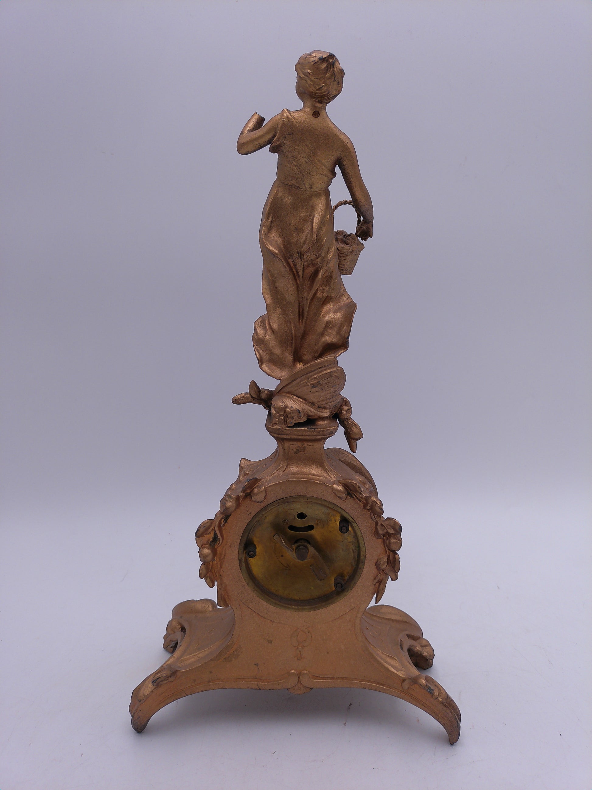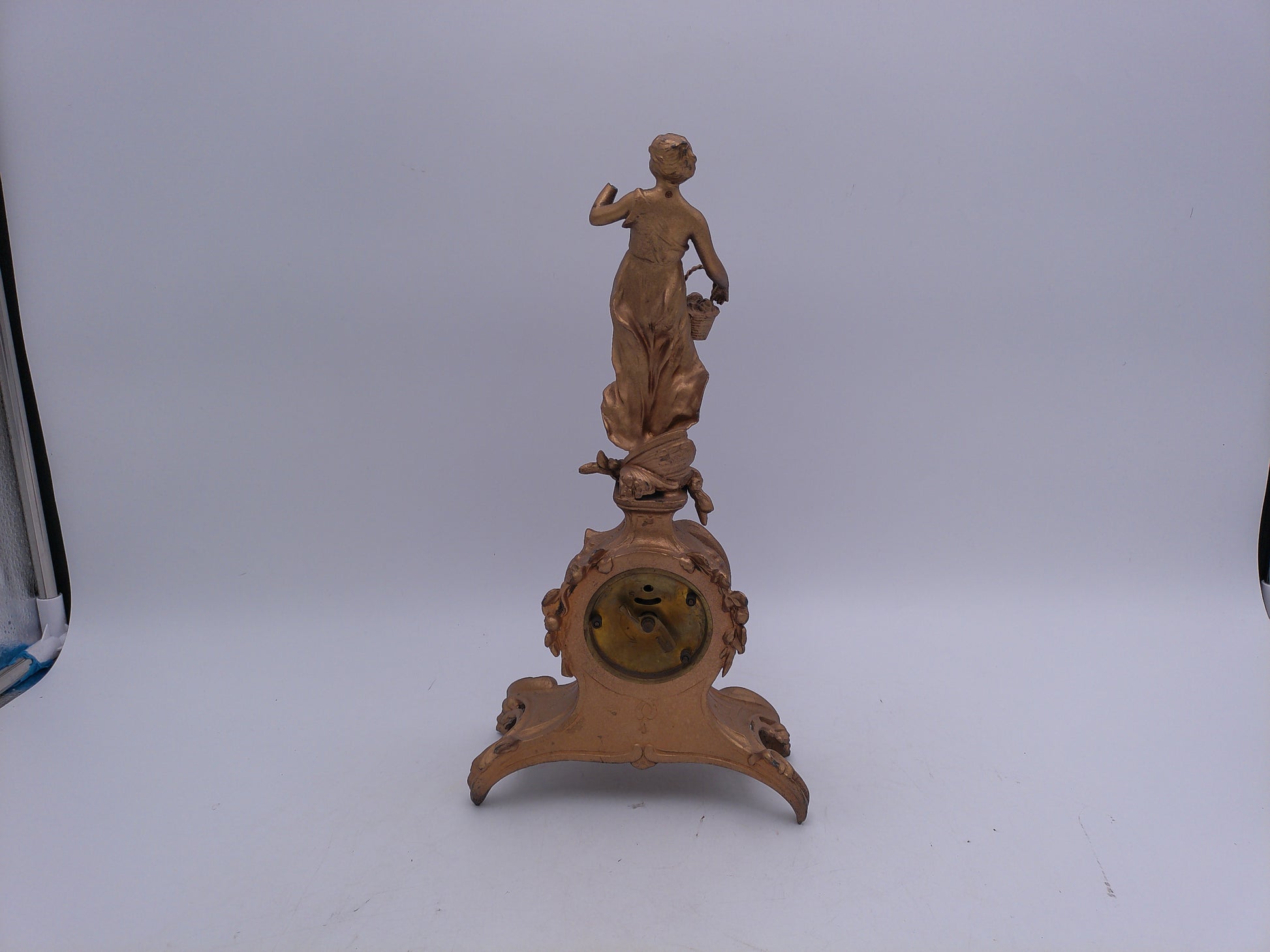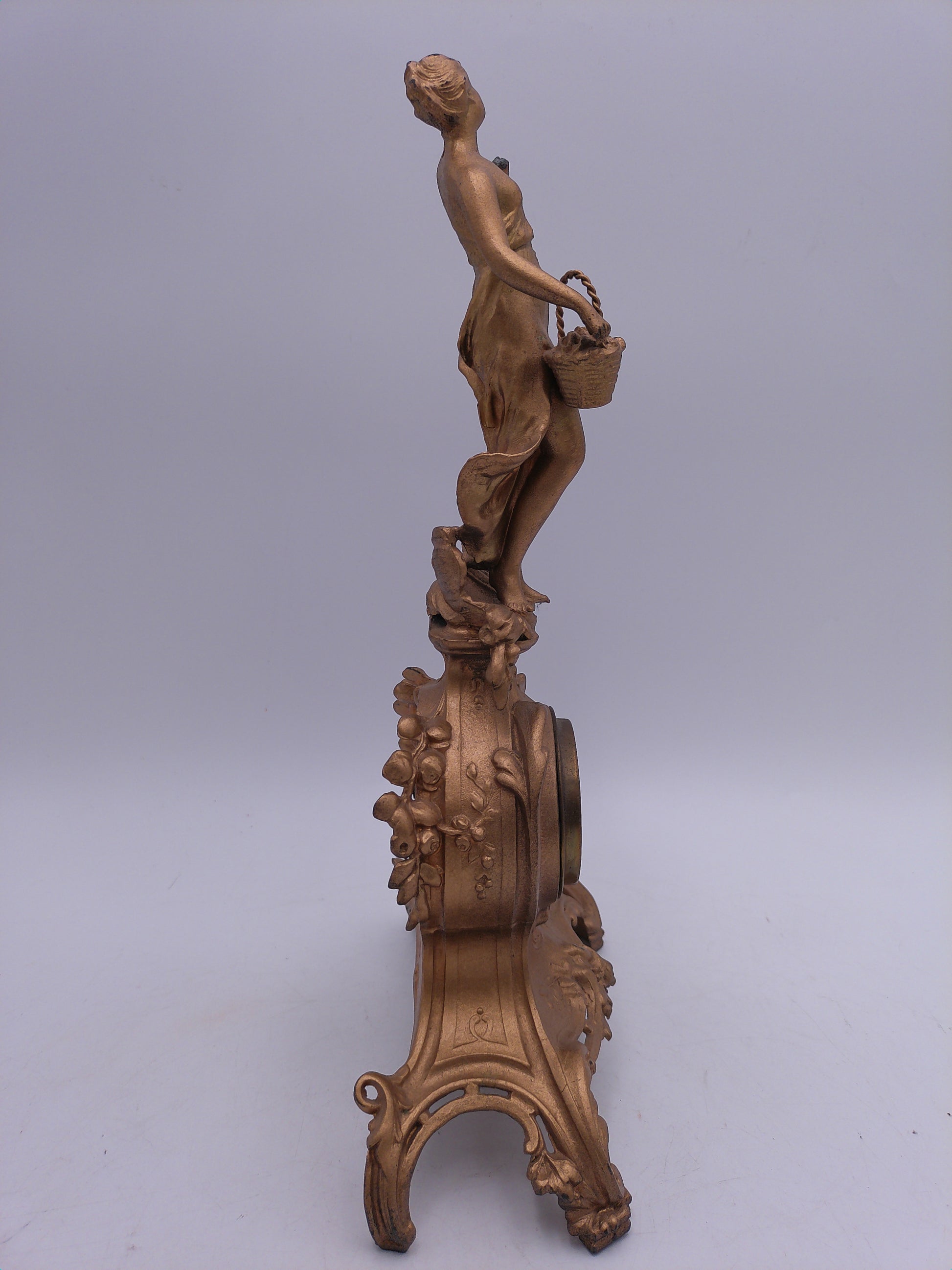 Benedict Cherub Metal Mantle Clock Cast Iron gold painted Vintage