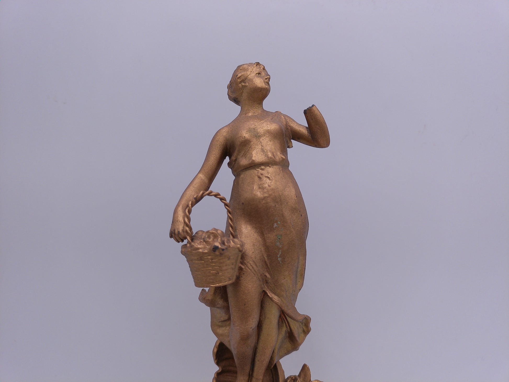 This Benedict Cherub Metal Mantle Clock is a vintage piece that adds a touch of elegance to any room. Made of cast iron and painted with a luxurious gold finish, this clock not only tells time but also serves as a decorative piece. With its detailed cherub design, it is the perfect addition to any mantle or shelf.