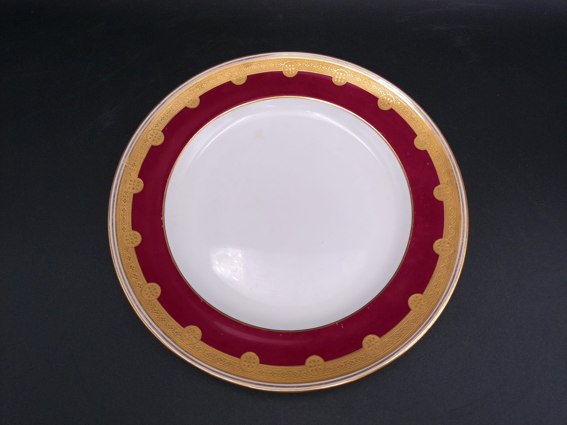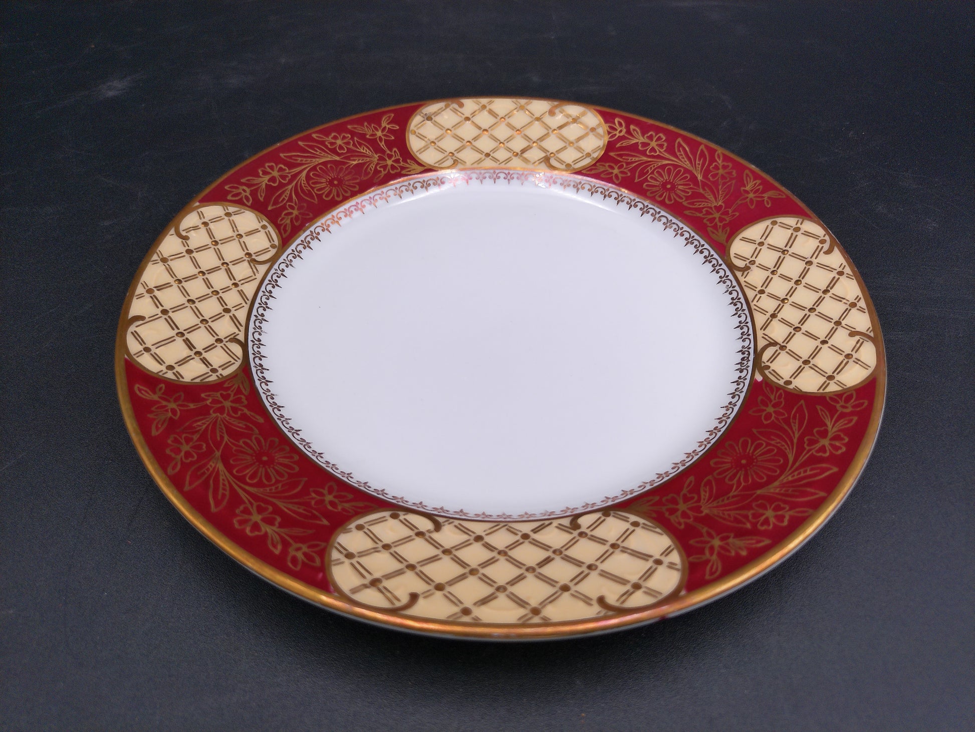 Impress your guests with the exquisite Schumann Dresden Gold Plated Rim Plate and one from Mitton China Tiffany Co. Made with the finest materials, this set adds a touch of elegance to any dining experience. With its intricate detailing and luxurious design, it is sure to enhance the overall presentation of your meals.