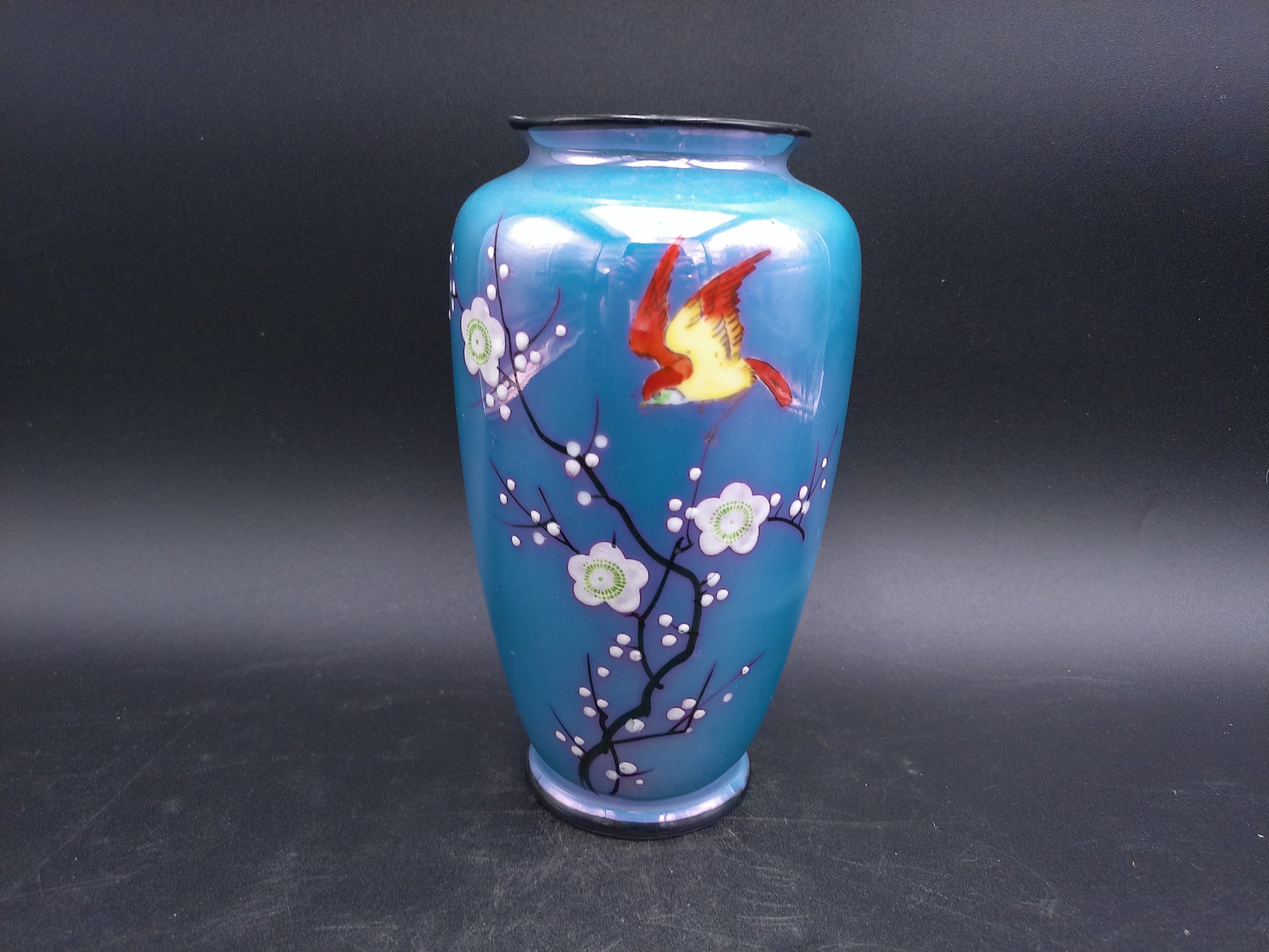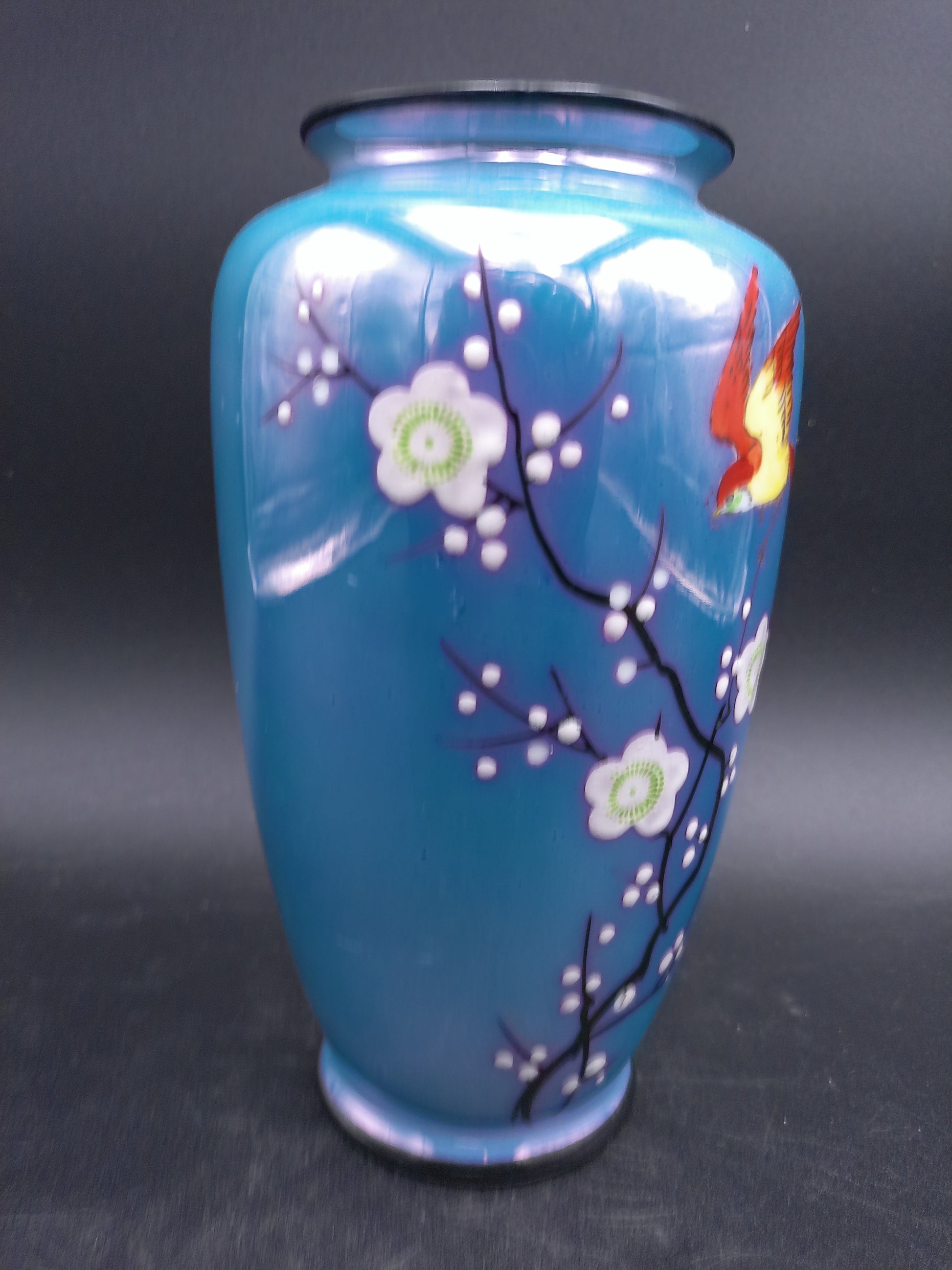 Japan Made Vase with Flower design with Birds Vintage Blue color