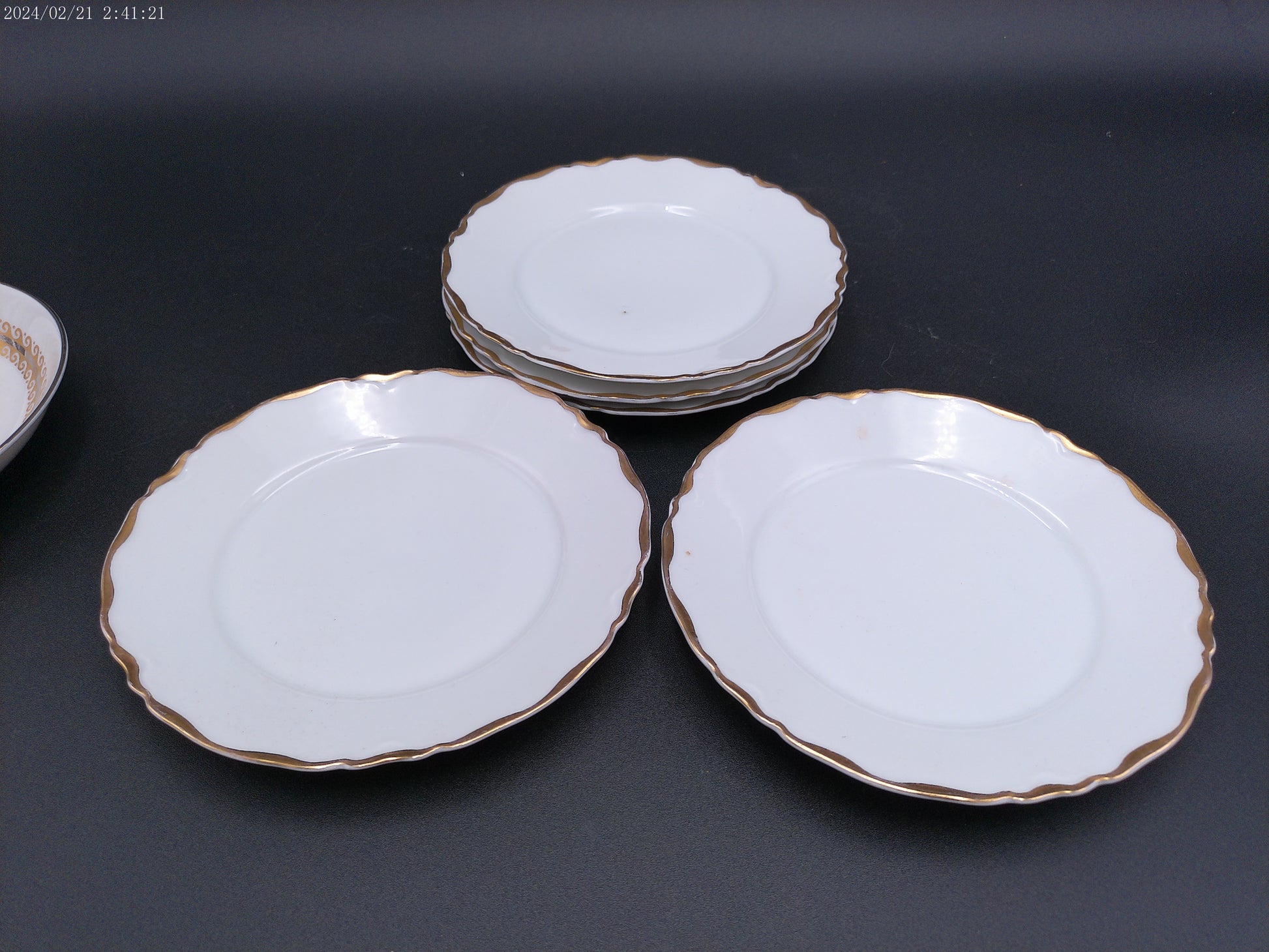 Bone China Dinnerware 5 plates and 1 dish Gold design