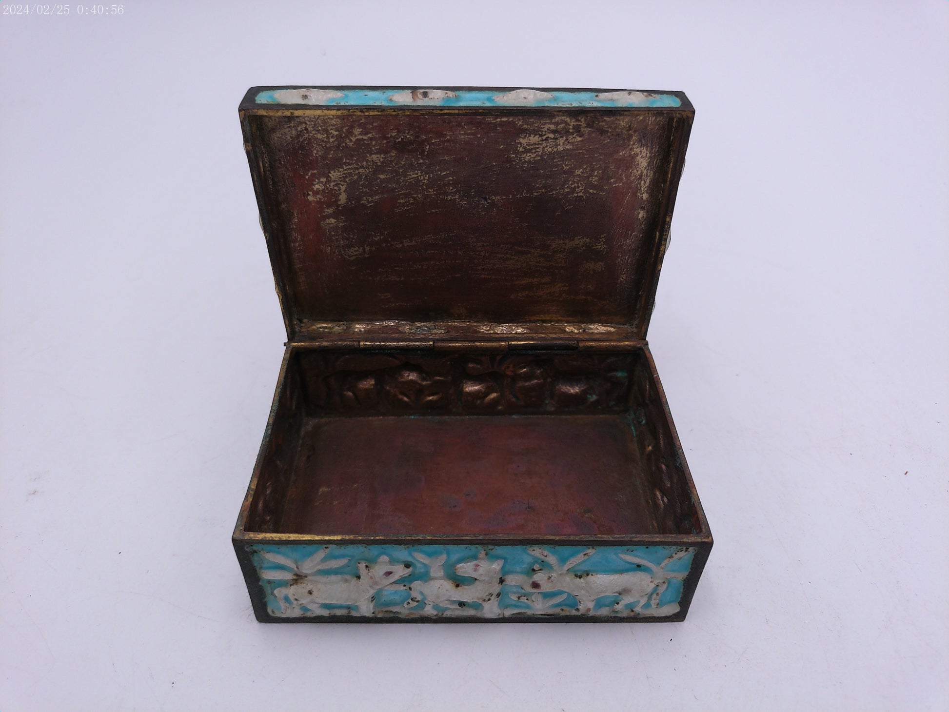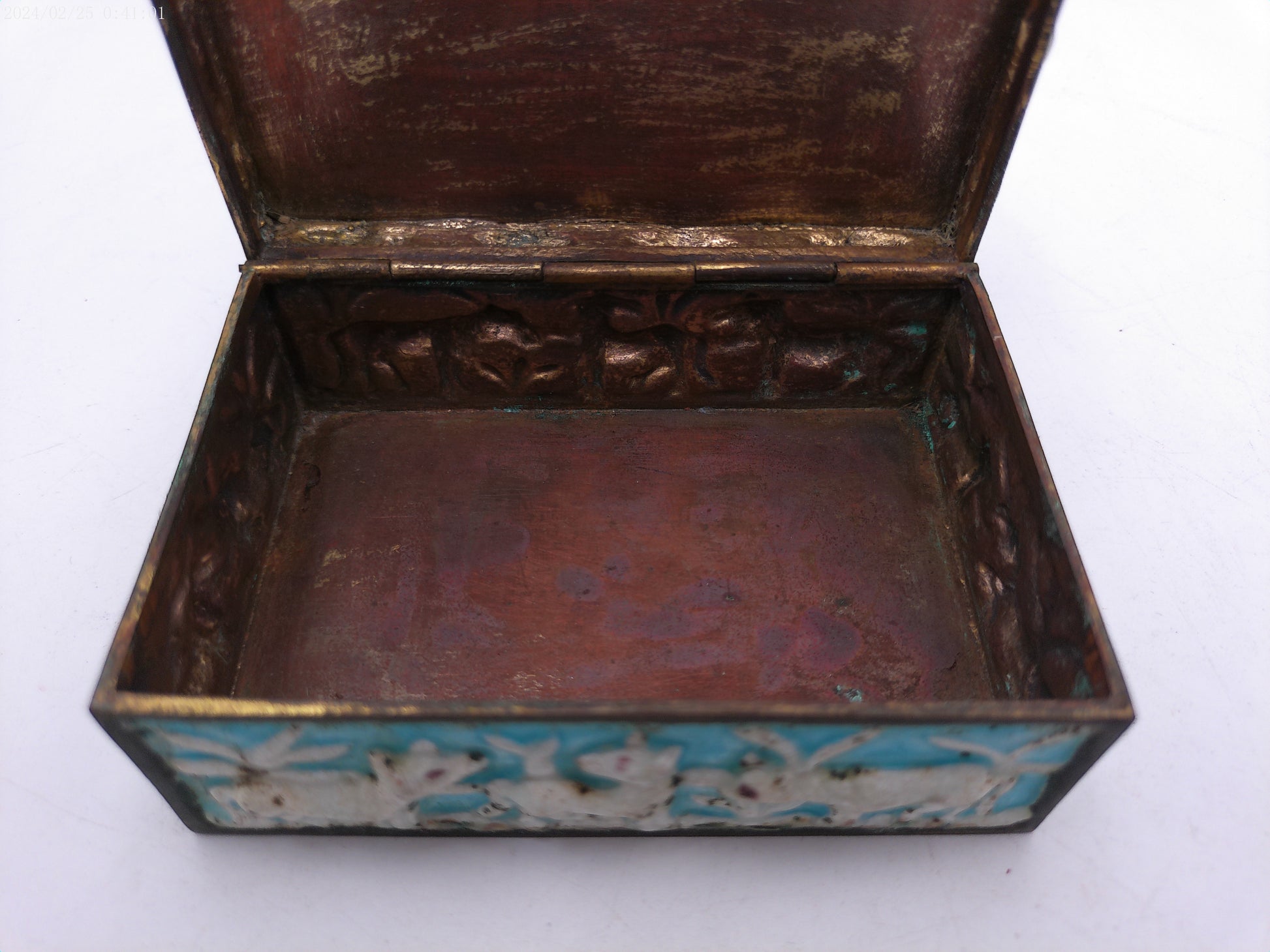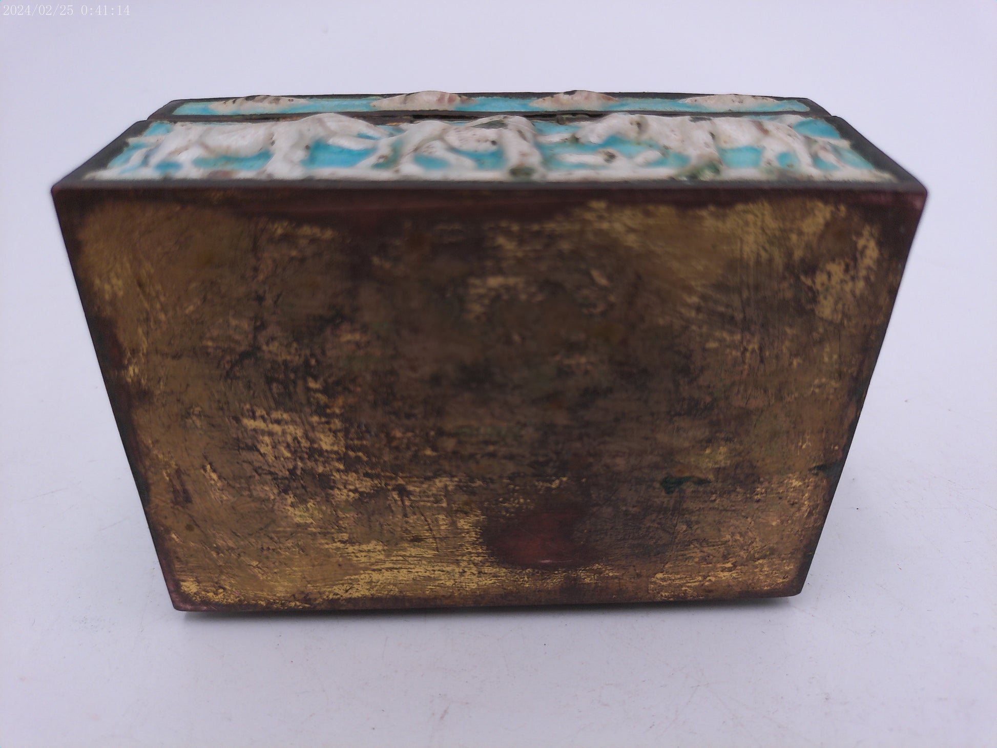 Box Vintage metal and brass and medal painted Hinged winter scene