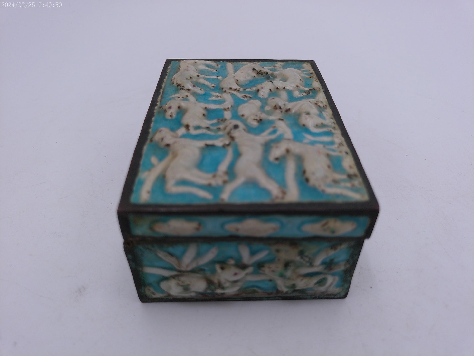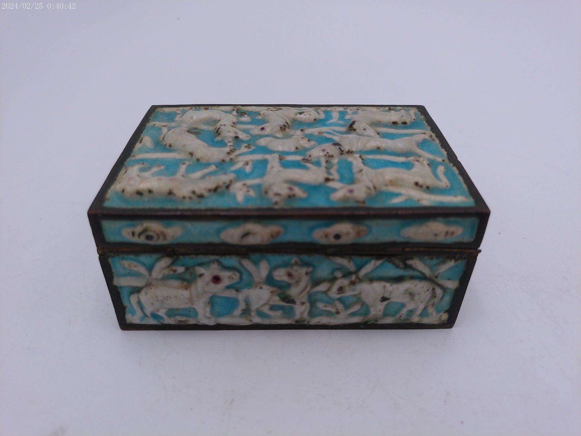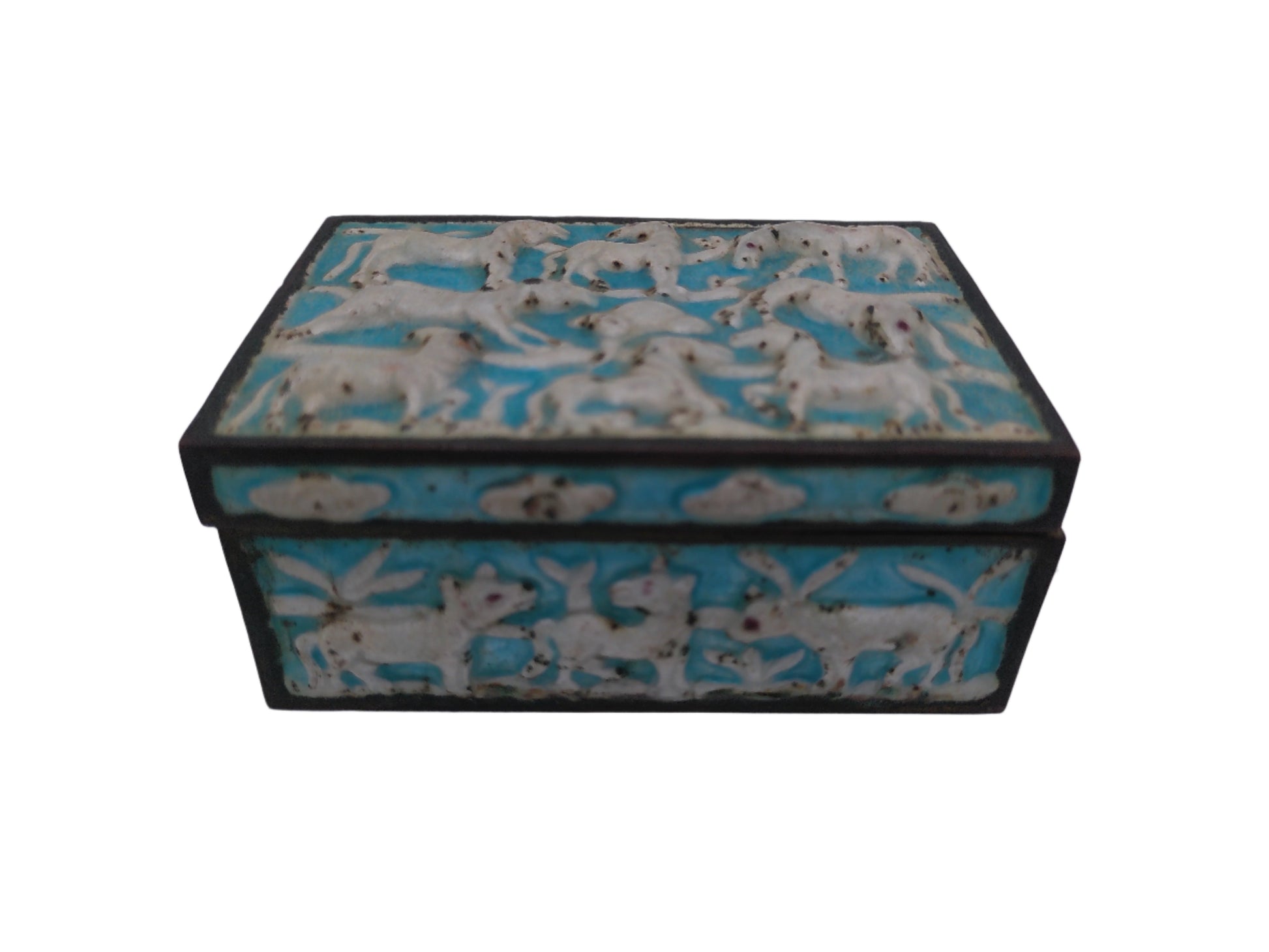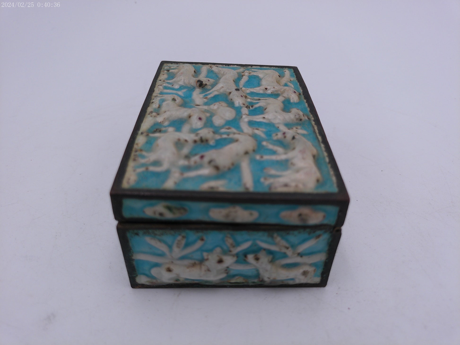 Box Vintage metal and brass and medal painted Hinged winter scene