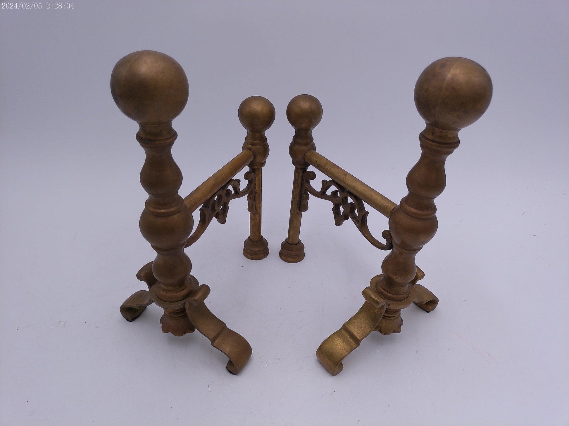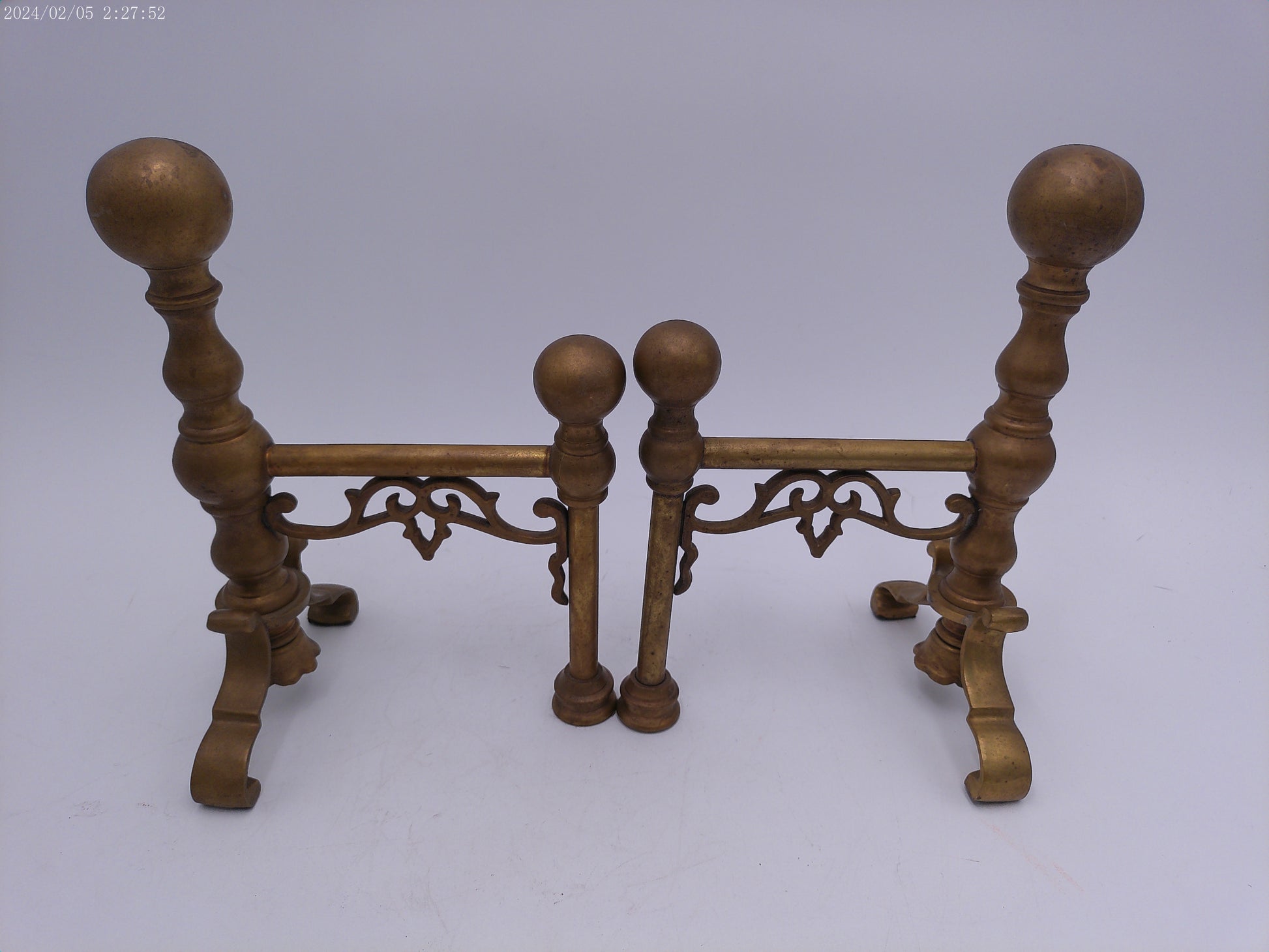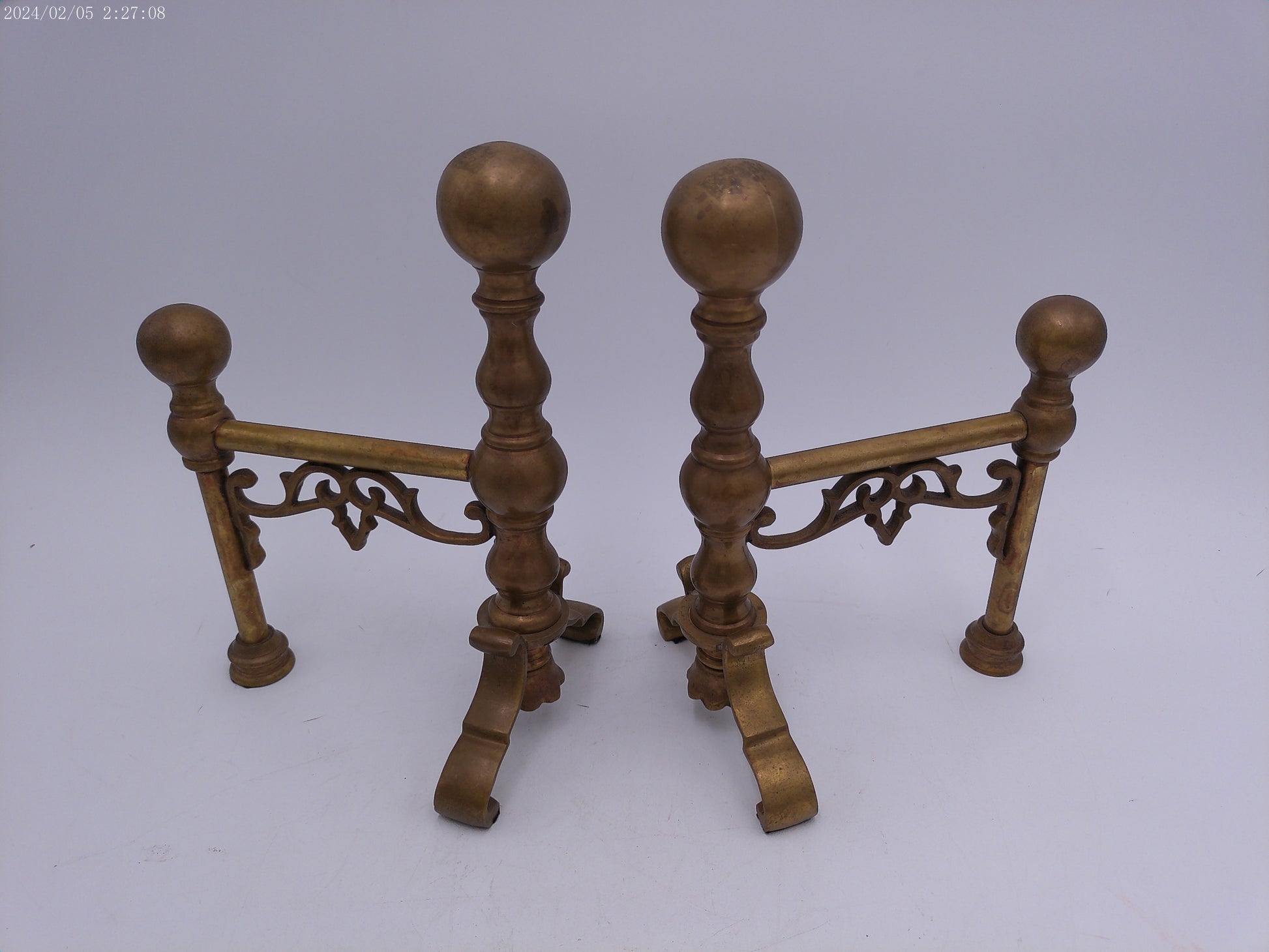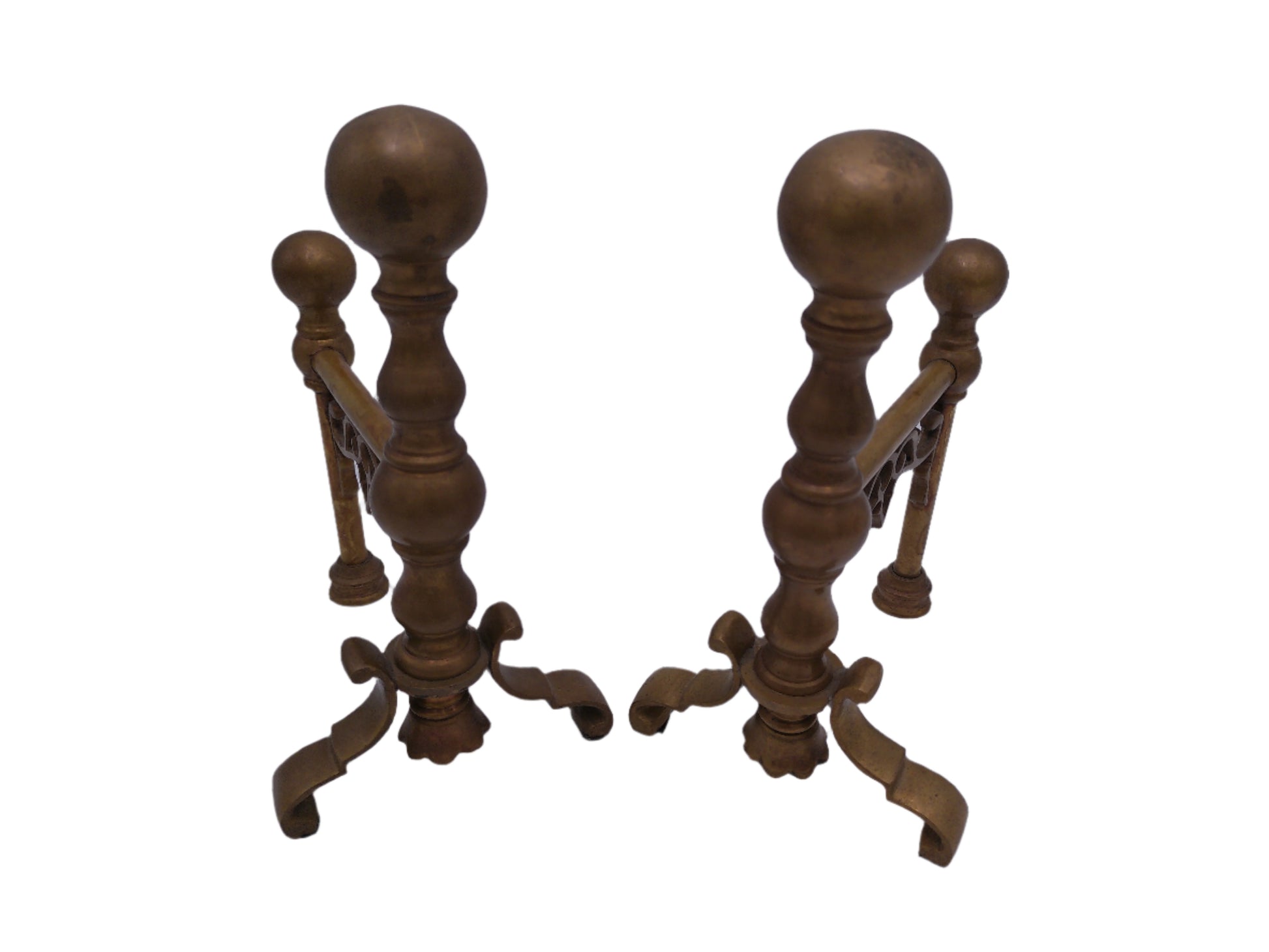 Bronze Ball Fireplace Andiron Log Holders Vintage