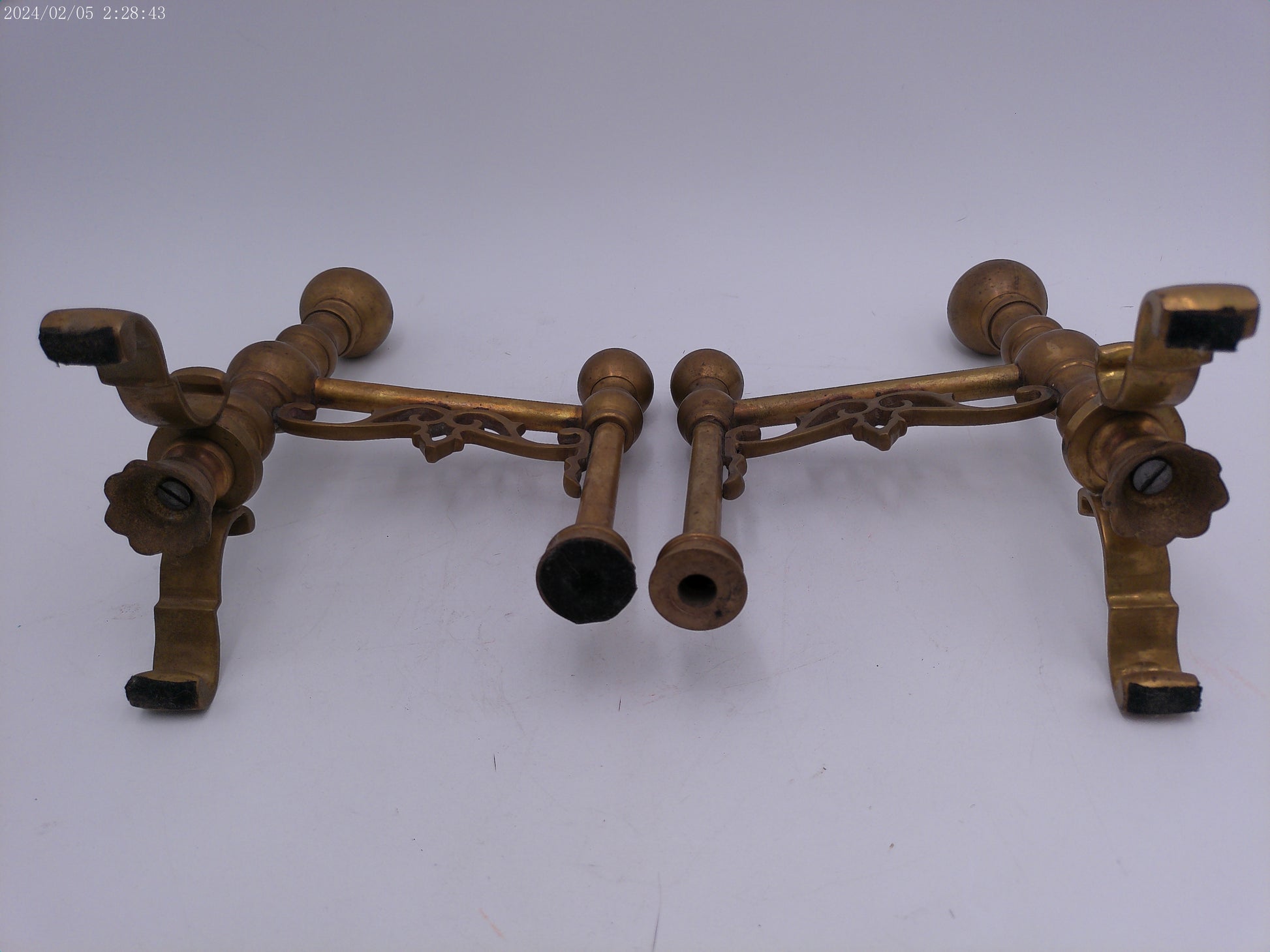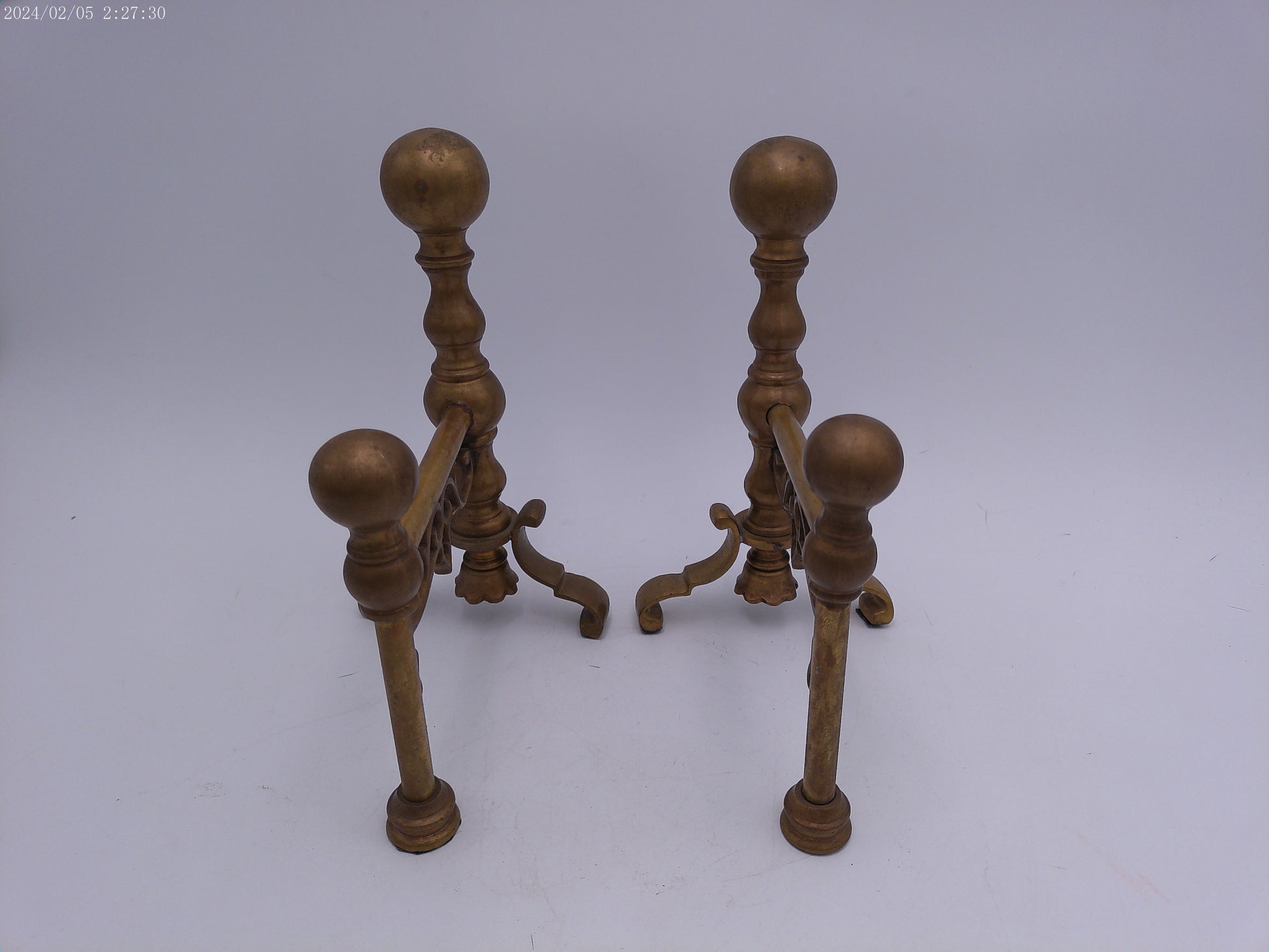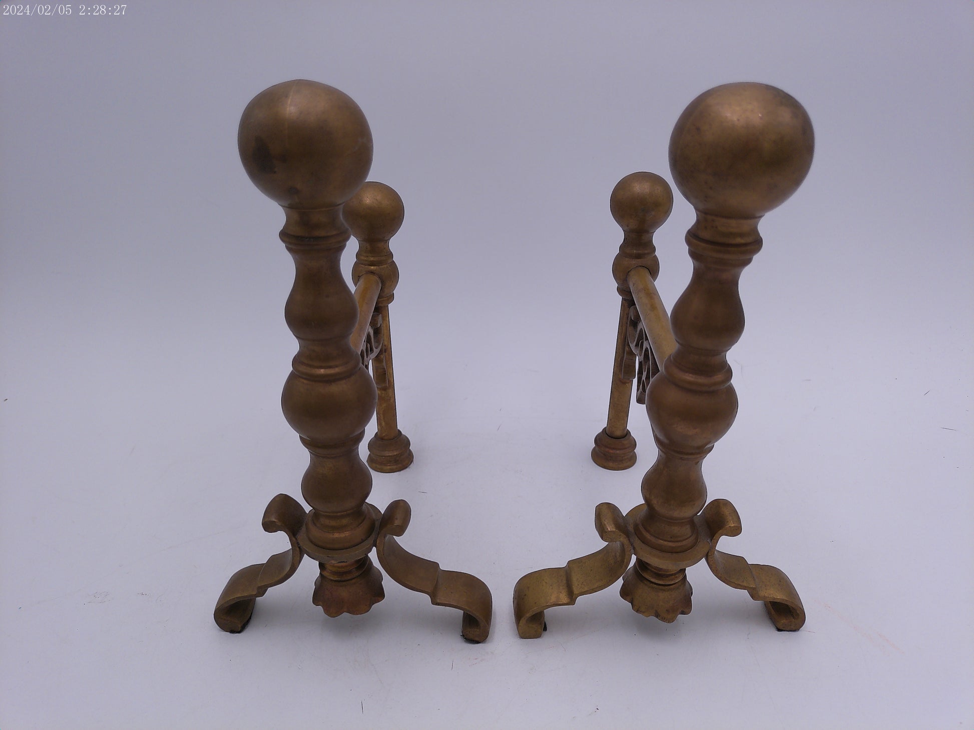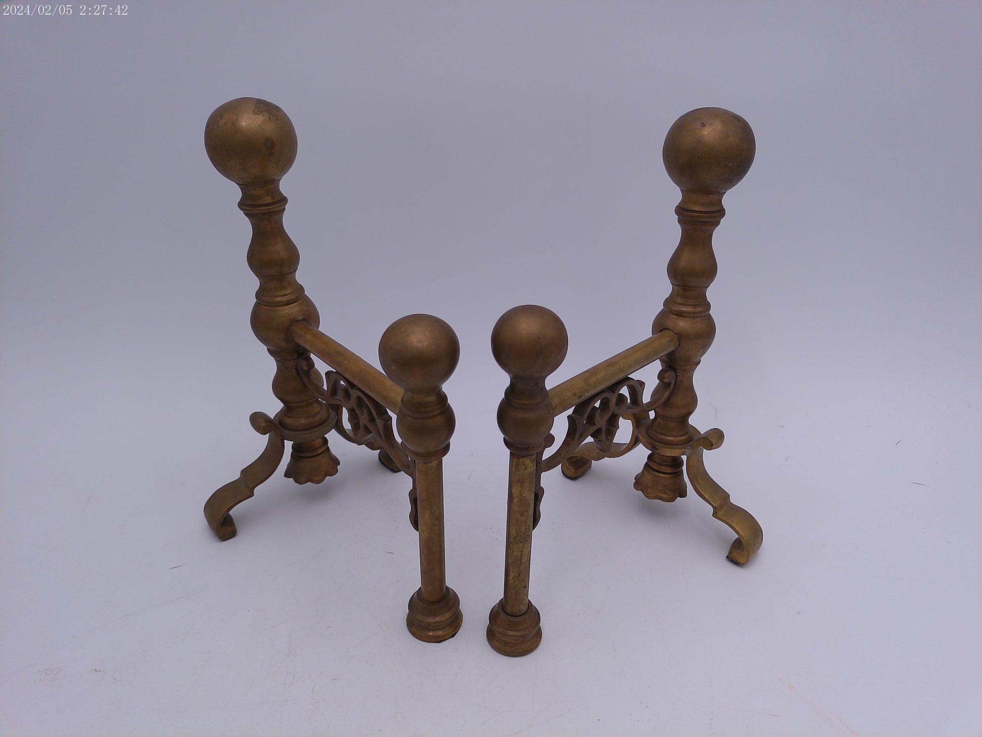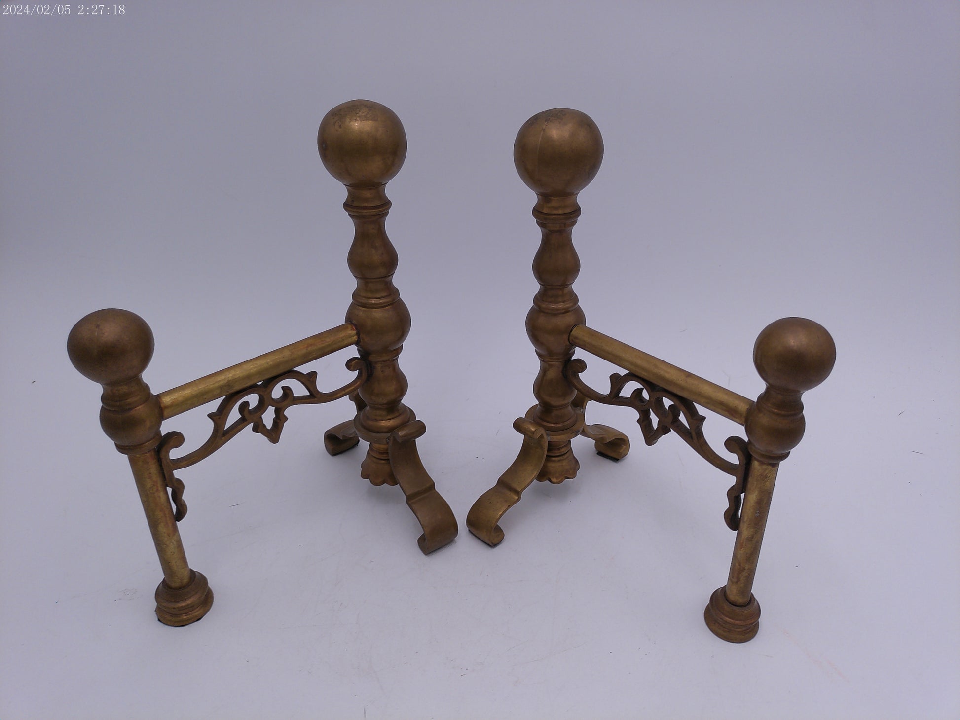 Bronze Ball Fireplace Andiron Log Holders Vintage