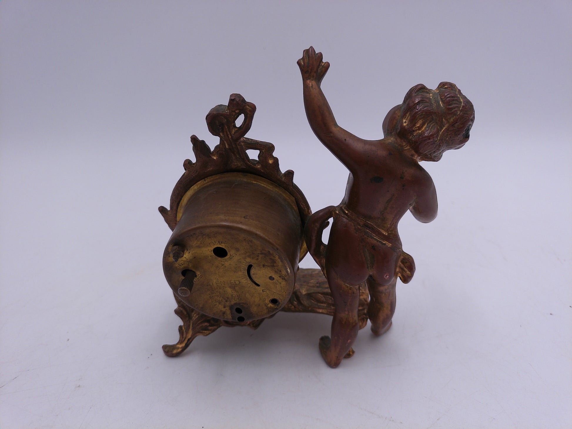 Bronze Gold Winding Clock New Haven Clock Company Cherub Rococo Victorian Style