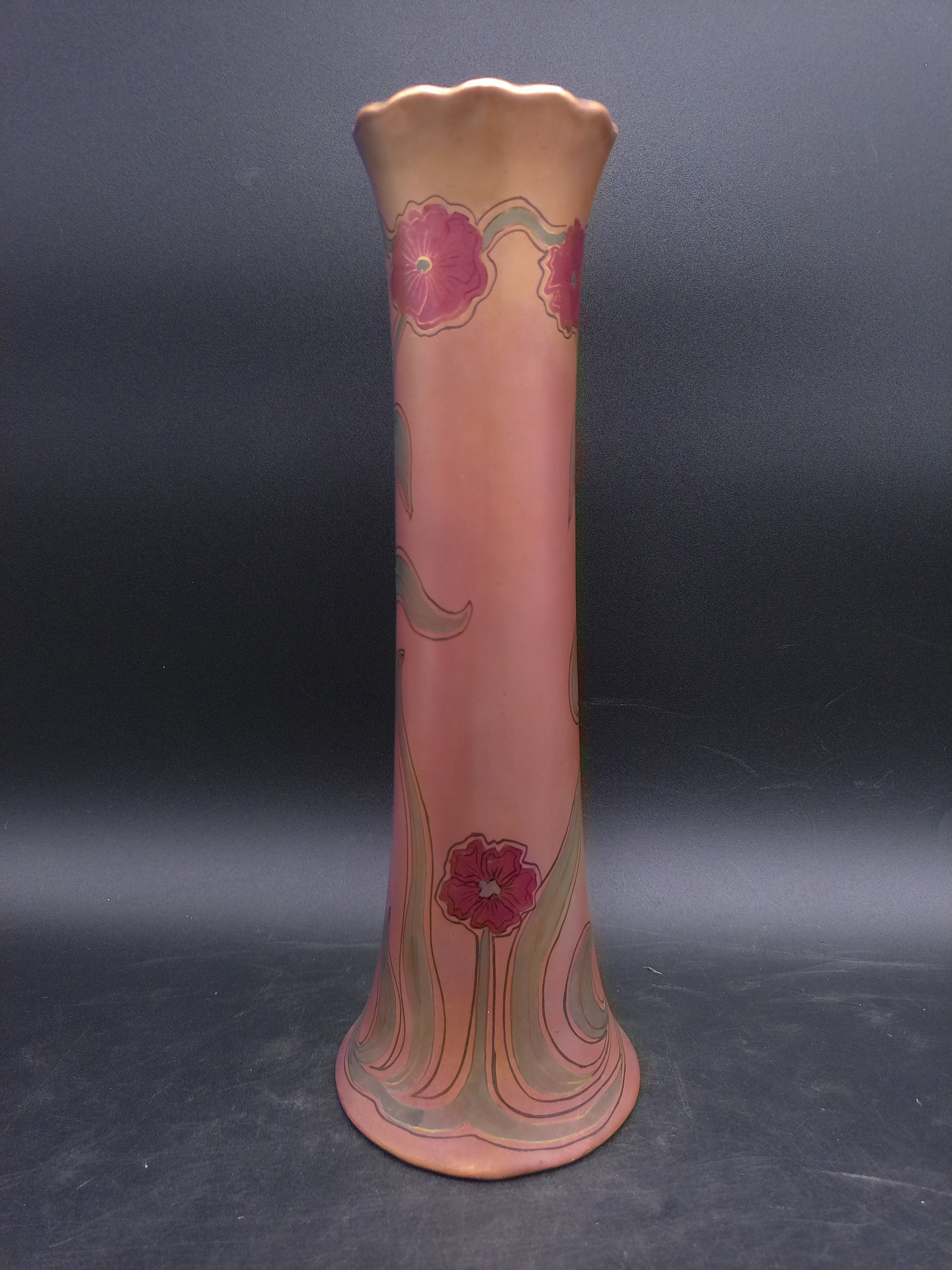 Tall Vase Ceramic with Flower Design Gold edge color Antique