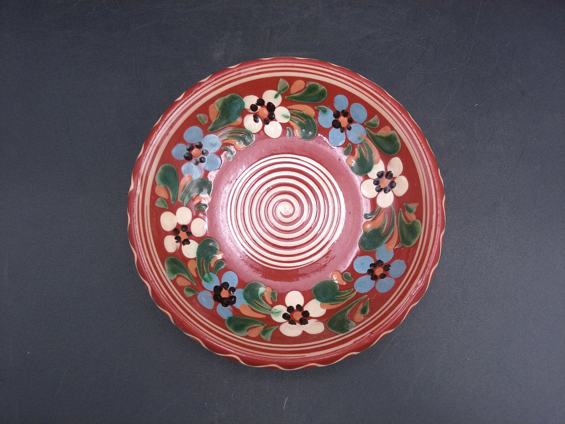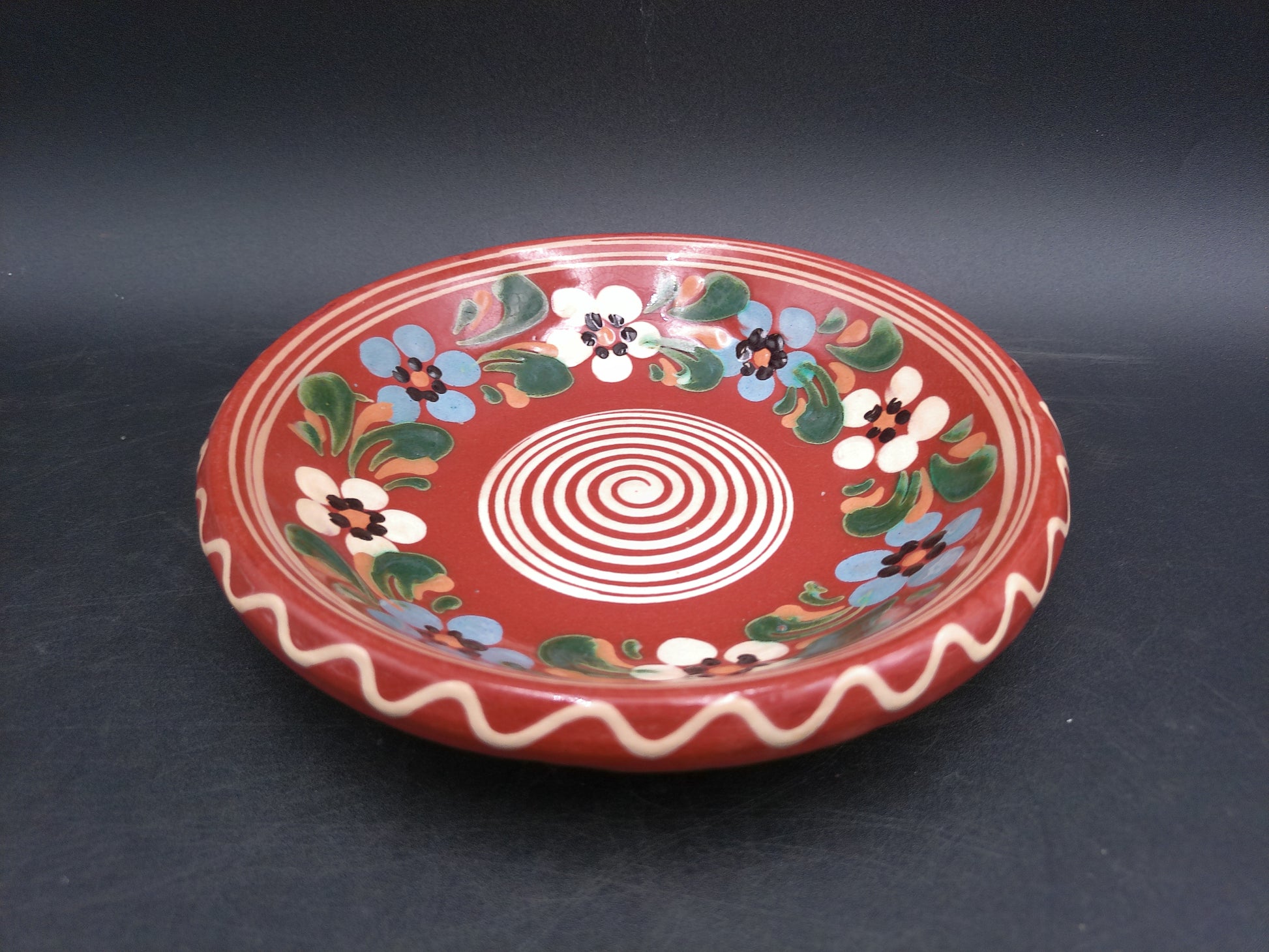 Discover the charm of traditional Hungarian craftsmanship with this clay brown floral plate featuring a captivating spiral design. Handcrafted with care, this folk pottery piece adds rustic elegance to your table while celebrating rich cultural heritage. Perfect for serving or display, it brings warmth and artistry to any setting. Elevate your home décor with a timeless treasure that blends function and tradition beautifully.