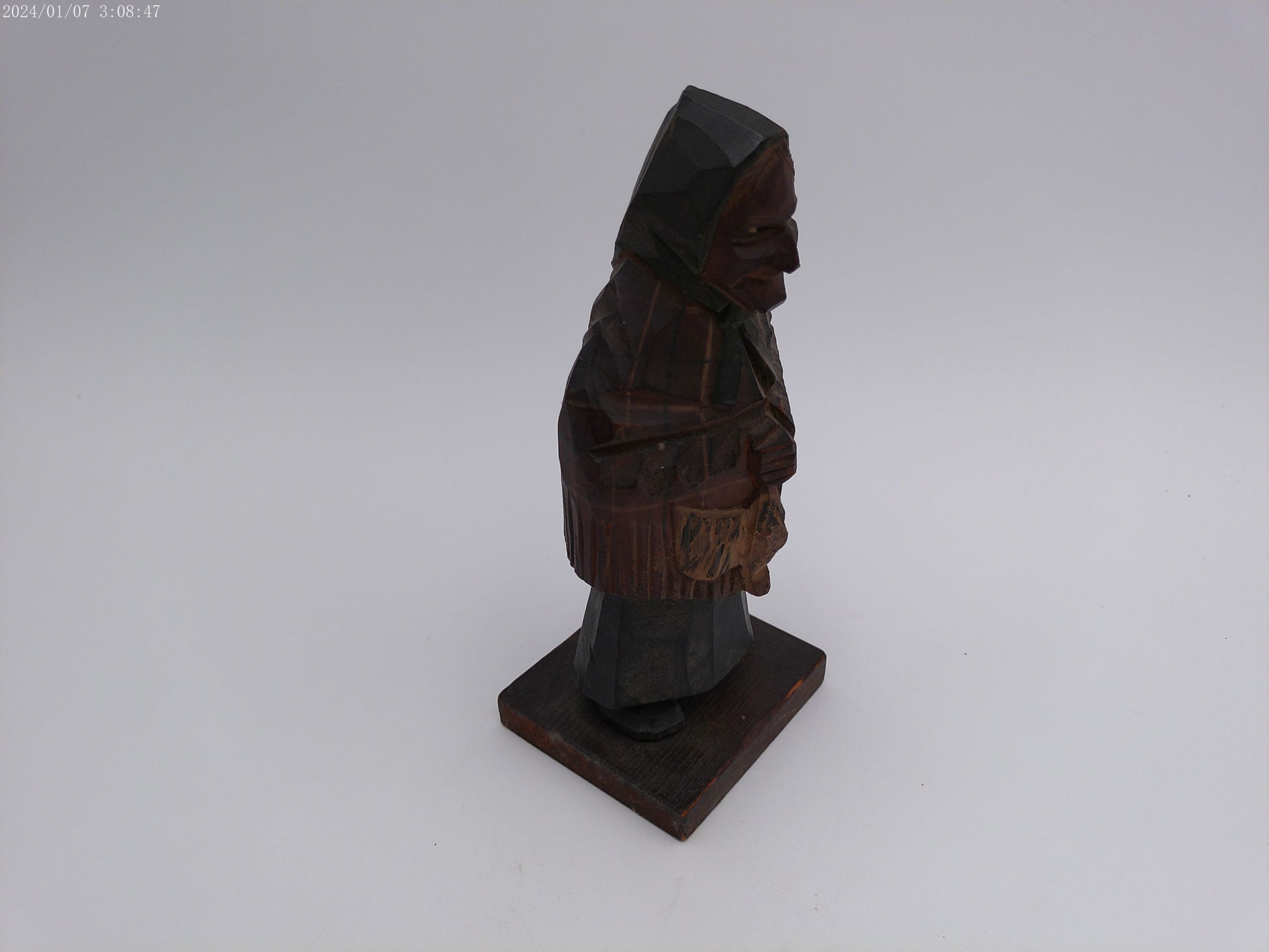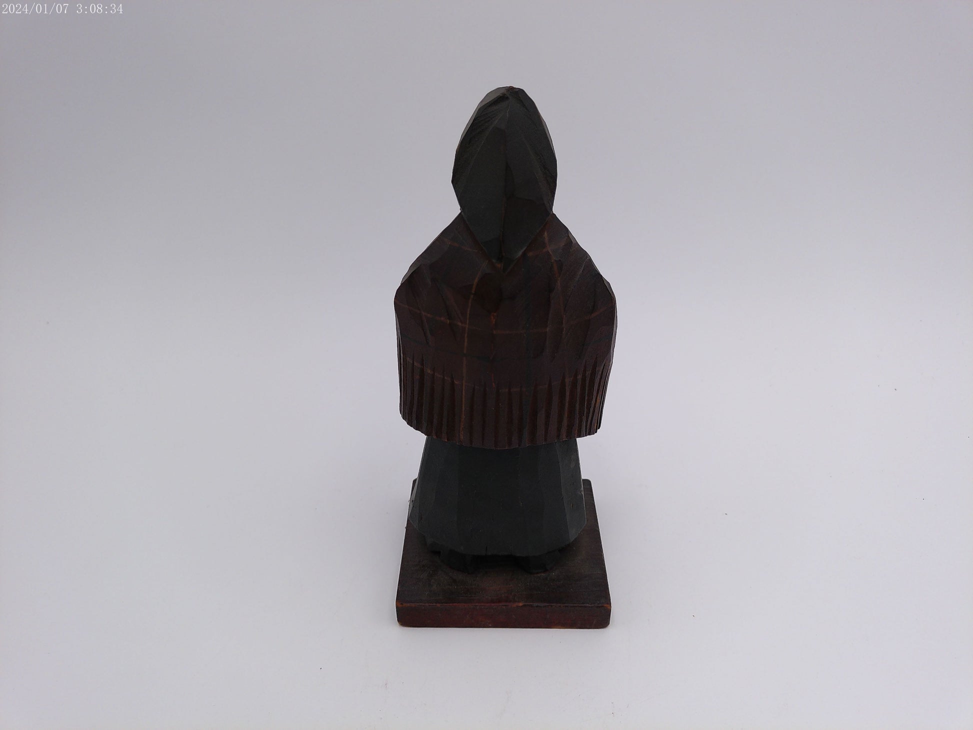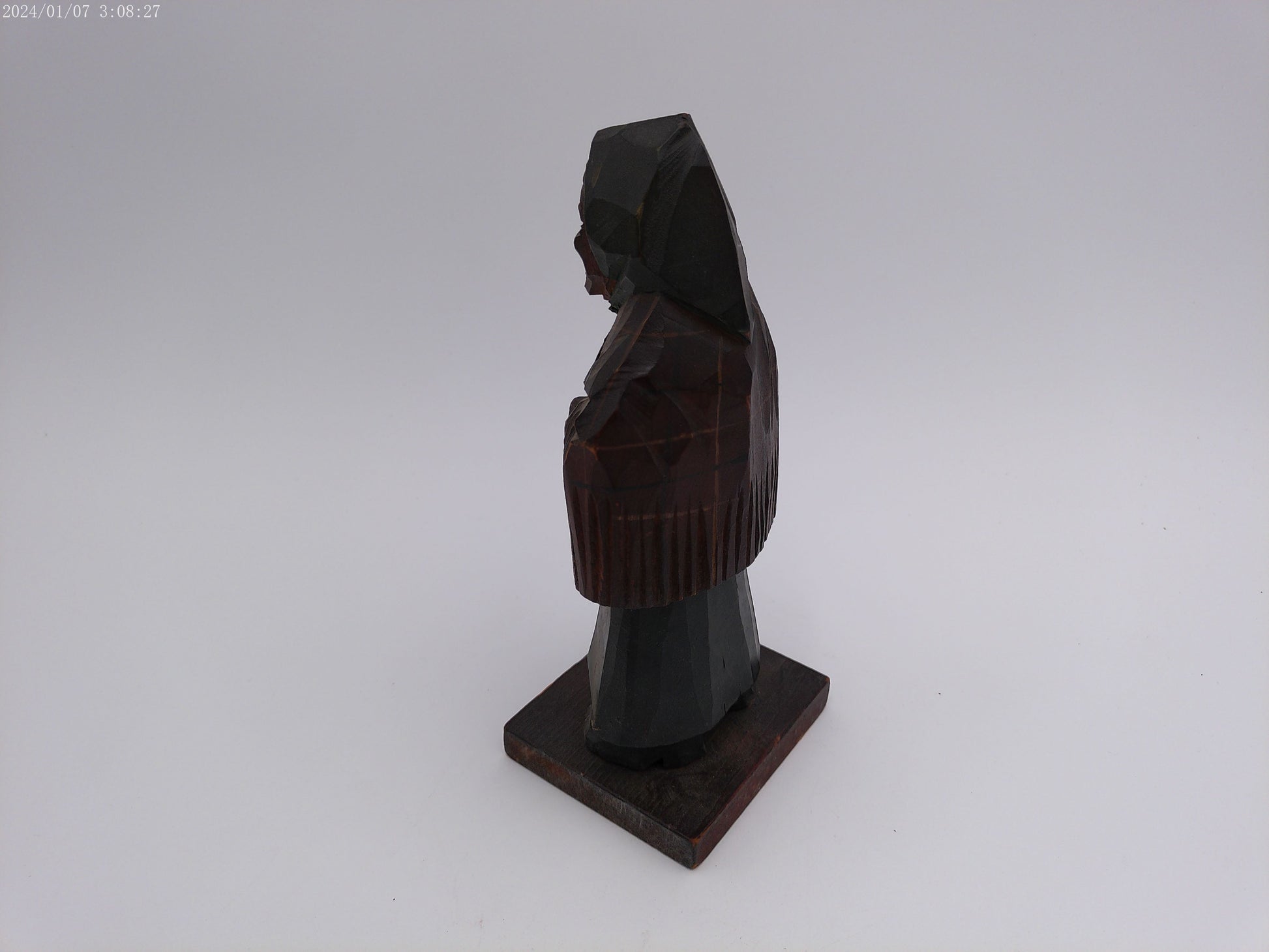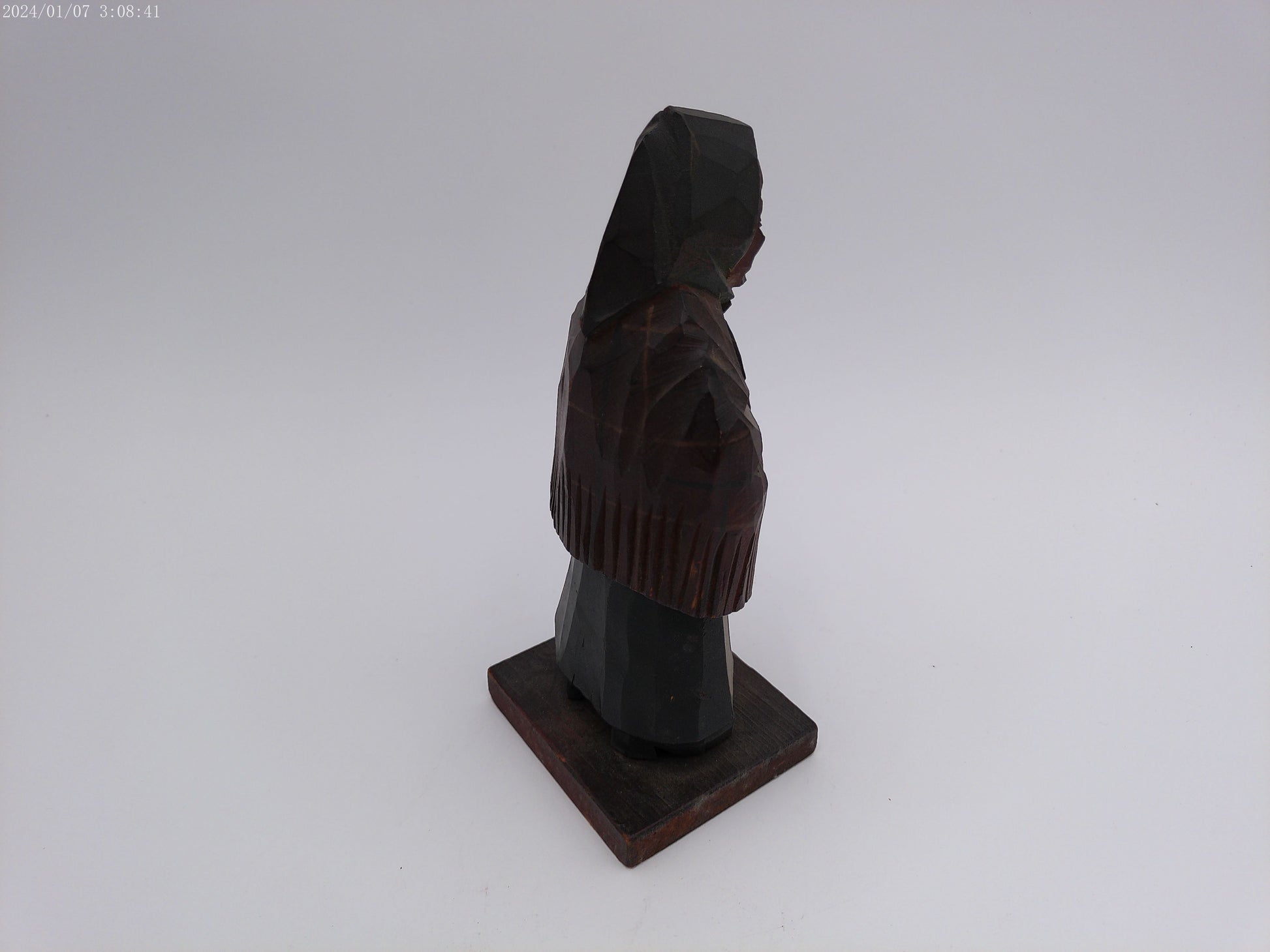 Crafted by hand and signed by a renowned artist, this vintage wood lady is a rare find. Each piece is uniquely carved and adds a touch of elegance to any space.