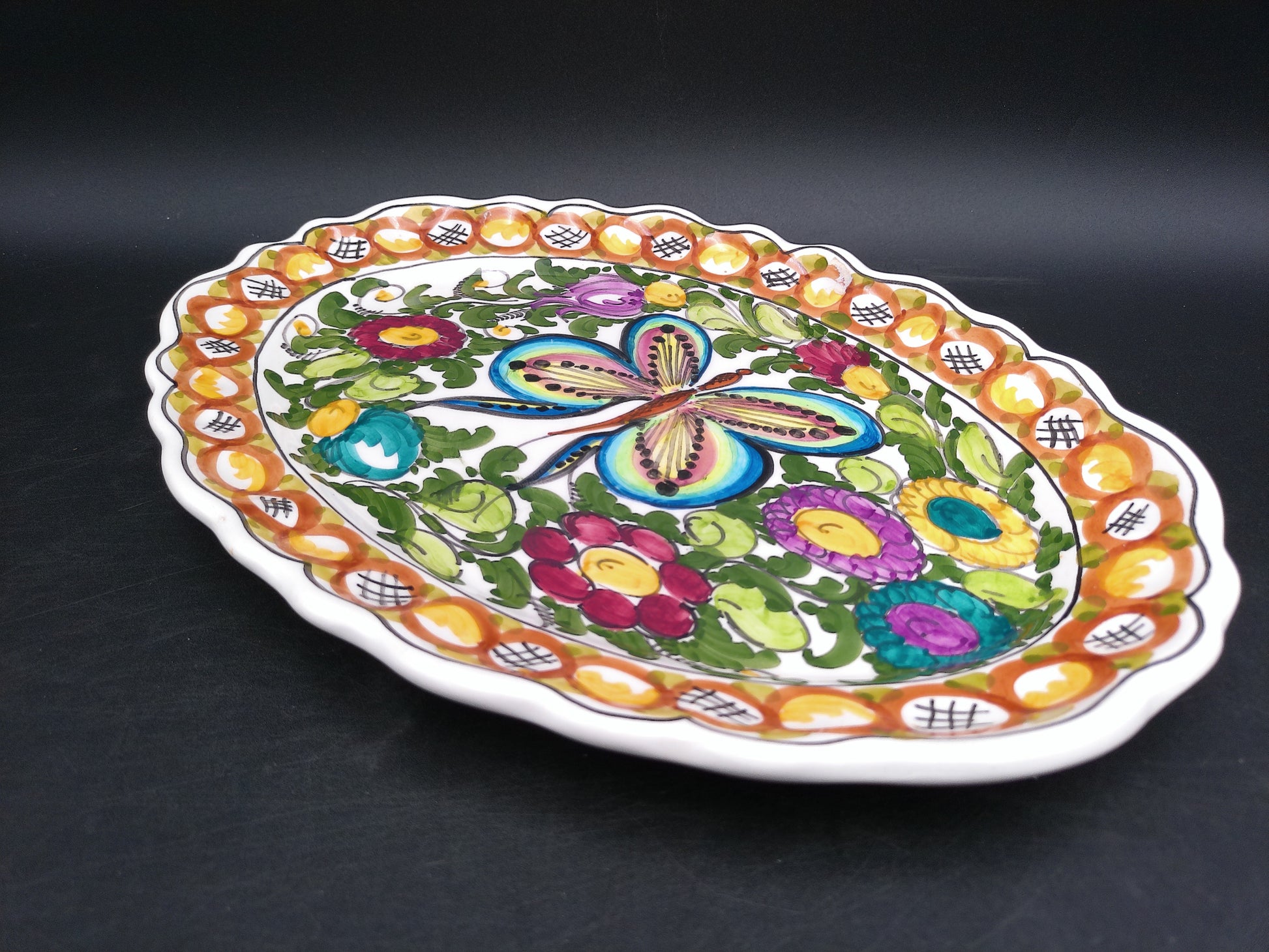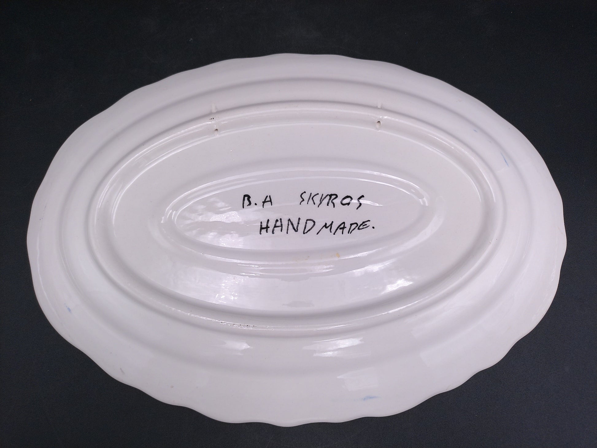 Beautiful Floral Design Oval Platter Hnade Made by B.K Skyros in Greece
