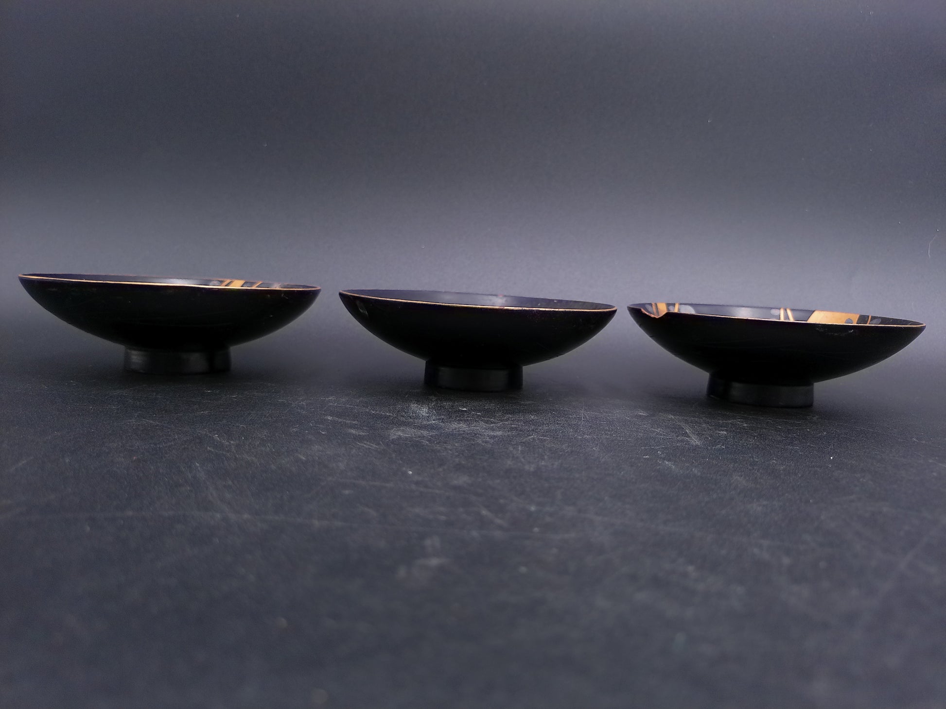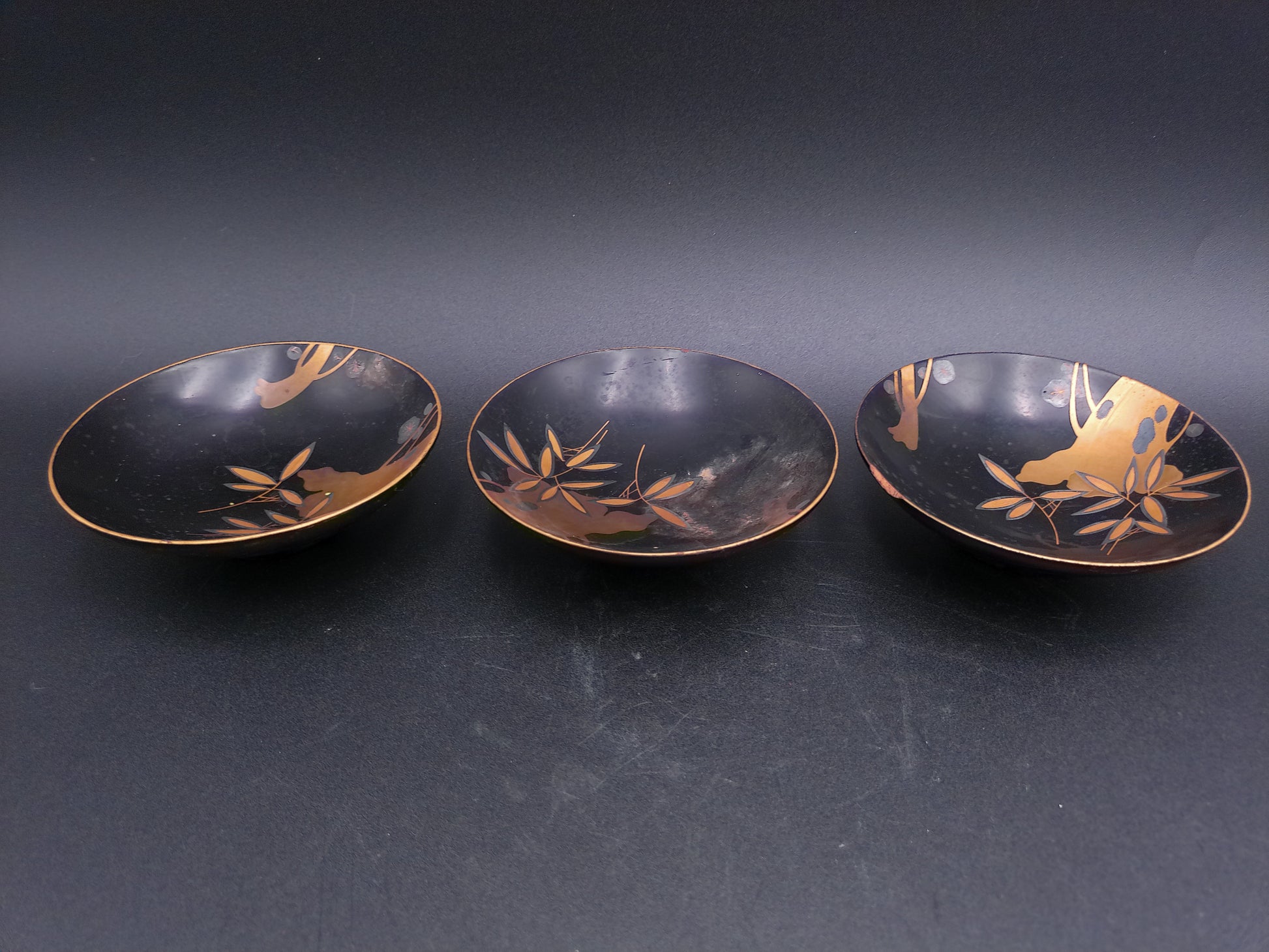 Experience the exquisite craftsmanship of late 1890's Japan with this set of 3 lacquered plates. Each plate is delicately handcrafted with traditional techniques, showcasing the rich history and culture of Japanese art. Enhance your dining experience with these unique and beautiful pieces.