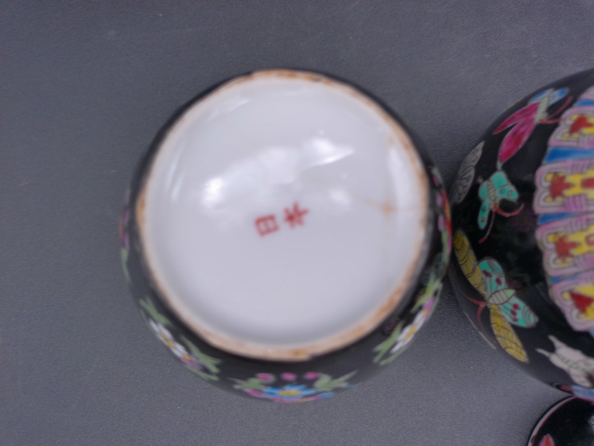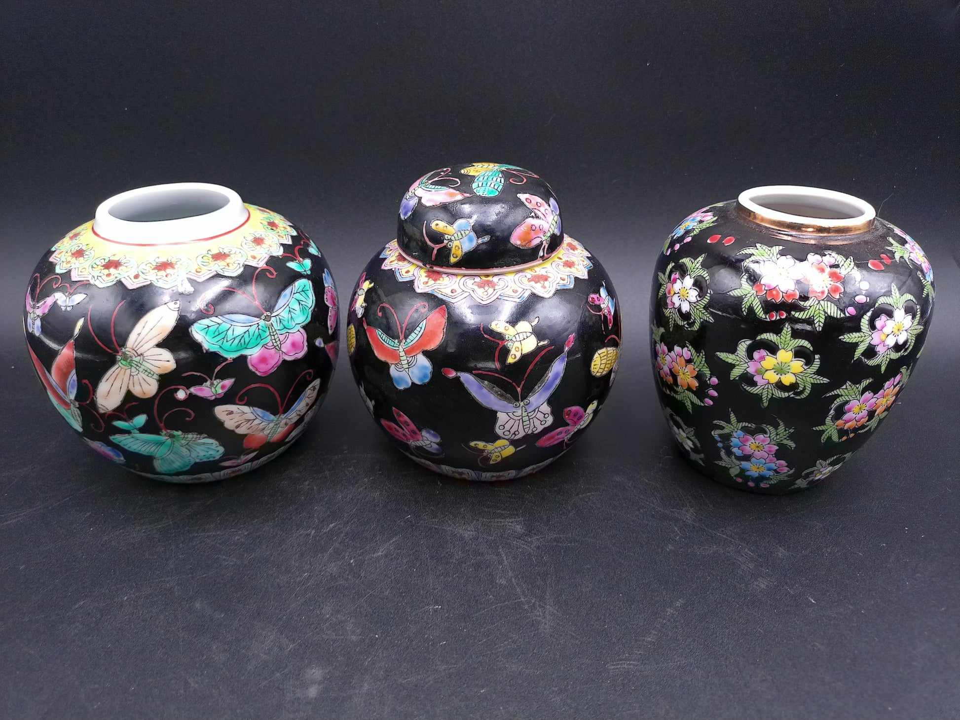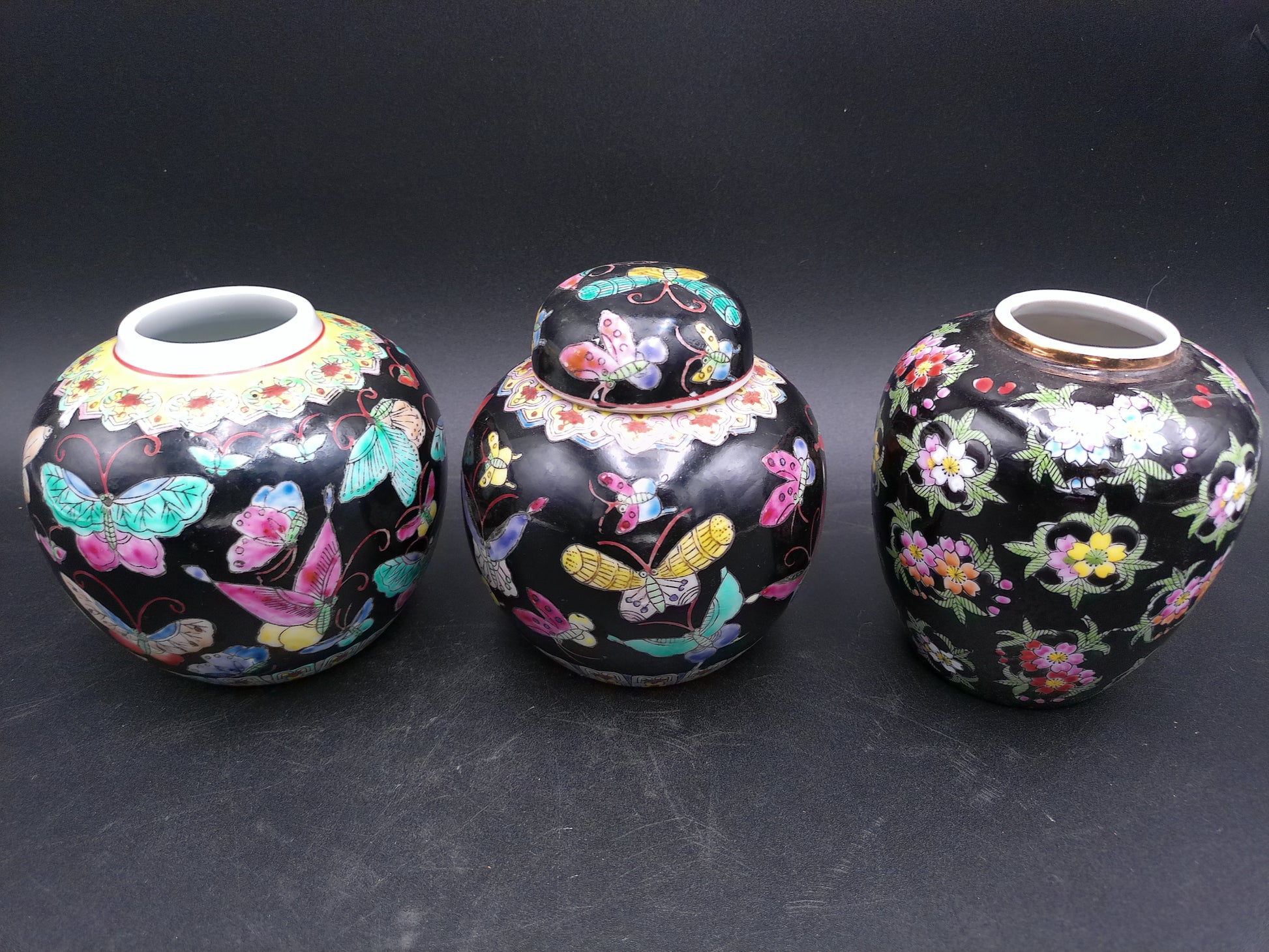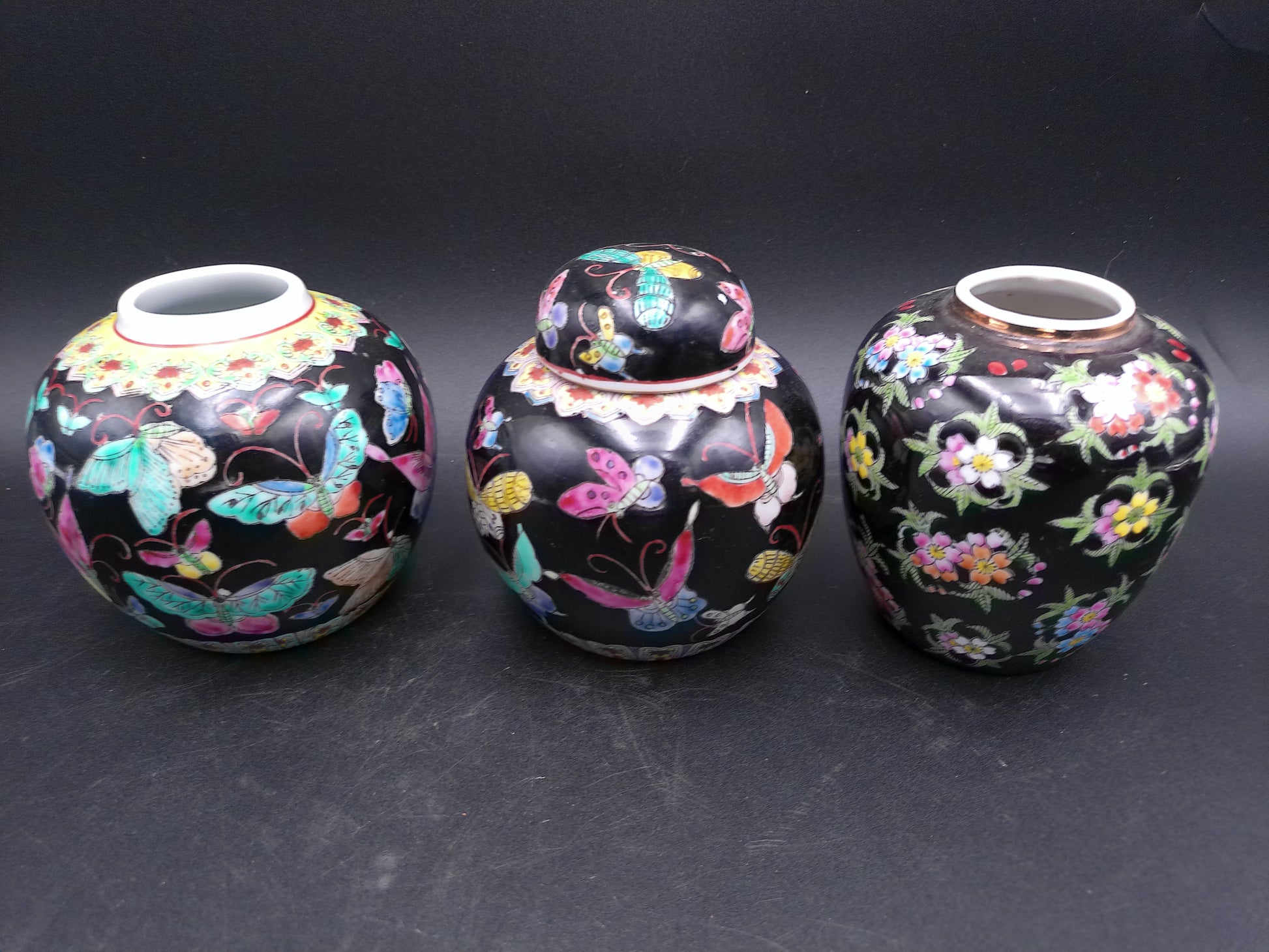 Chinese export ceramic and 1 with top of 3 jiger jar vase butterfly and flower design