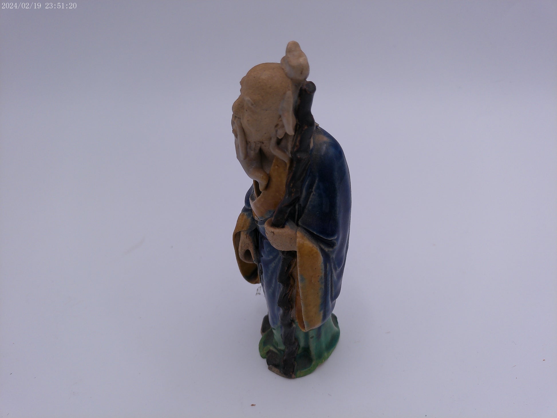 This vintage Chinese Elder Figure statue showcases intricate detailing and a staff, symbolizing wisdom and knowledge. Crafted with high-quality materials, it is a unique and elegant addition to any home or collection. Perfect for showcasing cultural appreciation and adding an air of sophistication to any space.