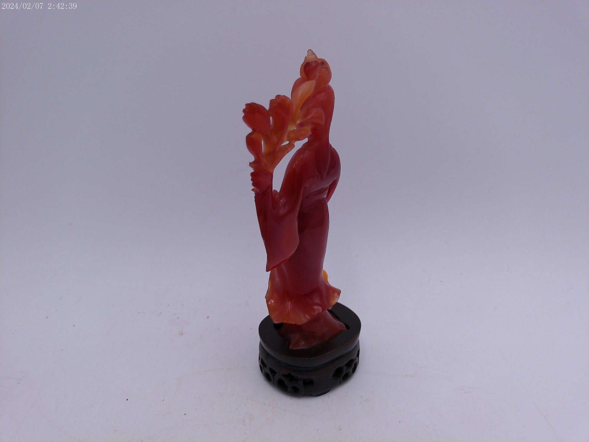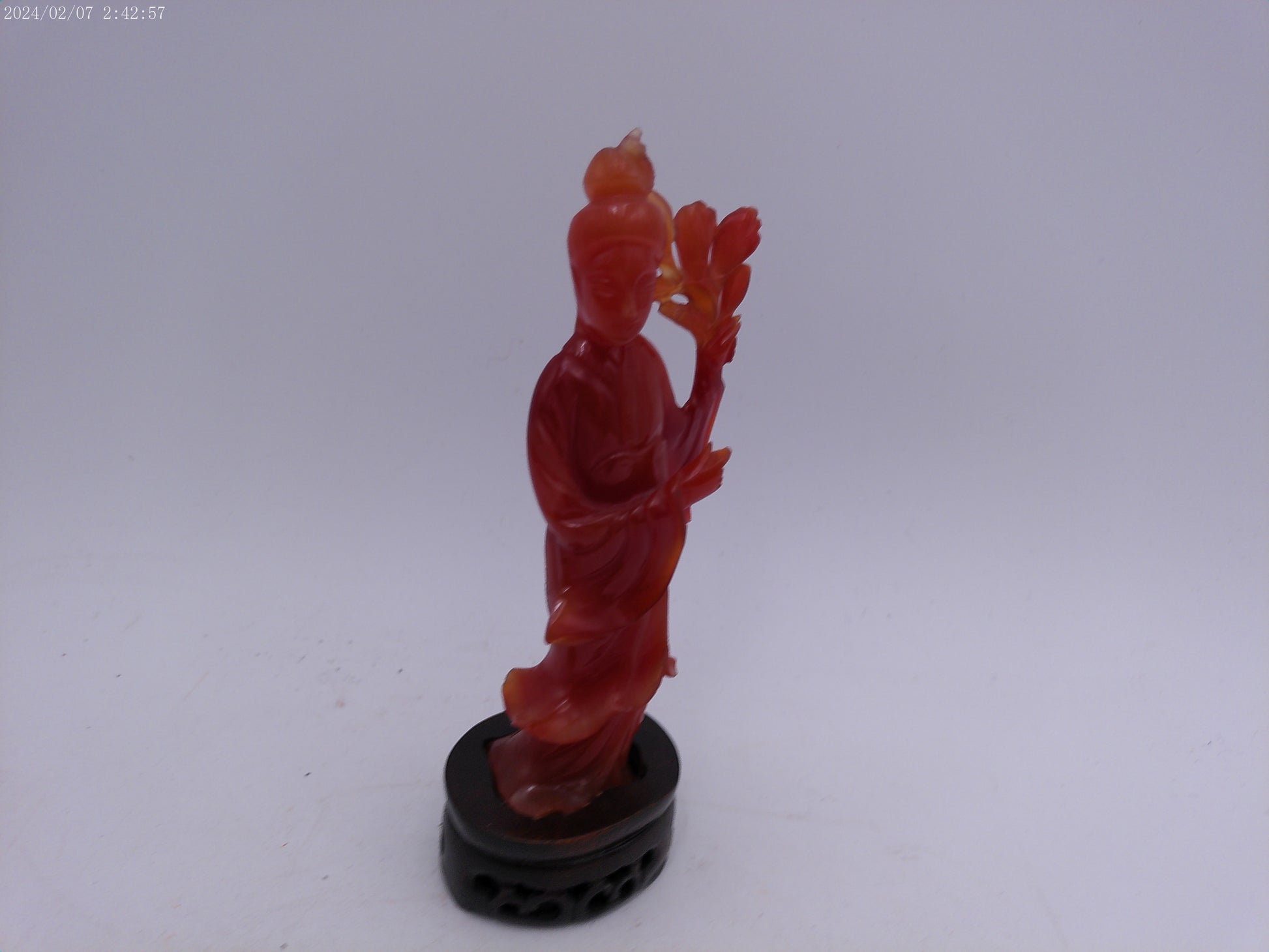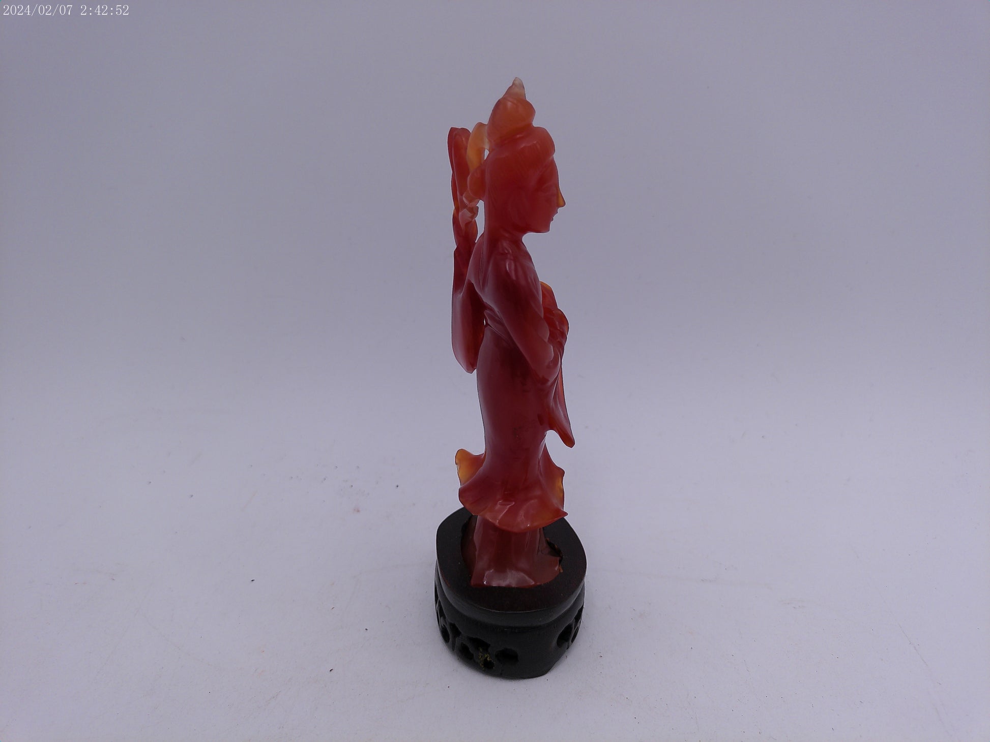 Chinese Red Guanyin Carved Figurine