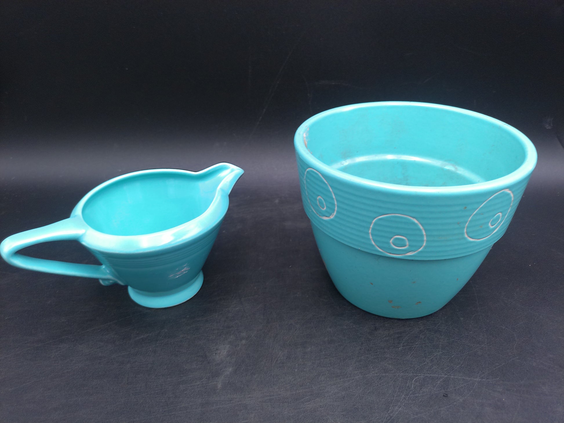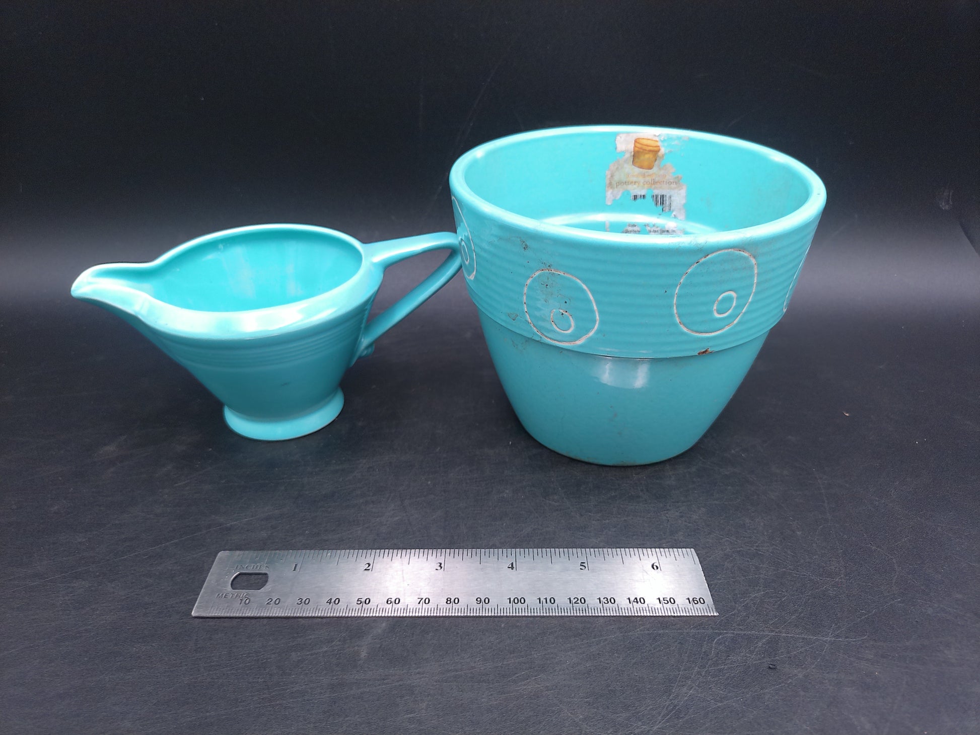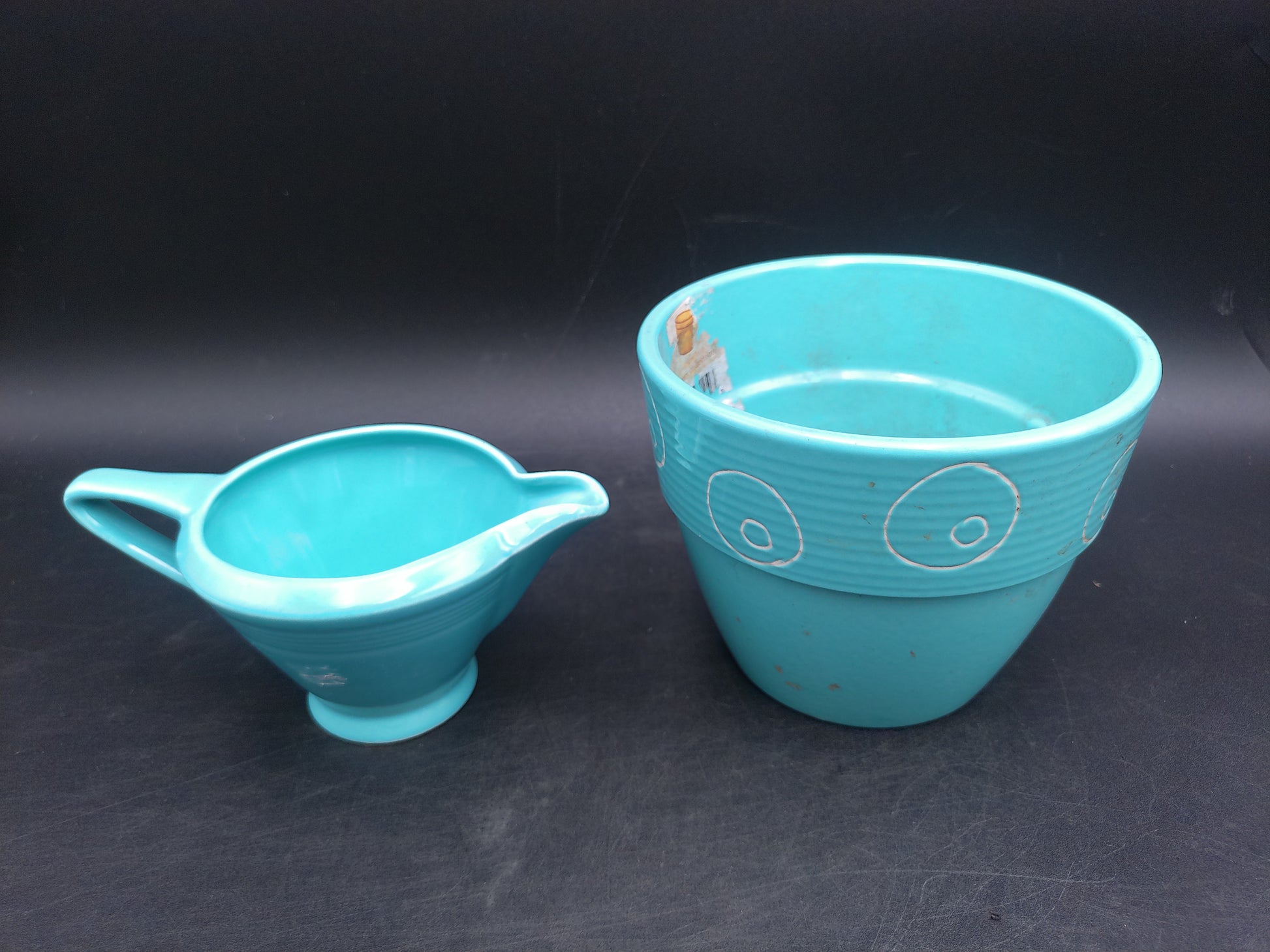 Homer Laughlin Harlequin Aqua Blue Gravy Boat and Cup