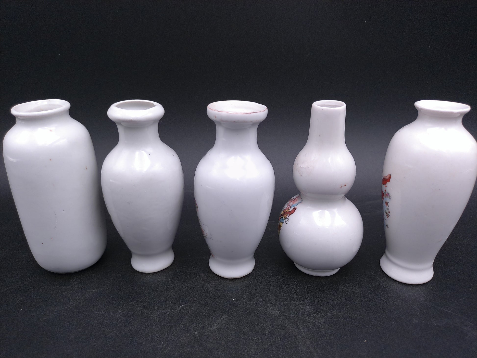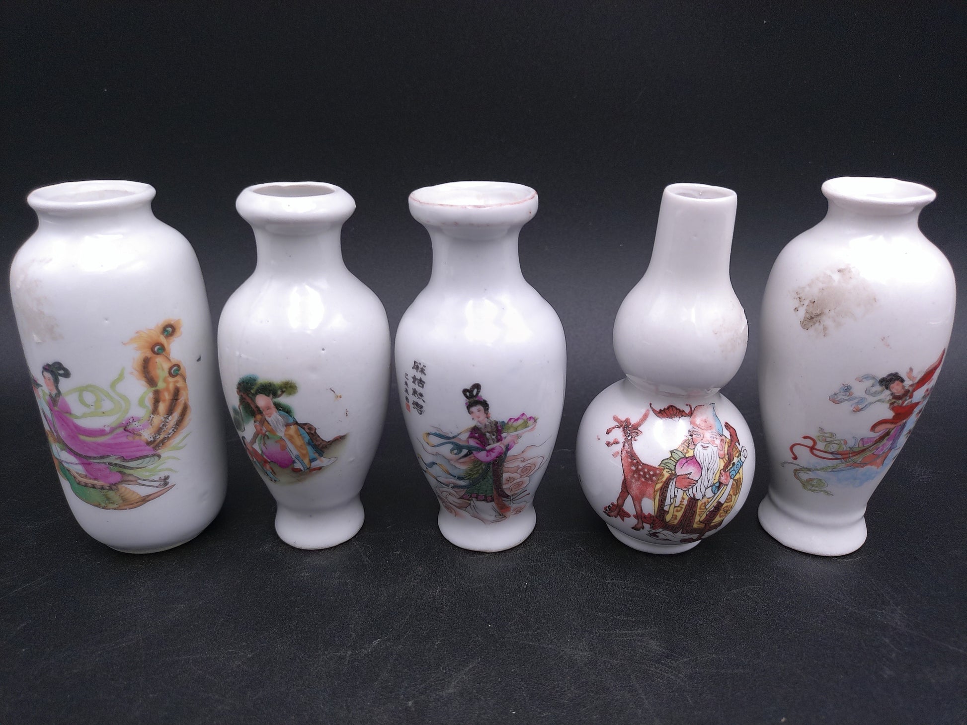Chinese Lot of 5 Vases 1 is santa Oriental Porcelain Vases Hand Painted Vintage