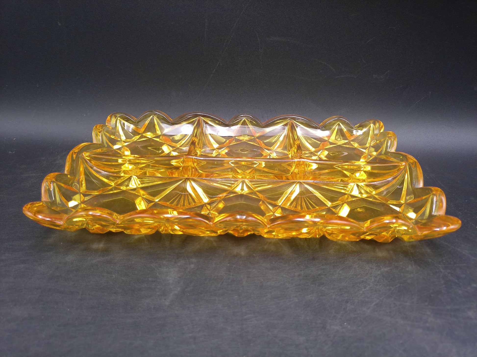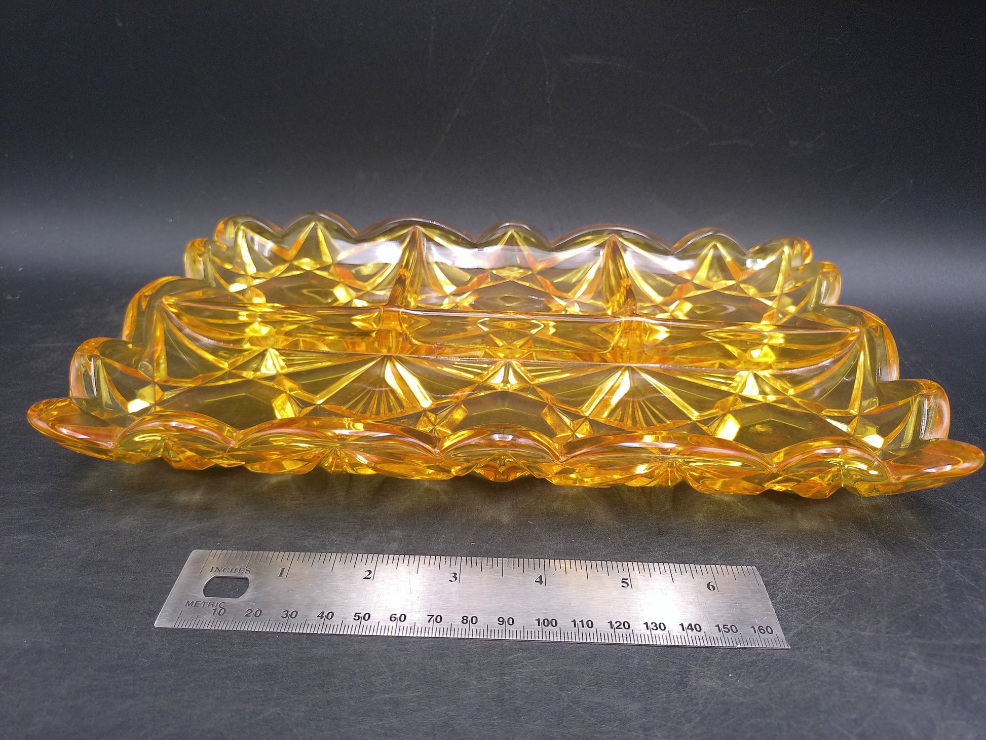 Glass Dish Divided chips and dip Trays Yellow dish 12x8x1.5