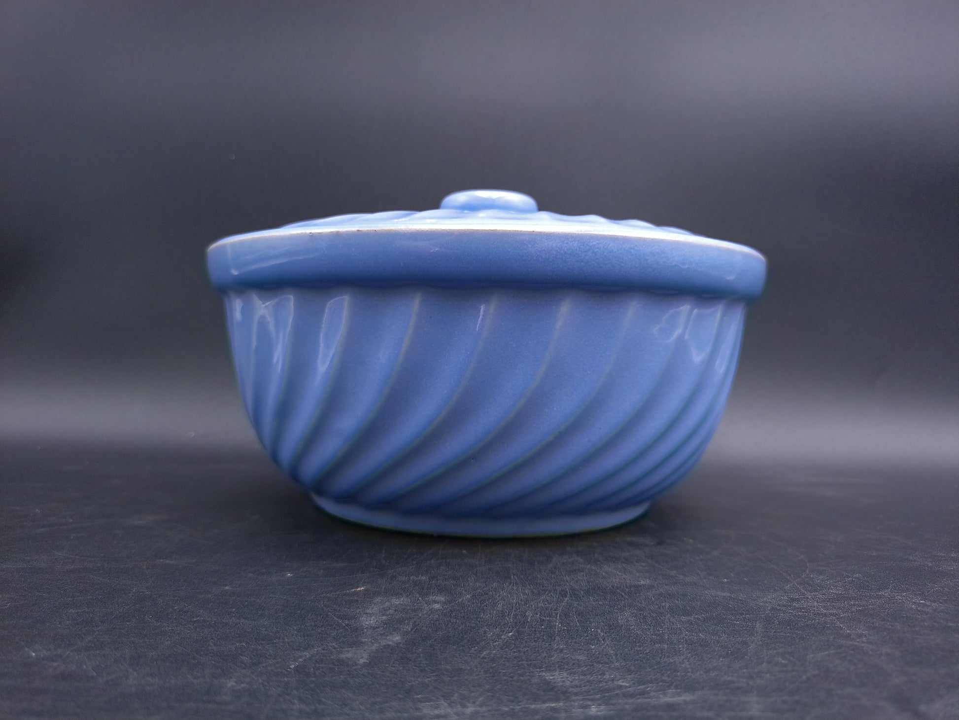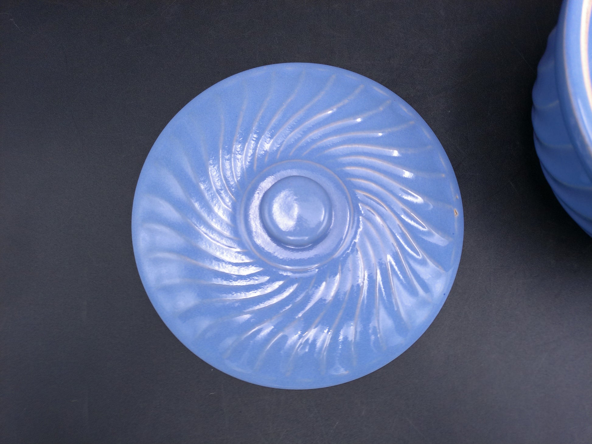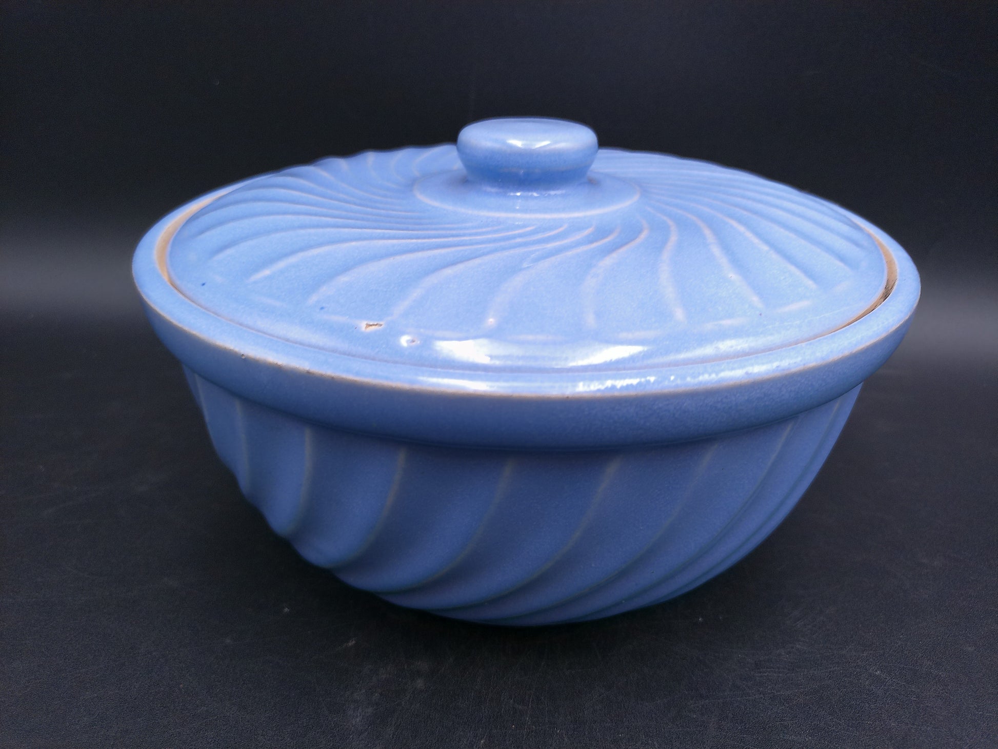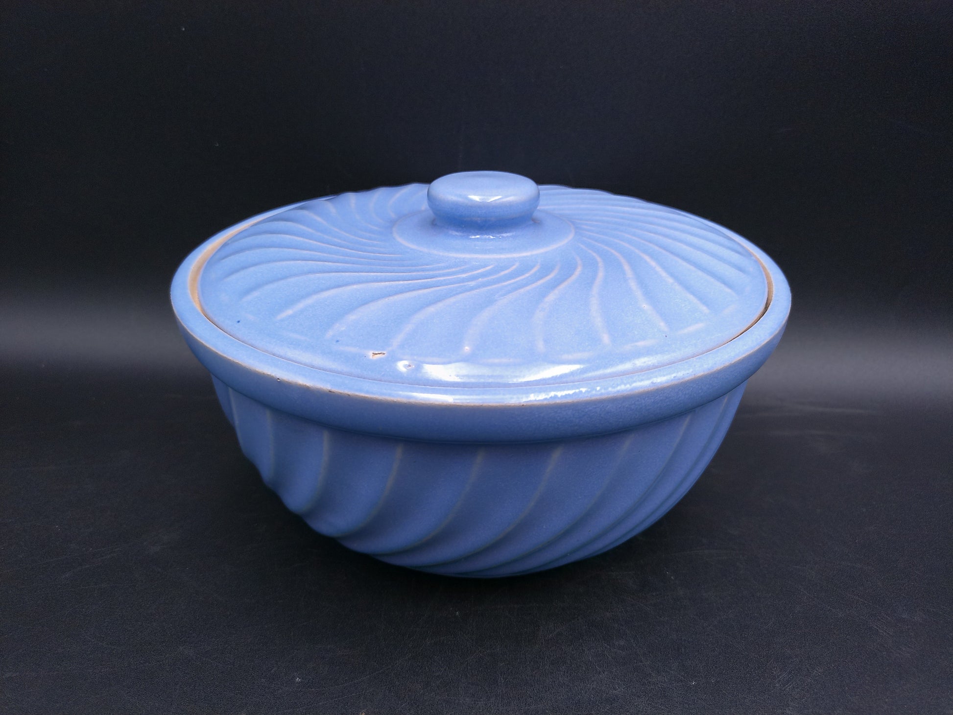 Crock Casserole Baking Dish with Lid Swirl Baby Blue ovenware Made in USA