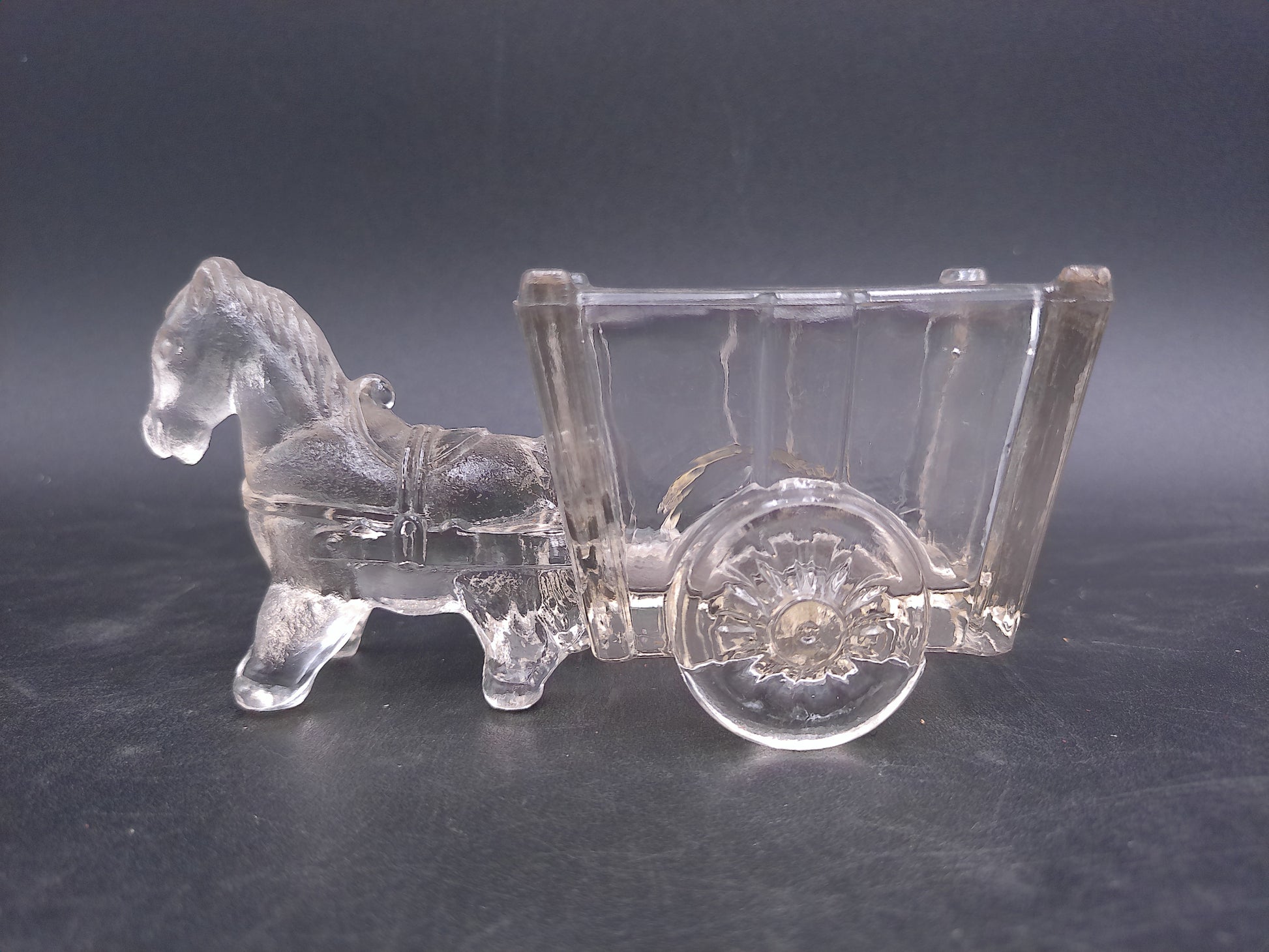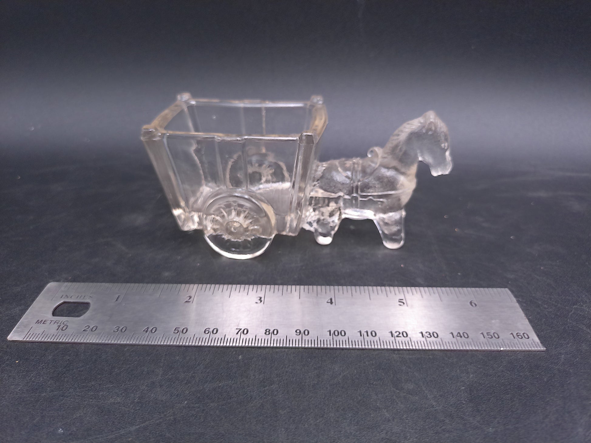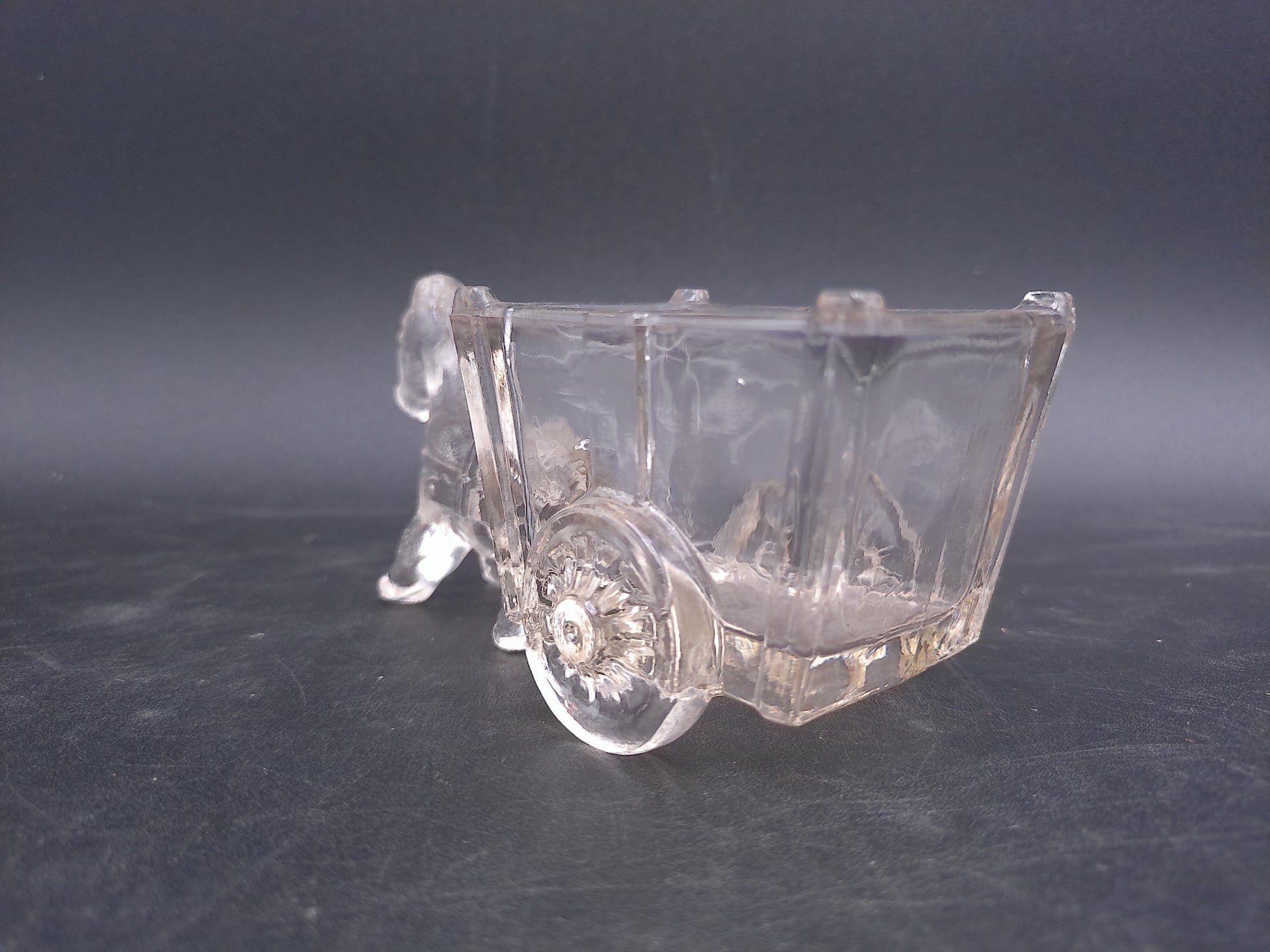 Glass Donkey with Cart Candy Dish 8" L x 4" H