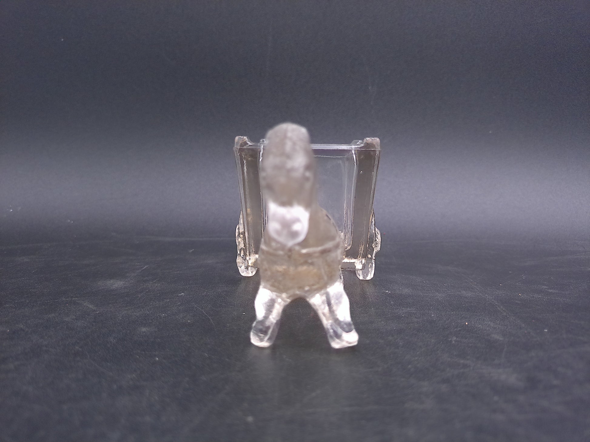 Charm your guests with this delightful glass donkey pulling a cart candy dish, measuring a perfect 8" long by 4" high. This whimsical conversation piece serves both as a functional candy or trinket holder and a captivating decorative accent. The transparent glass construction catches light beautifully, while the unique donkey design adds character to any room. An irresistible blend of nostalgia and practicality that will enchant collectors and visitors alike.