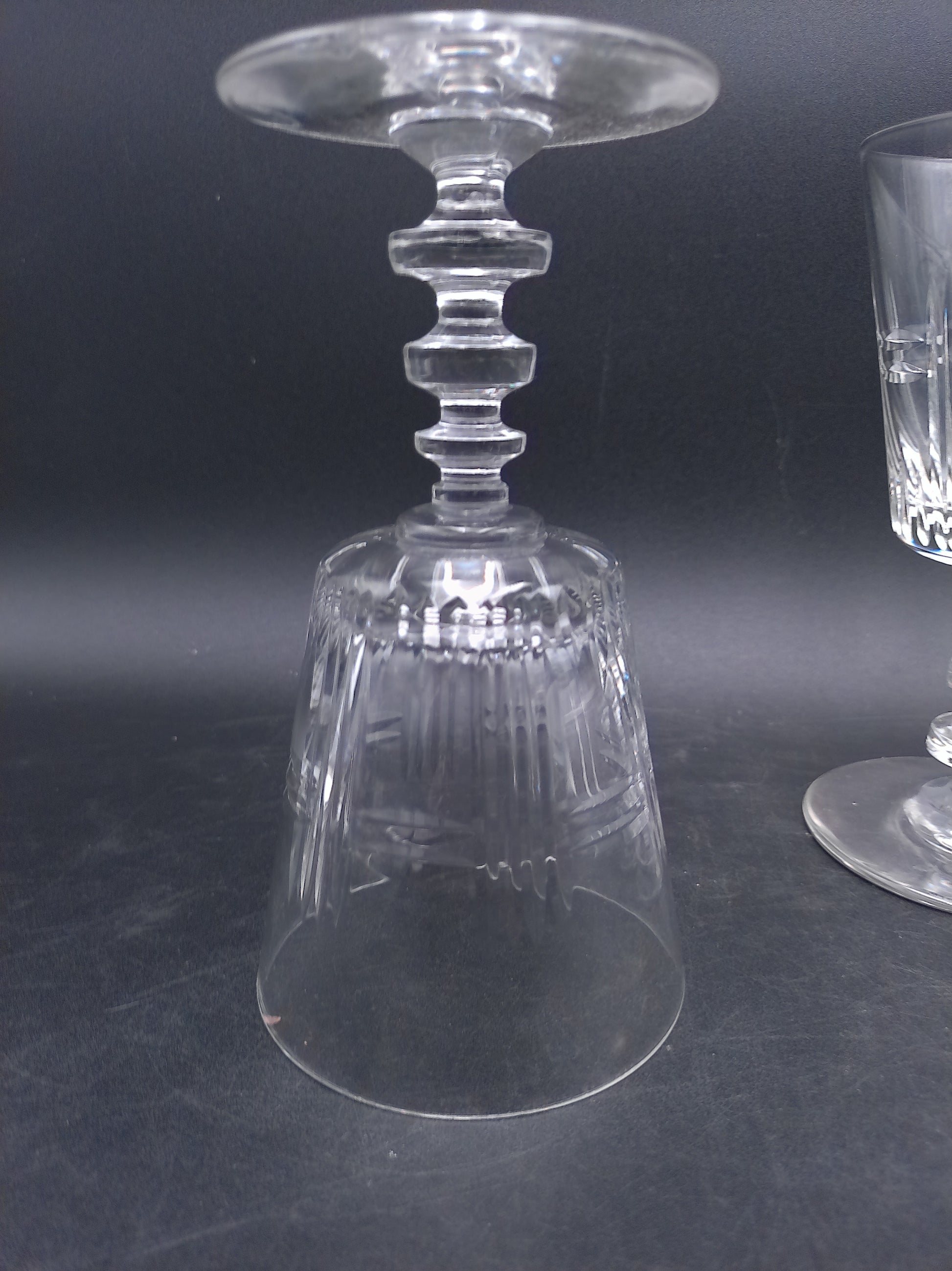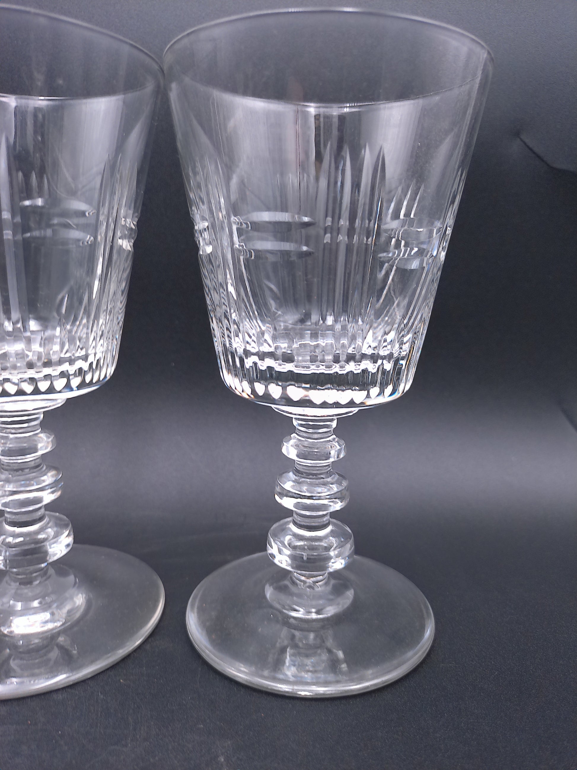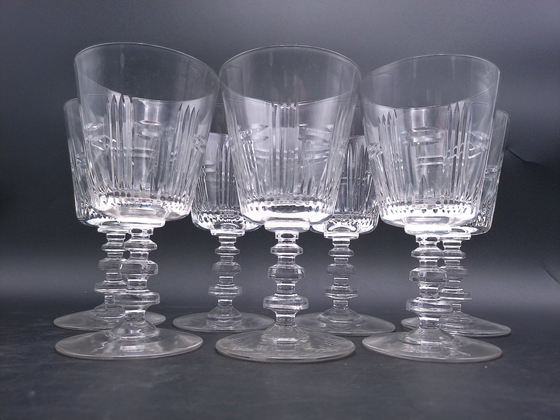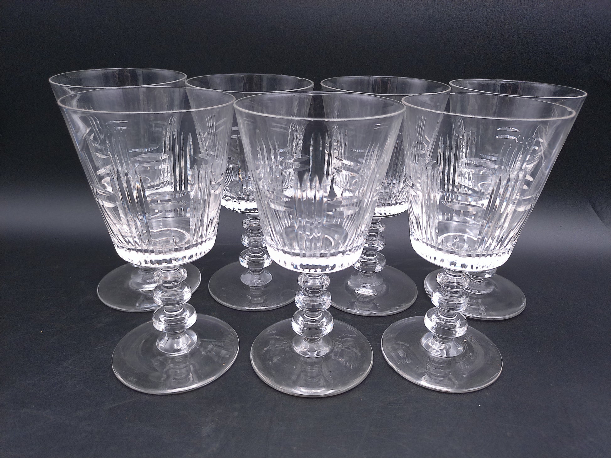 Transport your dining experience to a bygone era with these magnificent 1950s crystal cut water goblets. This complete set of 6 features stunning precision cuts that create dazzling light reflections with every turn. The substantial stems and classic silhouette exude mid-century elegance while providing the perfect vessel for water, wine, or cocktails. Don't miss this opportunity to own a piece of crystalline history that will elevate any table setting from ordinary to extraordinary.