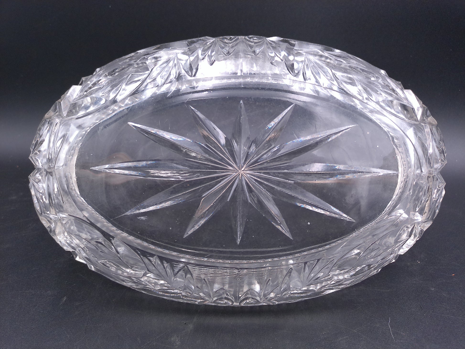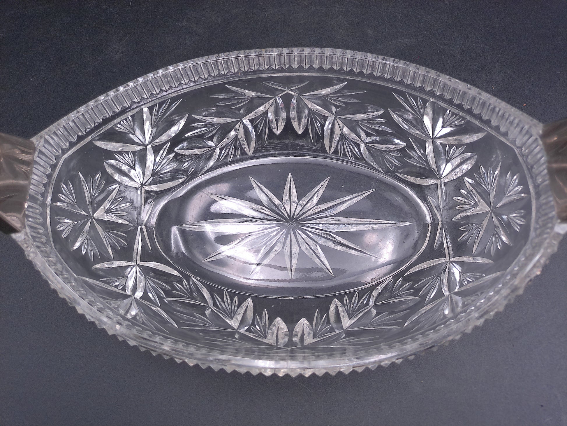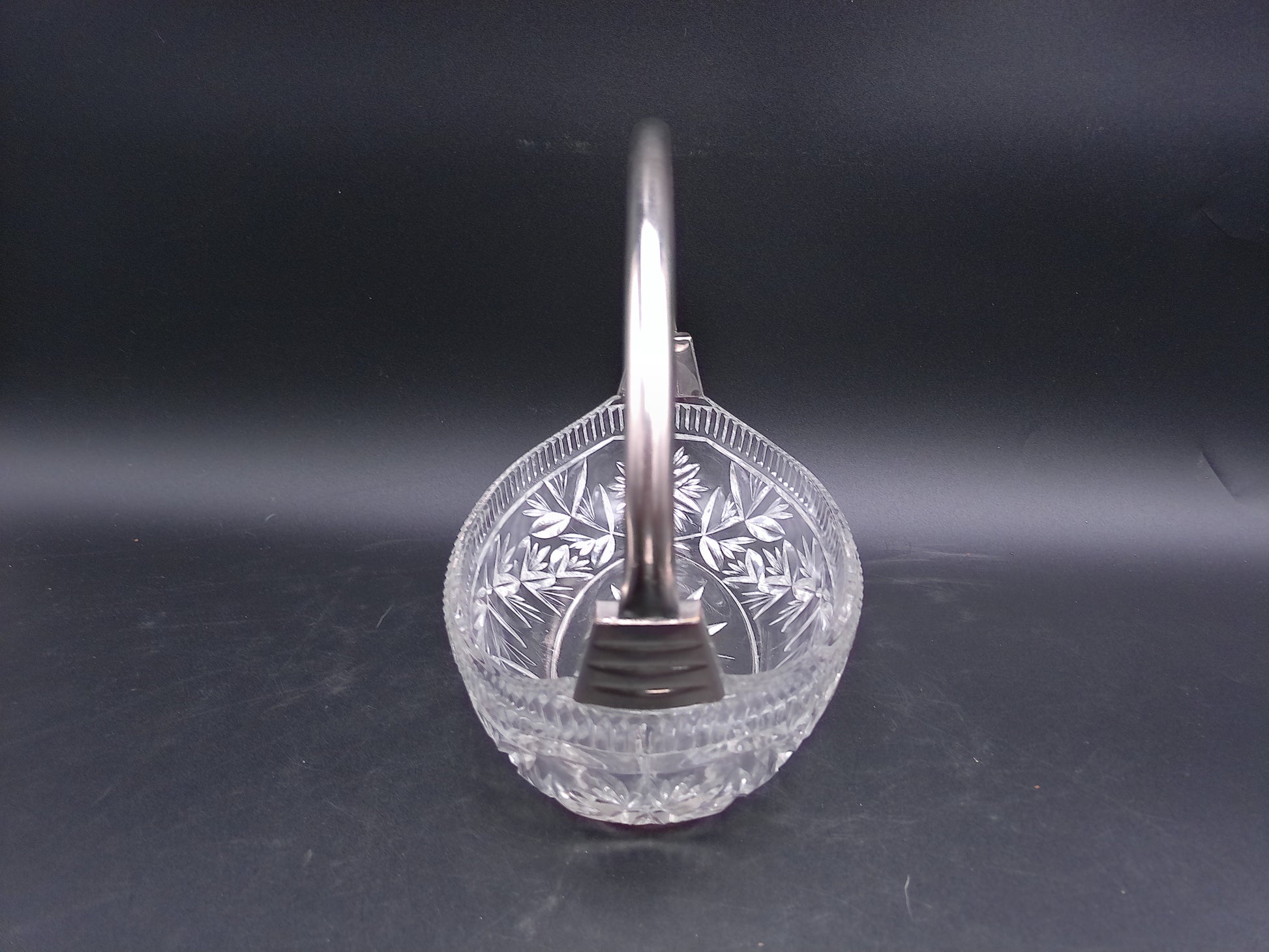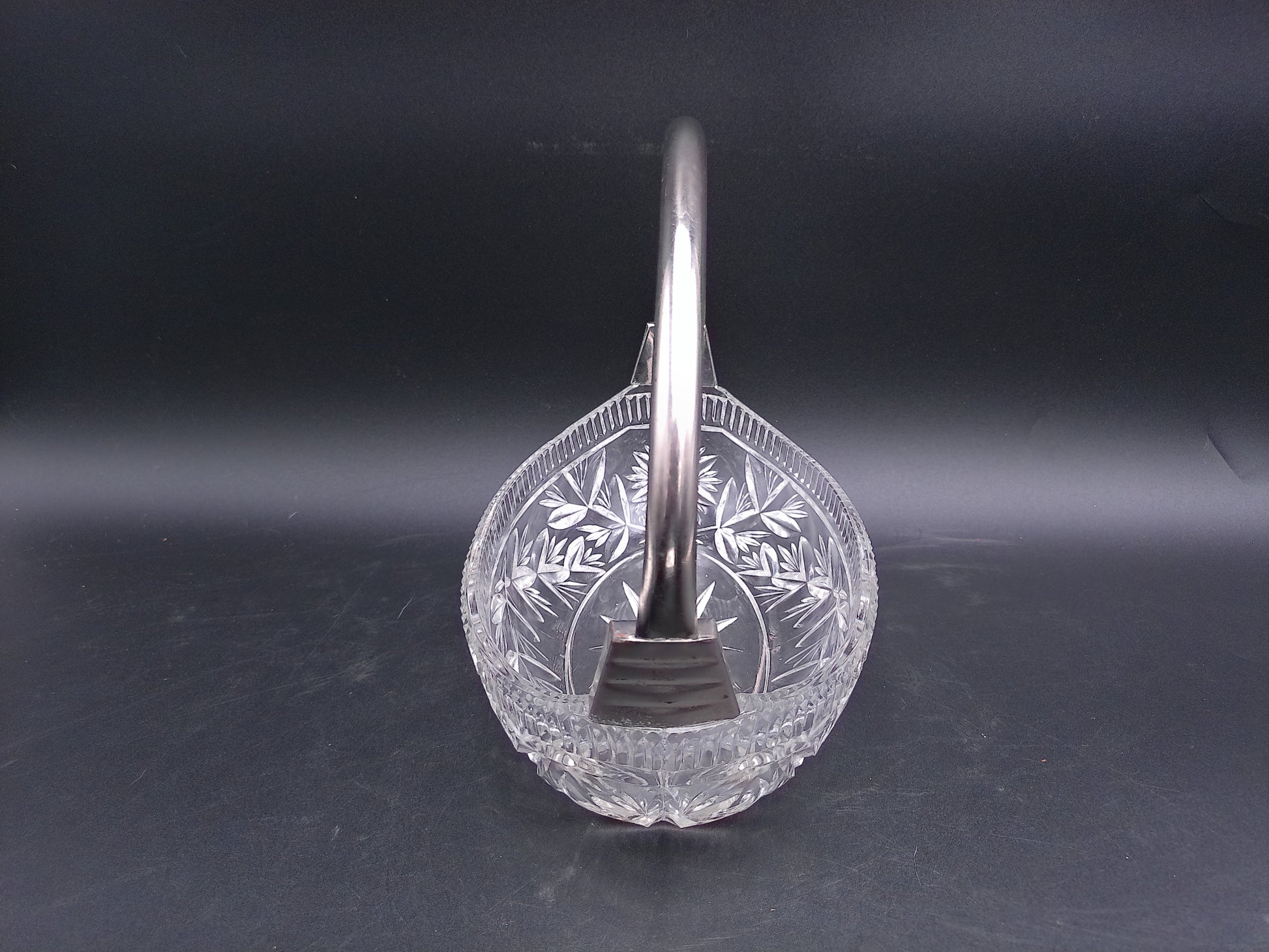 Heavy Crystal Glass Basket Bowl with Silver Coloured Metal Handle