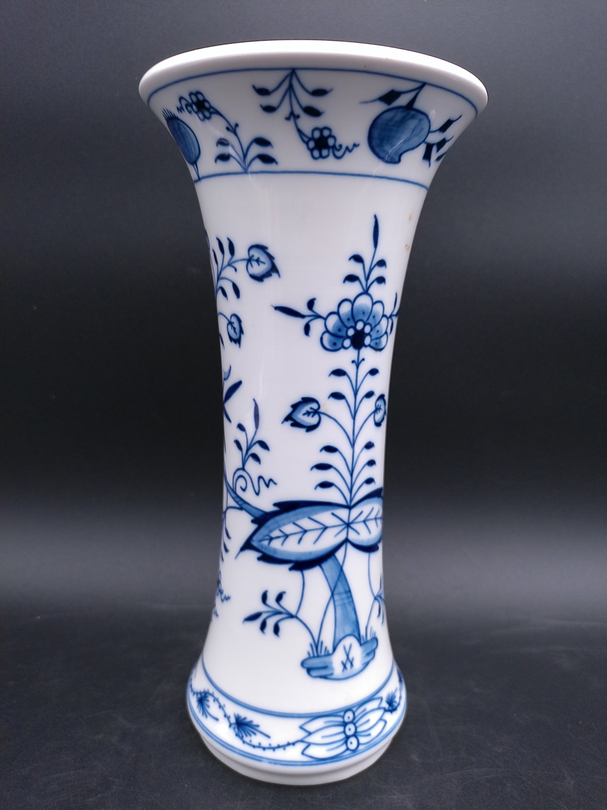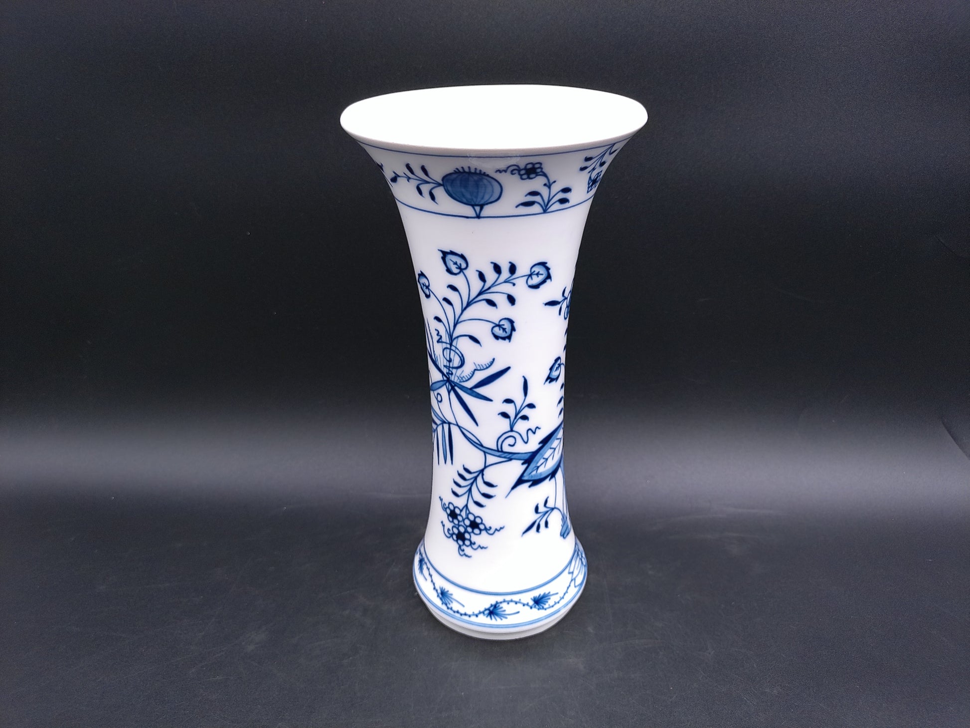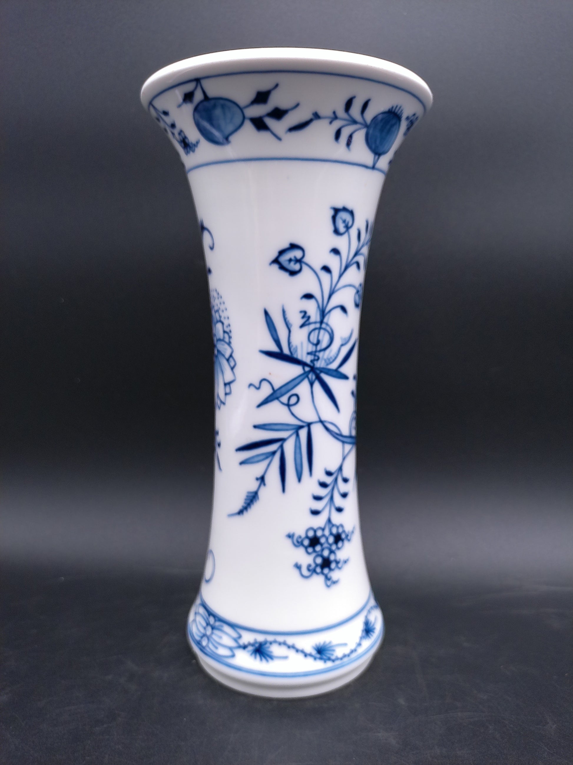 Meissen Blue Onion Vase "Neuer Ausschnitt" white rim H 25 cm