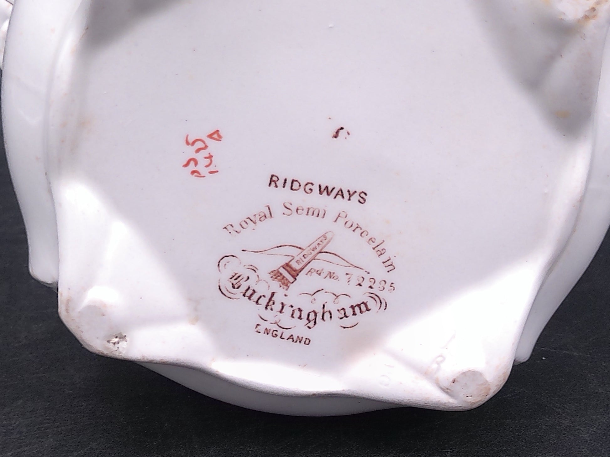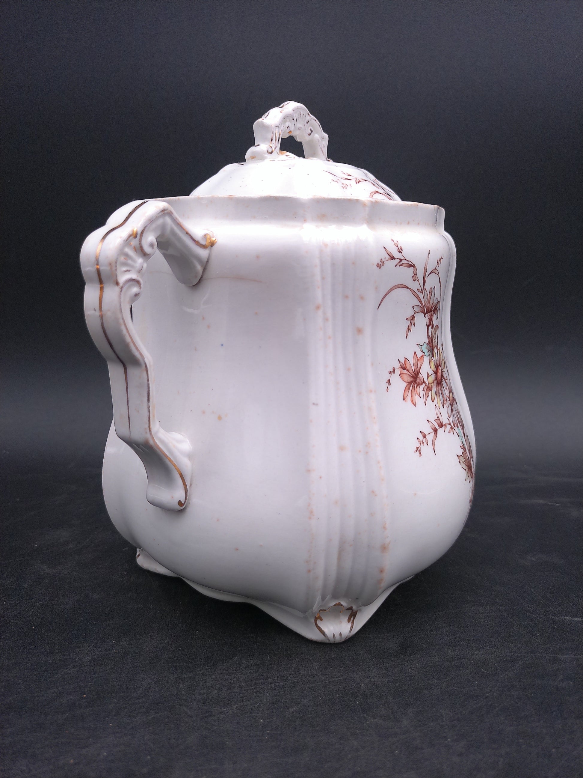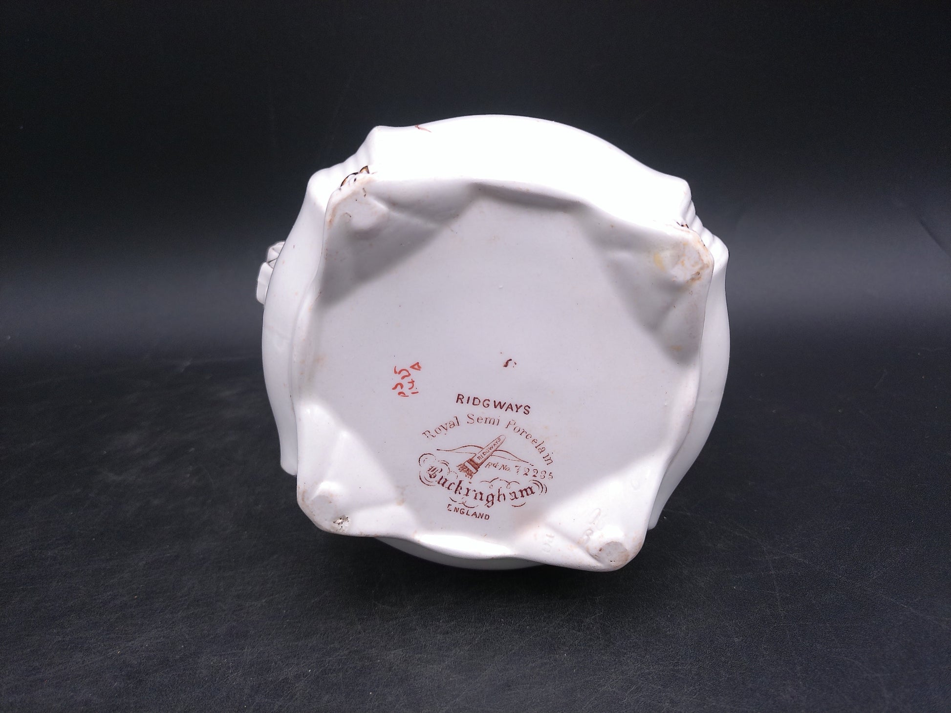 Elevate your collection with the Ridgways Royal Sem Porcelain Buckingham England Pot, featuring an elegant floral design and a refined gold edge. This exquisite piece combines timeless craftsmanship with delicate artistry, making it perfect for display or special occasions. Its classic style adds a touch of sophistication to any setting, reflecting the heritage of English porcelain excellence.