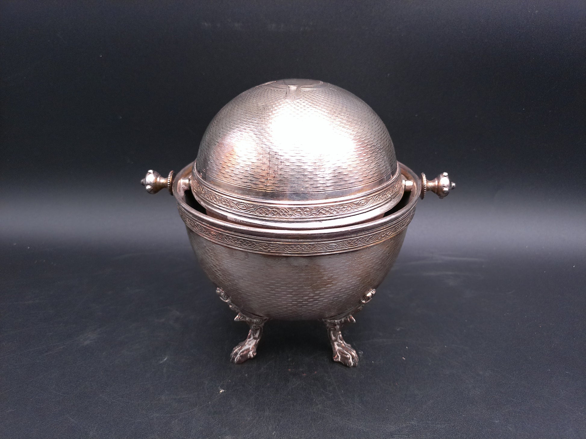 Silver Plate Dome Roll Top Butter Dish Caviar Made in England Patina Rare