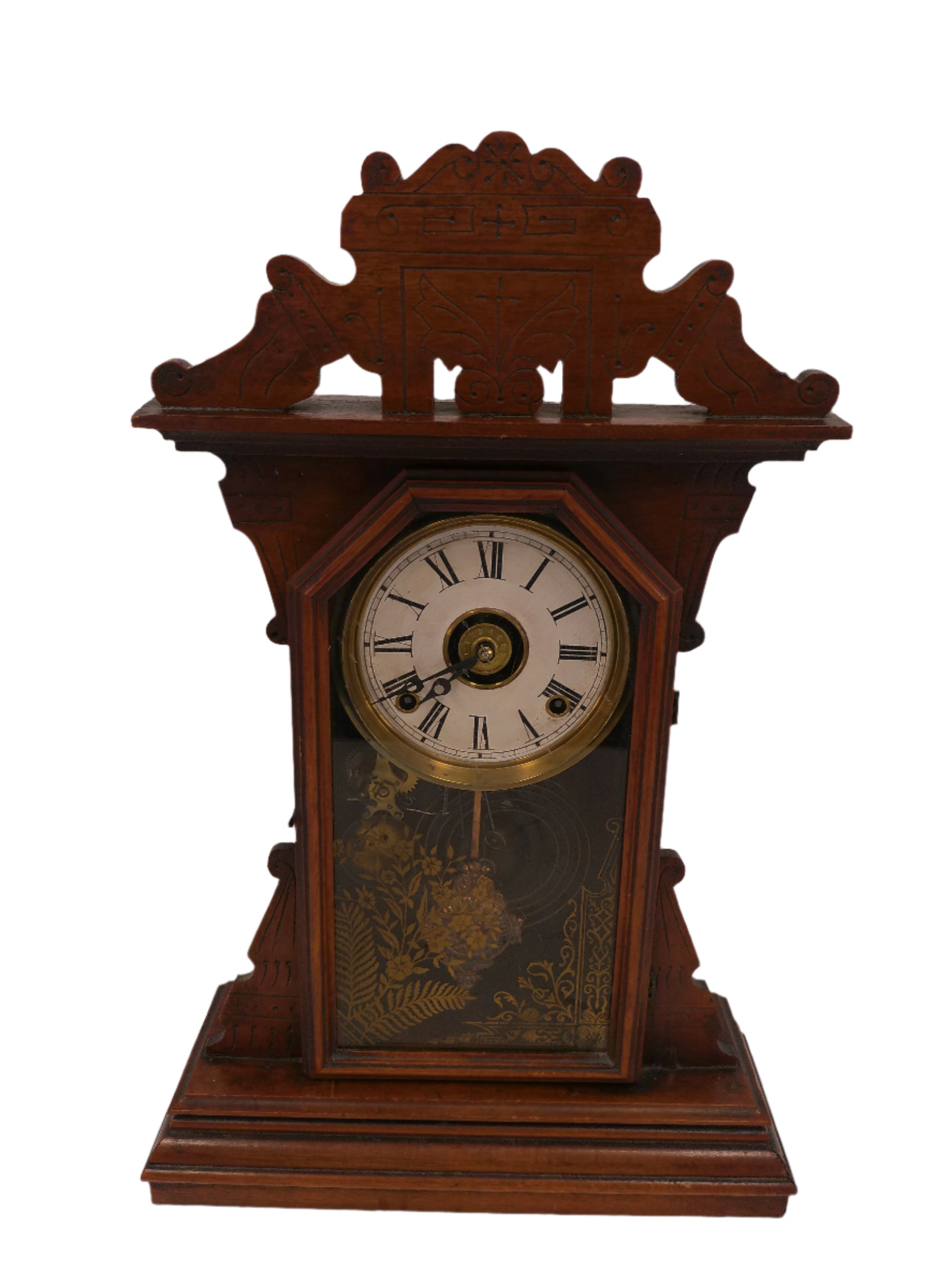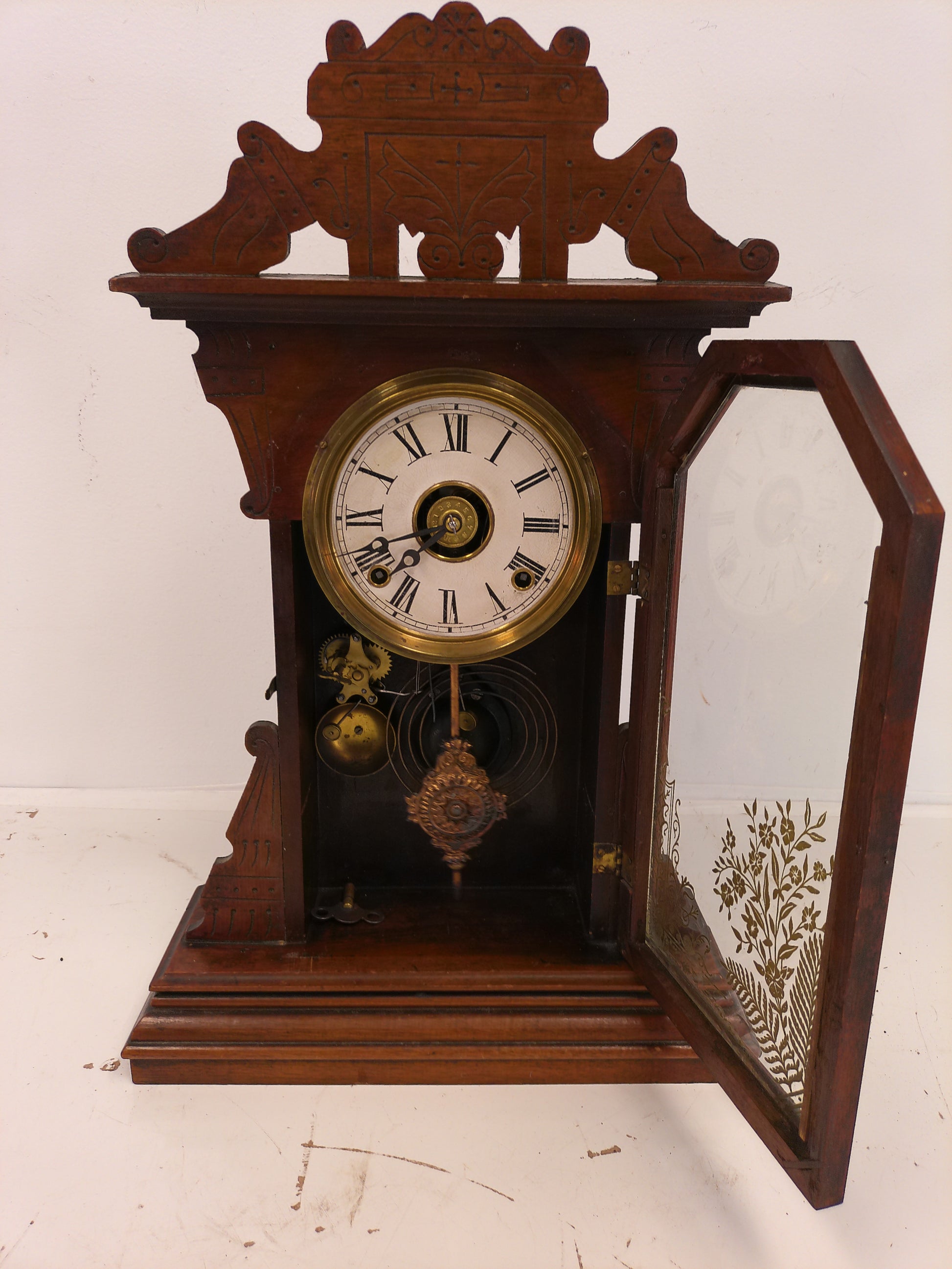 E N Welch 1900's Wood Mantle Clock Comes With Brass Key Works