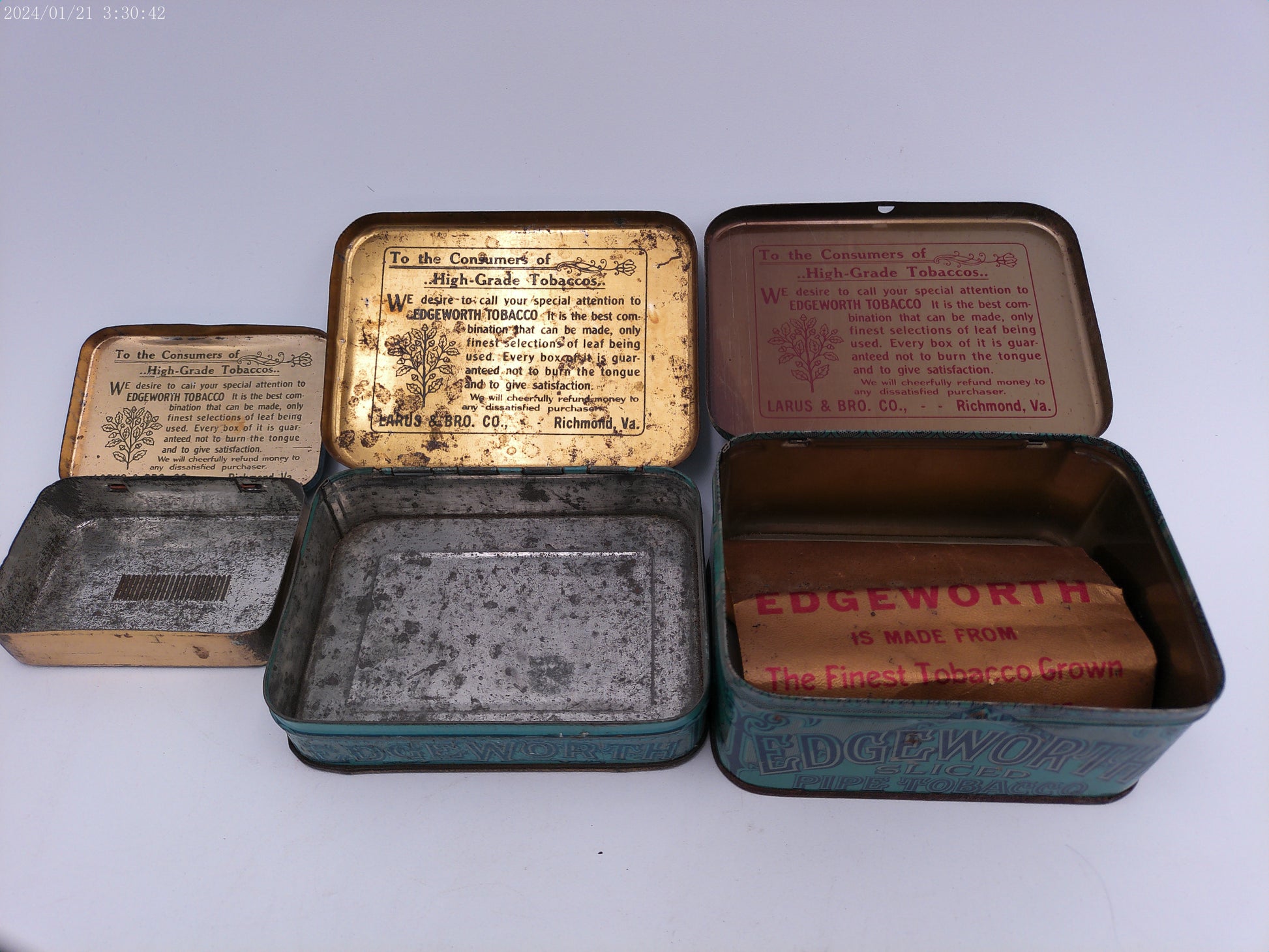 EDGEWORTH Extra High Grade Pipe Tobacco Tins Lot of 3