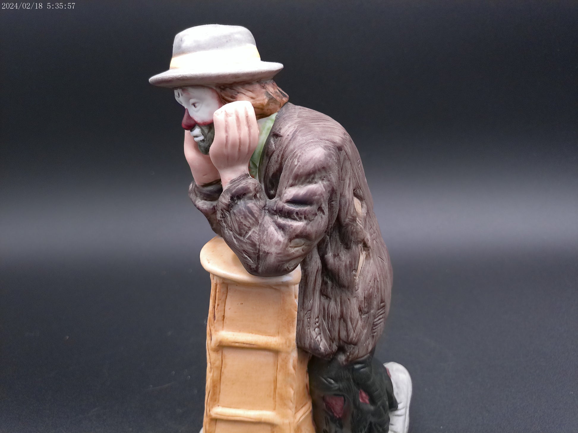 Emmett Kelly Jr. Sad Clown Figurine Leaning on a Stool