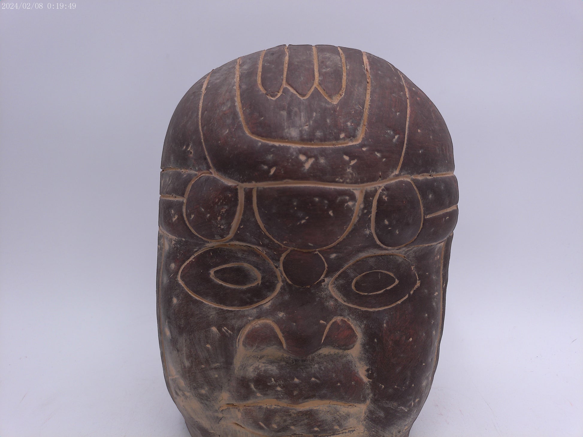 This antique sculpture, featuring a vintage head from Mexico, is a stunning piece of craftsmanship. Made with intricate details and a timeless design, it adds a touch of history and culture to any space. A must-have for any art enthusiast or collector.