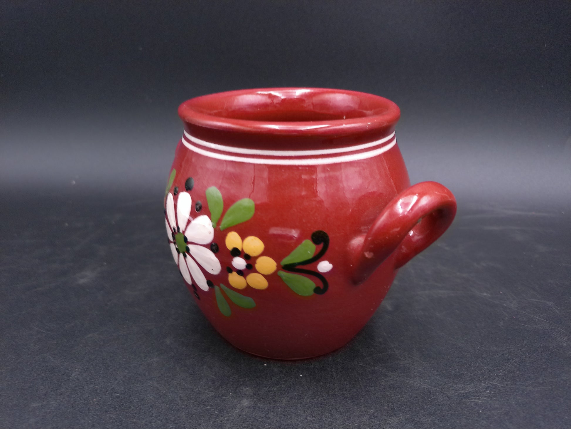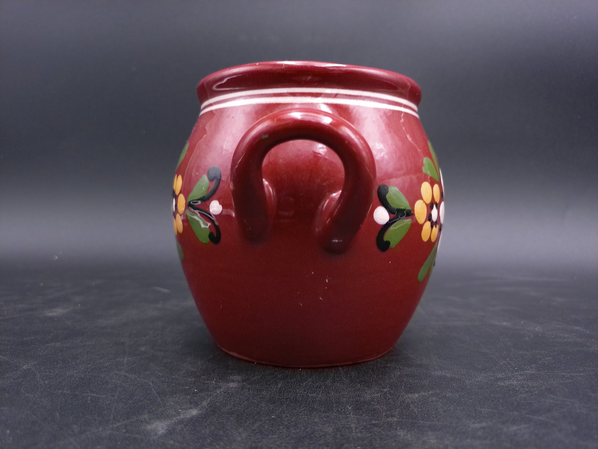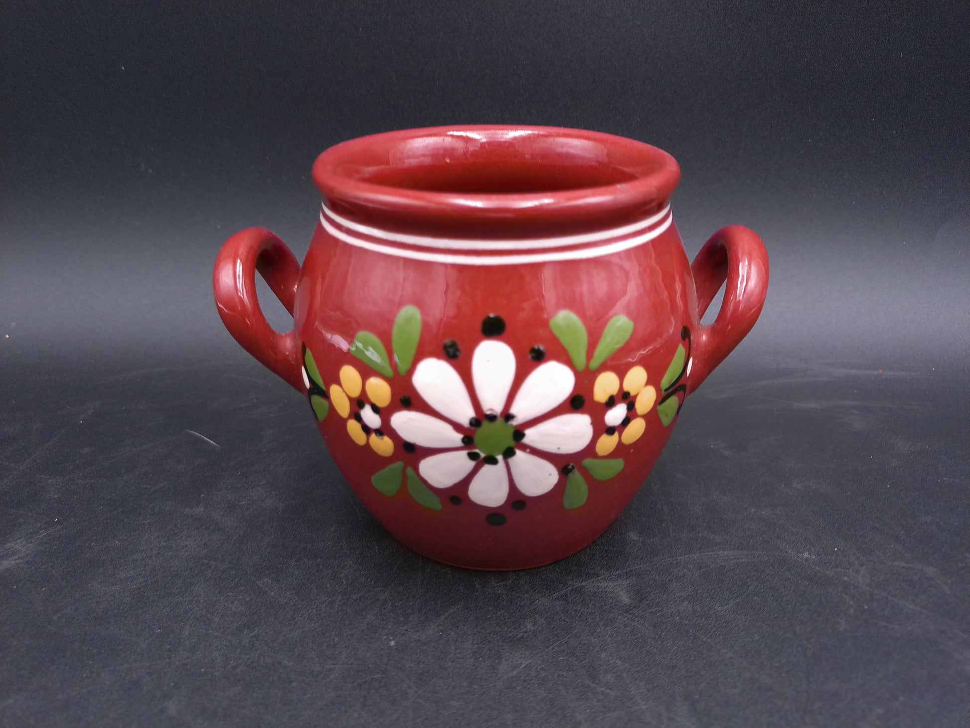 Mexican Style Small Pottery Pot With Handles Clay Floral Design