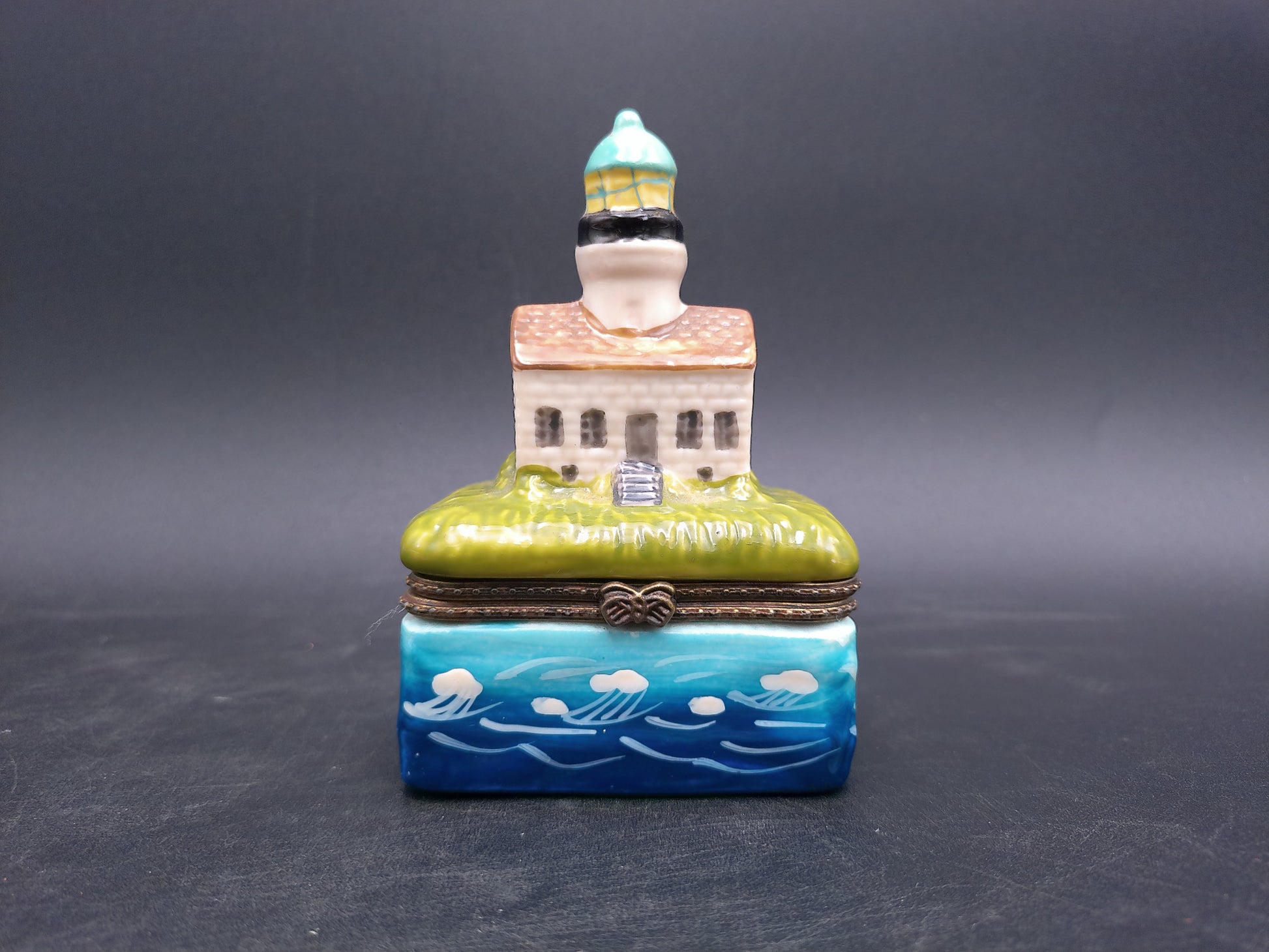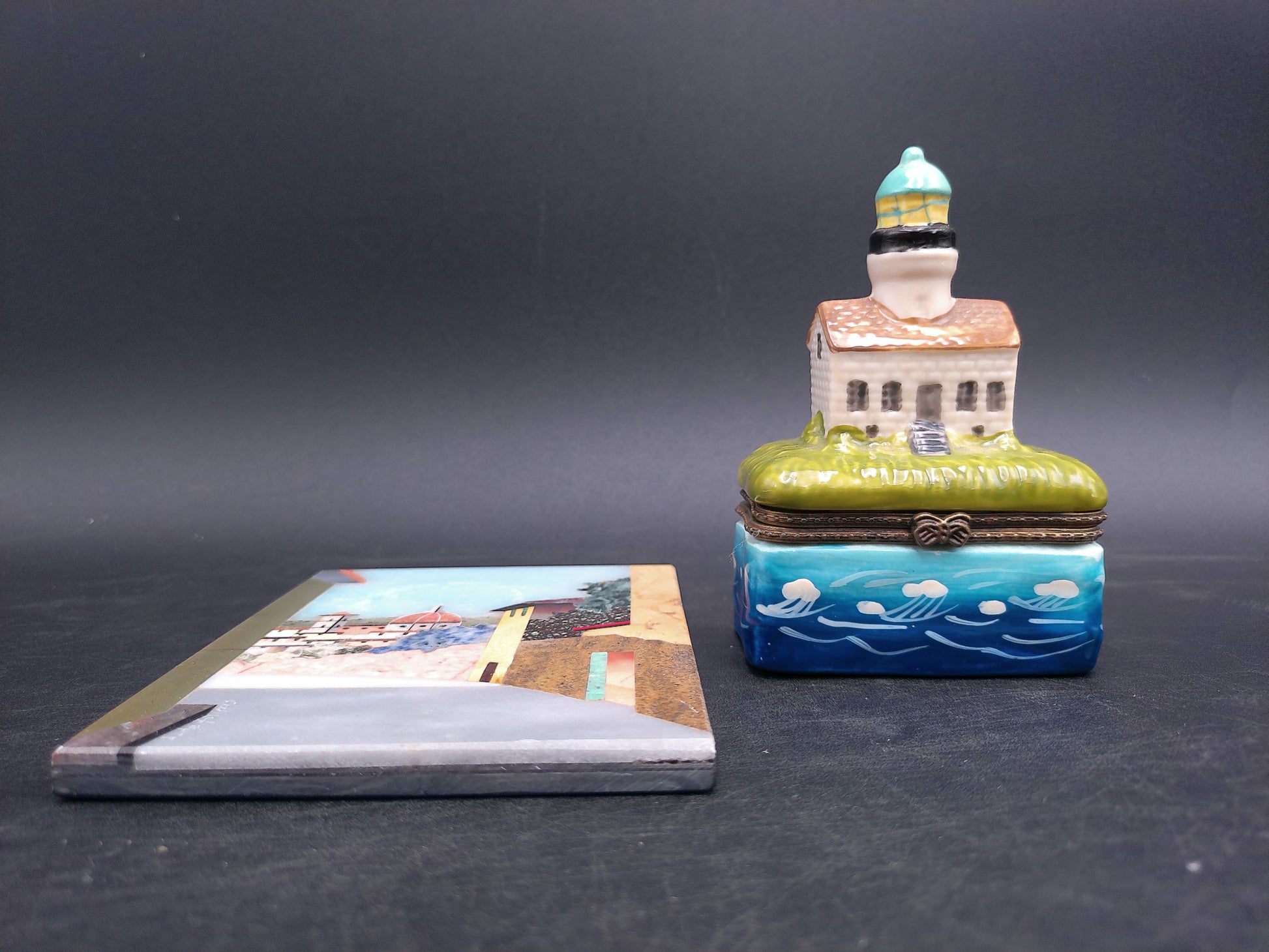 Lighthouse Trinket Box w/ Hinged Lid Hand Painted and painted plate