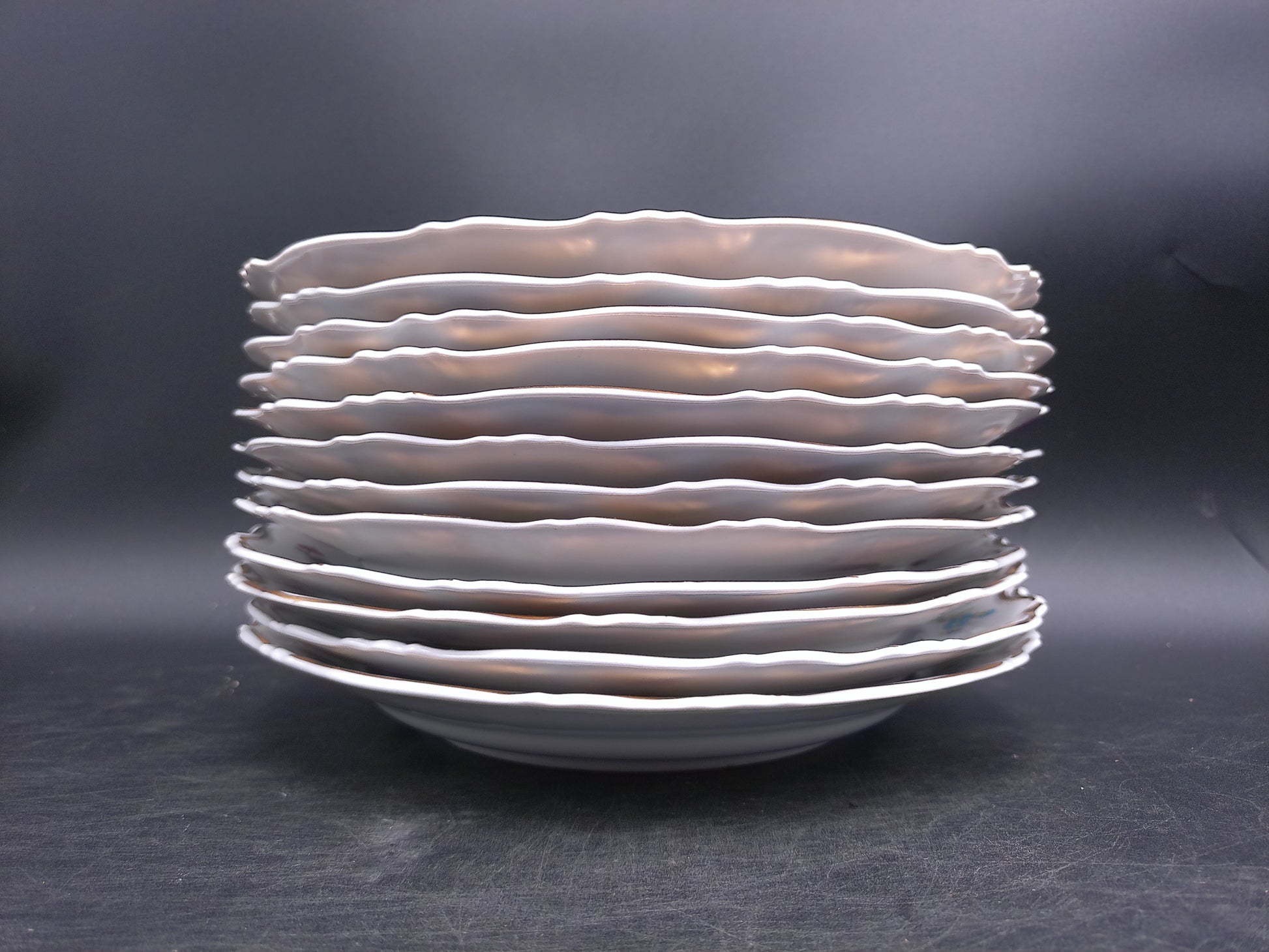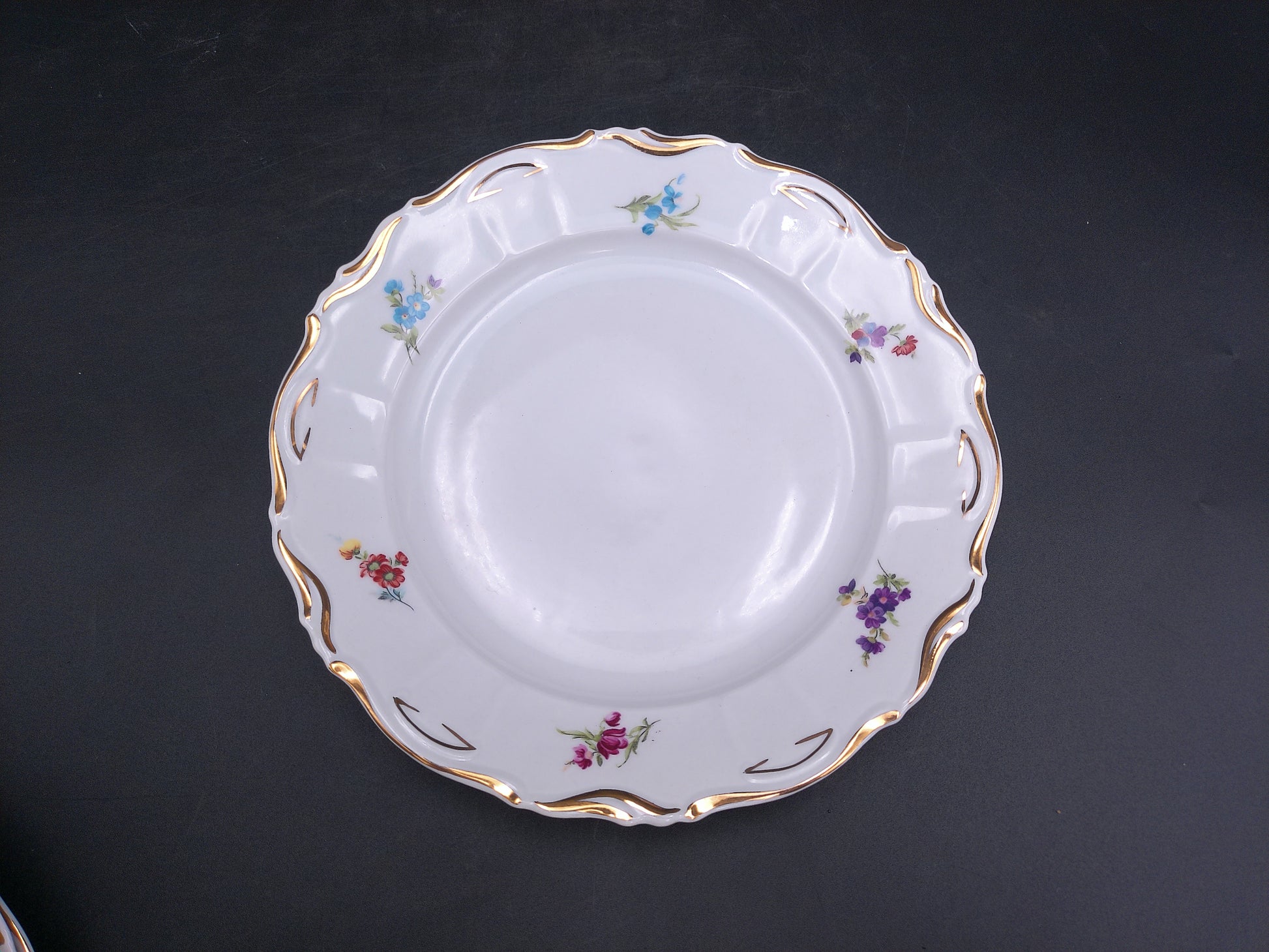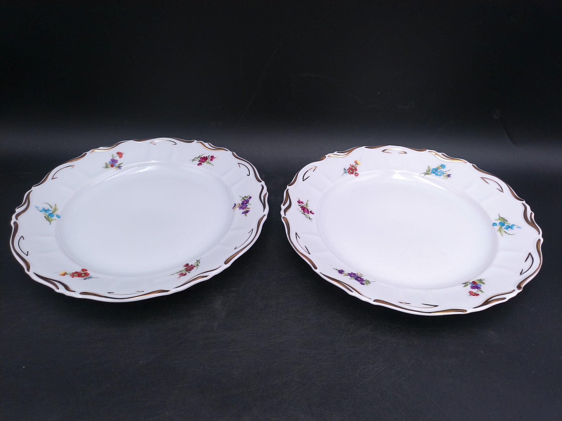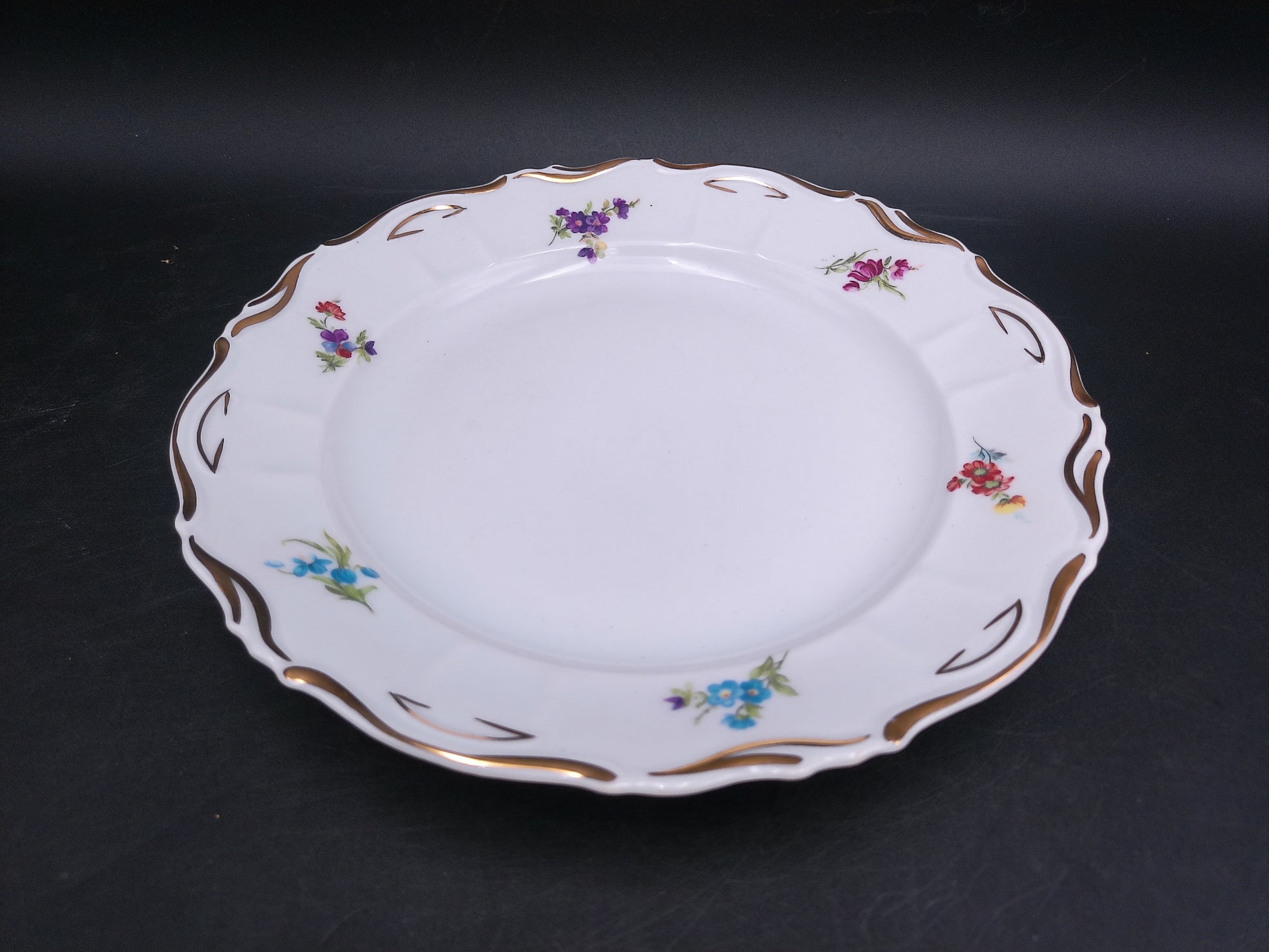 Elevate your dining experience with this exquisite set of 12 Iris Porcelain plates from Cluj made in Romania. Each vintage dish features a delicate rose floral design accented by a refined gold rim, blending timeless elegance with classic charm. Perfect for special occasions or adding a touch of sophistication to everyday meals, these plates bring beauty and grace to your table setting. Crafted with care, they make a stunning addition to any collection or a thoughtful gift for those who appreciate fine porcelain artistry.